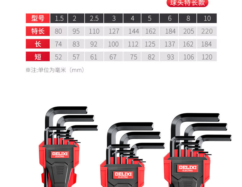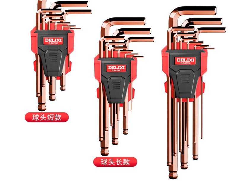 Delixi Electric Hexagonal Wrench Set Hardware Repair Tools Hexagonal Screwdriver S2 Steel 9-piece Set Extra Long Flat Head/Ball Head