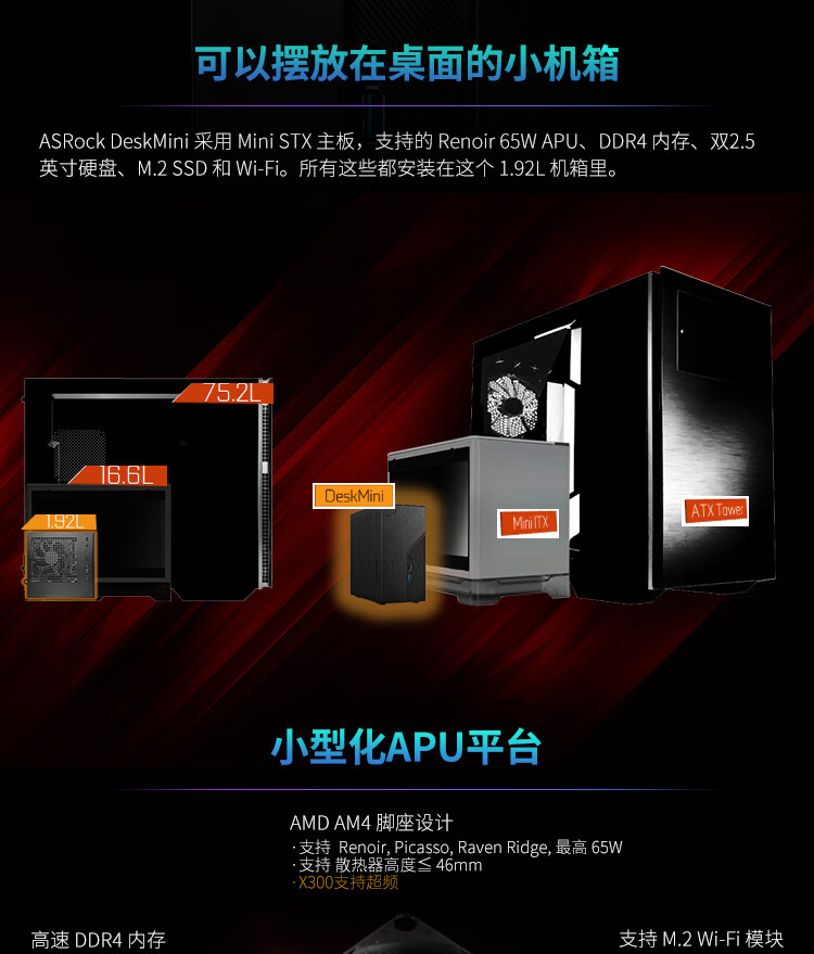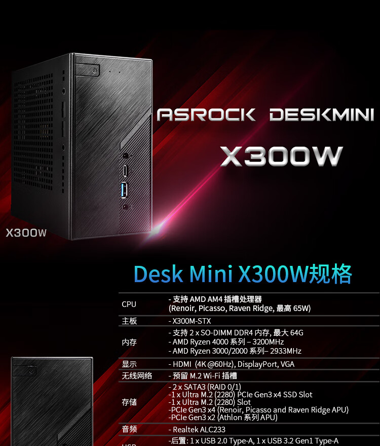 95% new ASRock DeskMini X300W/BOX WIFI version supports CPU 5600G/5700G/(AMD X300/AM4 Socket)