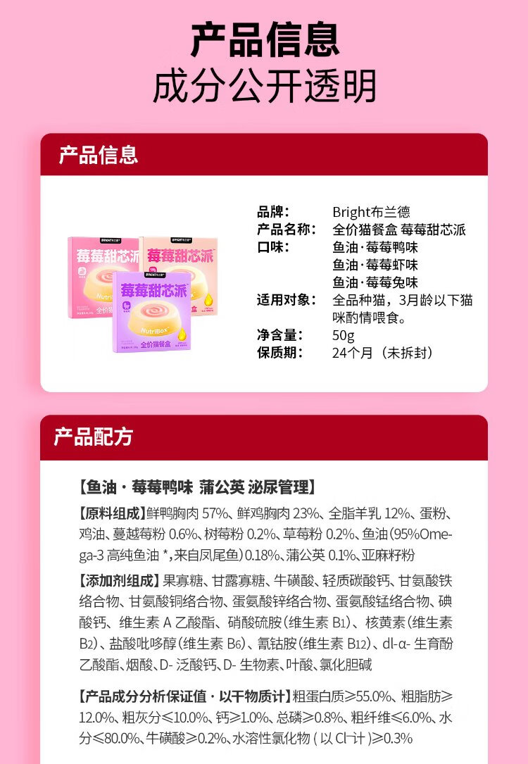 Brand's new product Berry Sweet Core Pie Cat Staple Food Lunch Box Goat Milk Fish Oil Full Price Canned Wet Food Berry Duck Flavor 50g