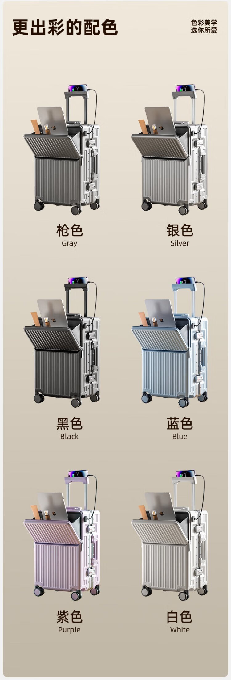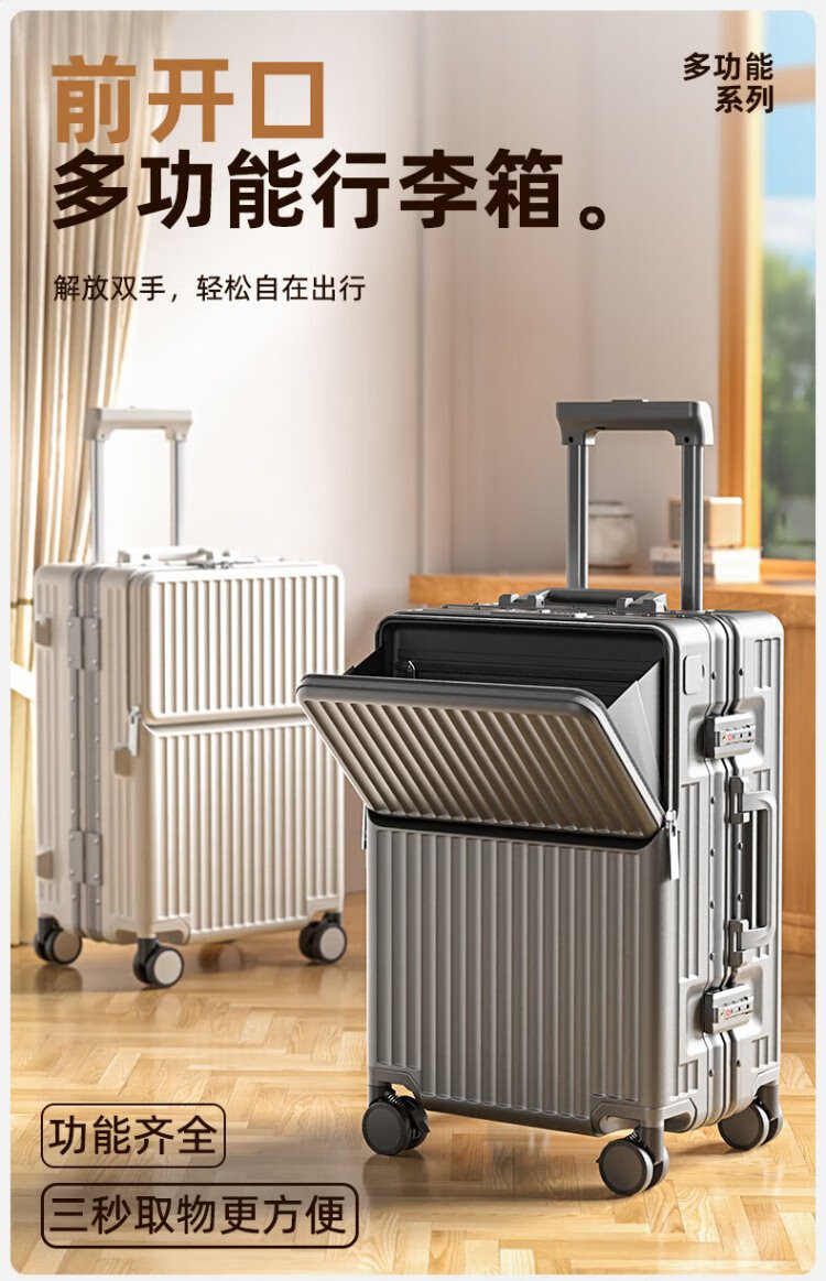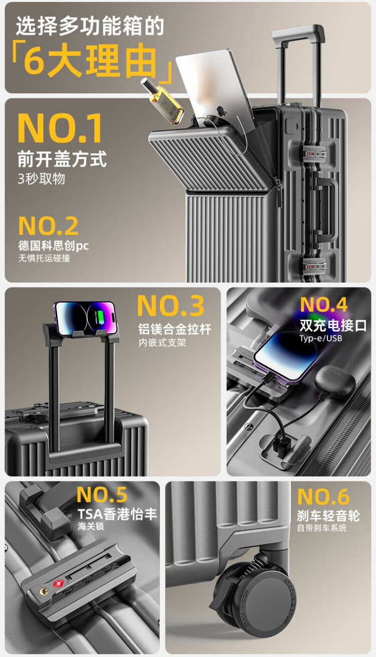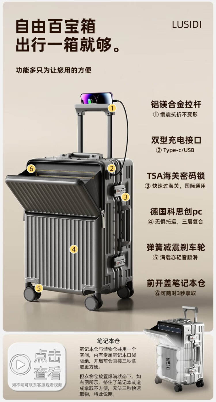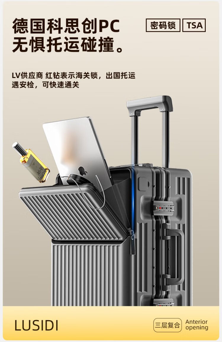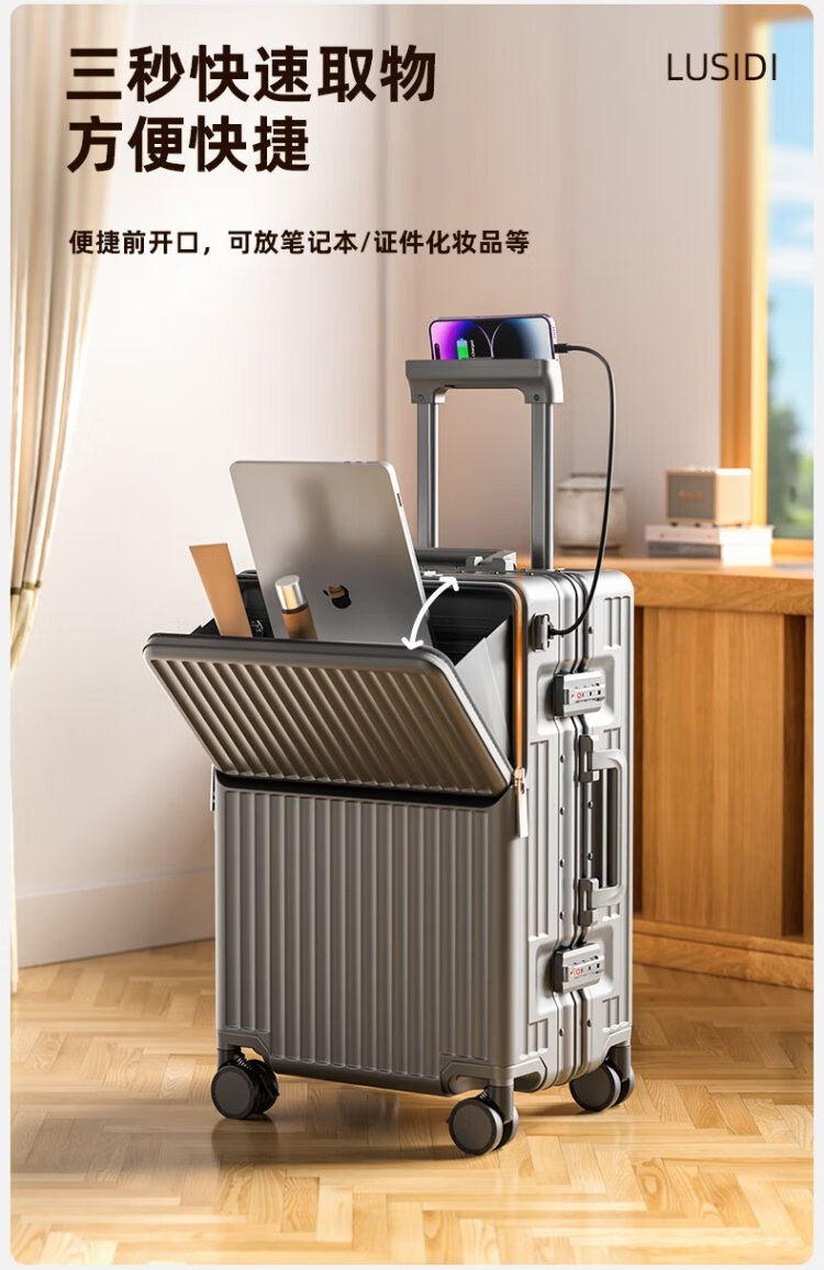 LUSIDI front-opening suitcase trolley case multifunctional suitcase for men and women password box black 20 inches