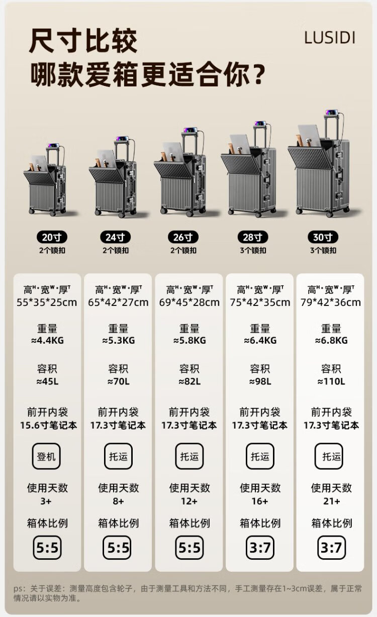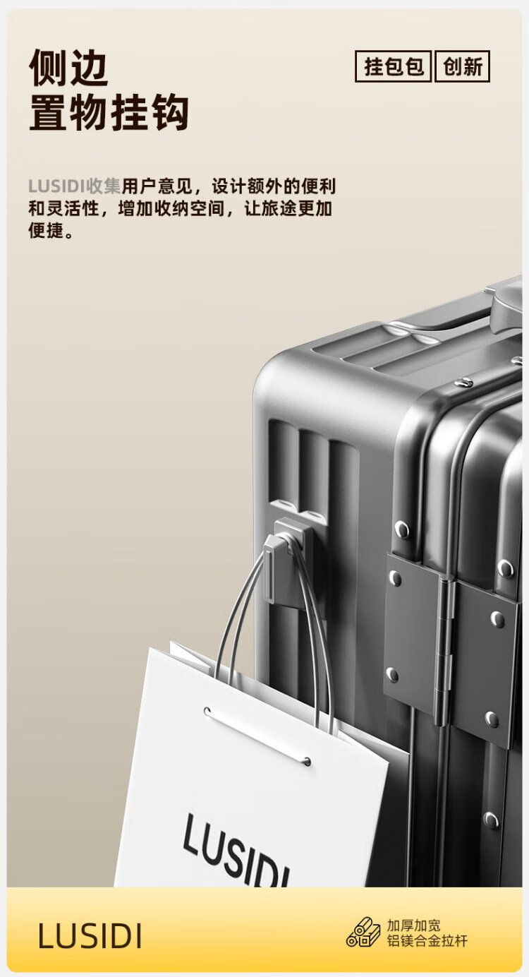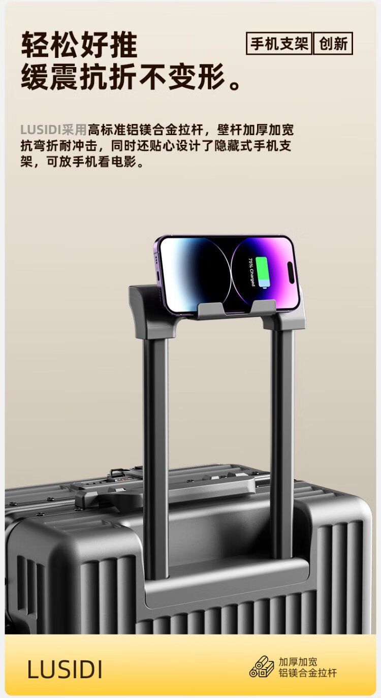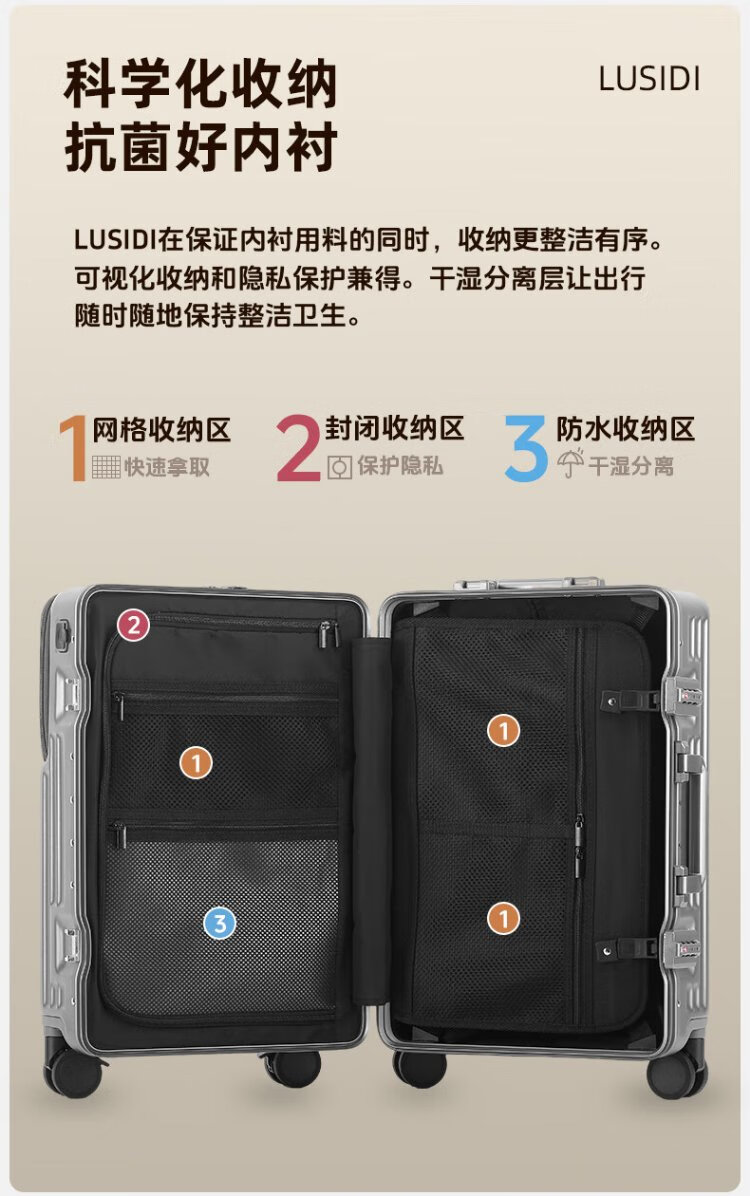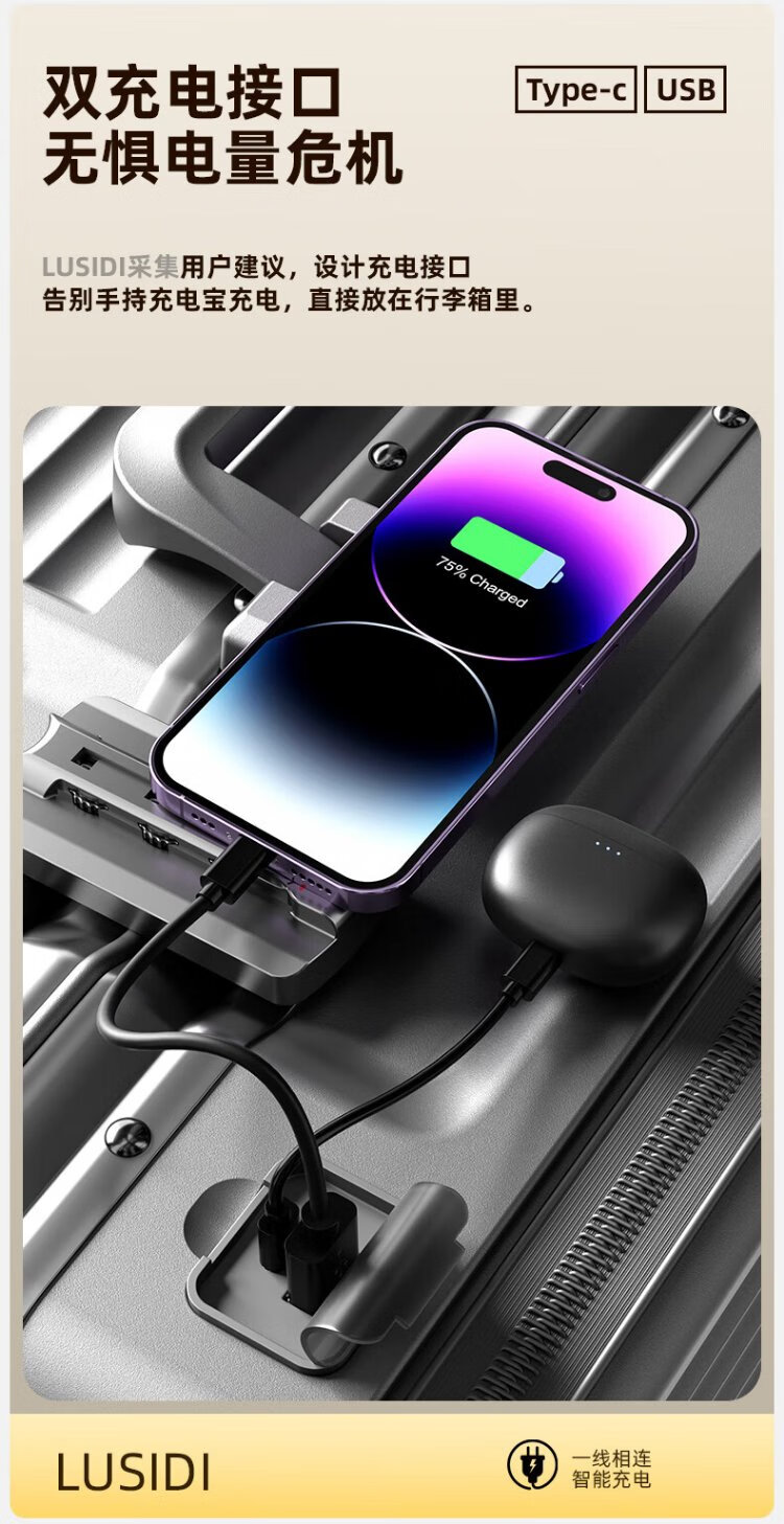 LUSIDI front-opening suitcase trolley case multifunctional suitcase for men and women password box black 20 inches