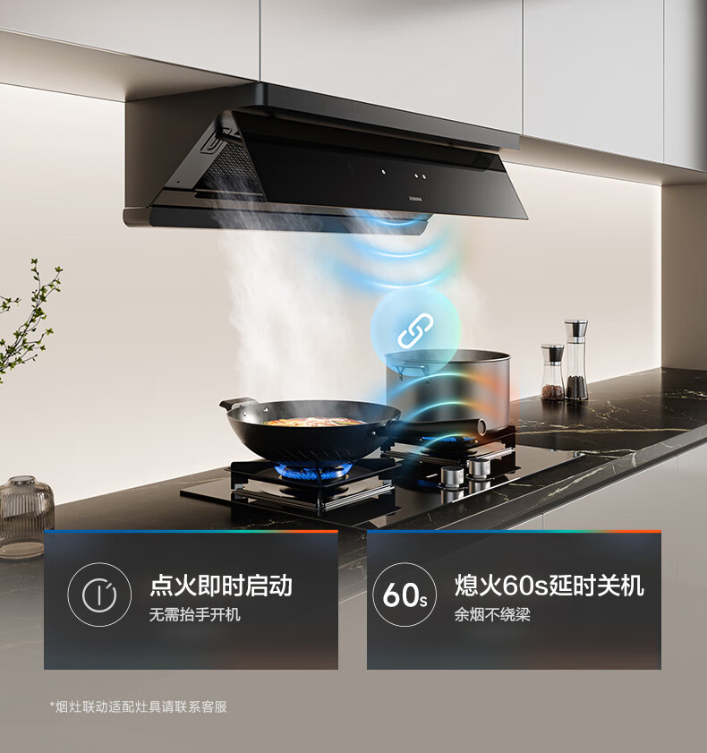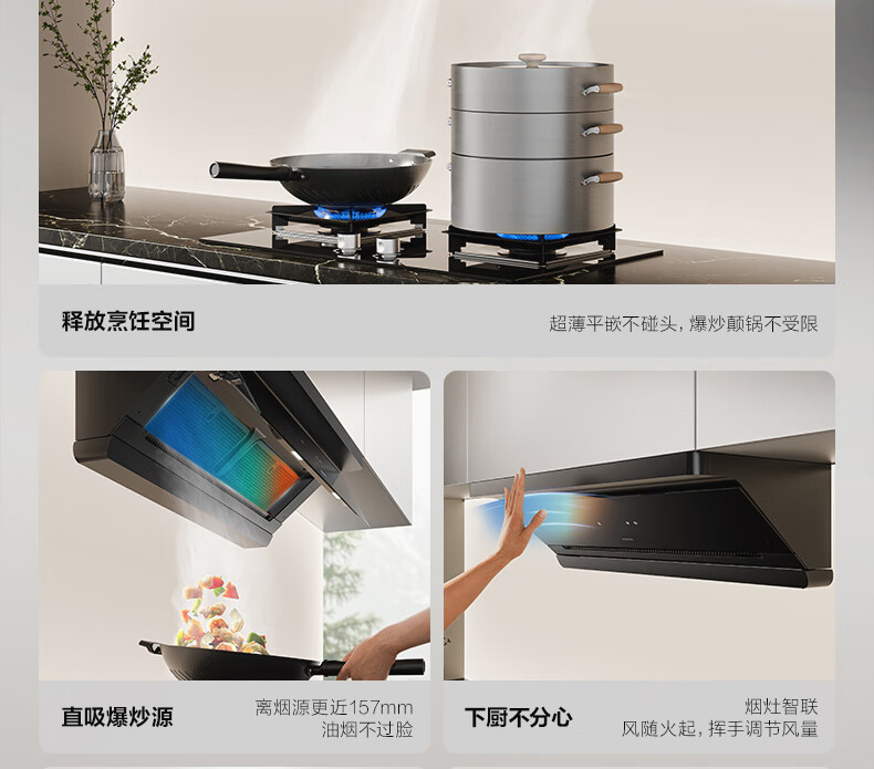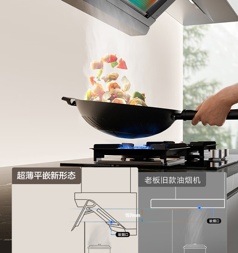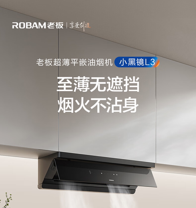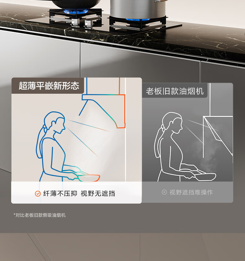 Boss really ultra-thin flat-embedded suction range hood L3 top side integrated household 27 large suction smoke stove linkage first-level energy efficiency + D2 natural gas stove set