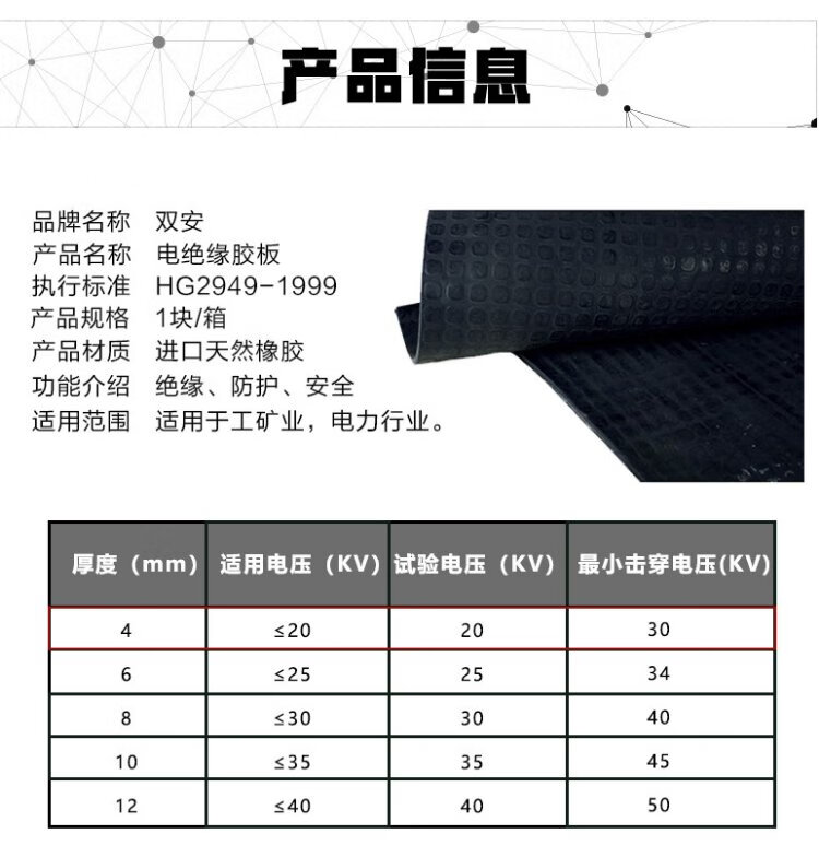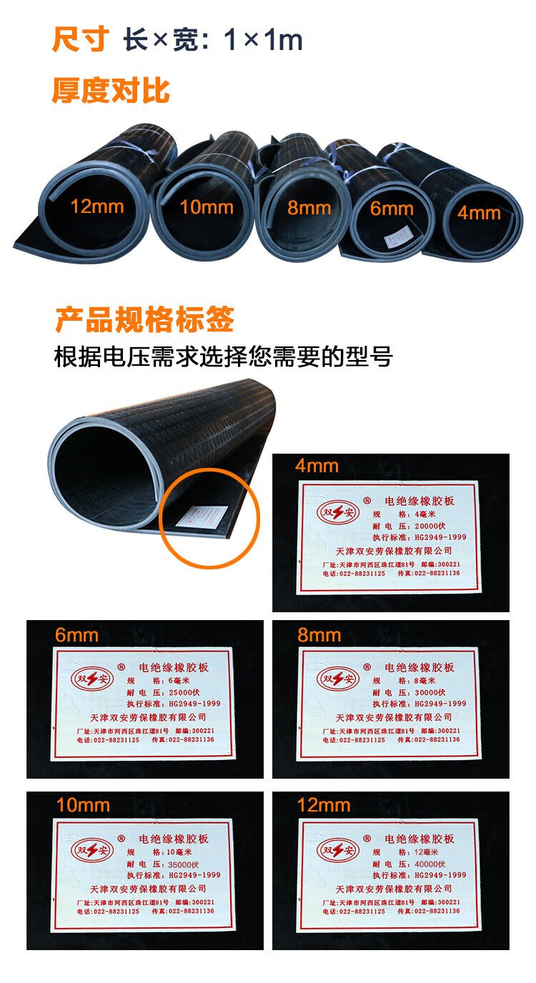 Double-safe insulation mat power distribution room 4mm rubber plate DX041 anti-slip floor mat 1m*1m high voltage resistant 20kv national standard power distribution room electrical insulation blanket power plant special thickened shock-absorbing industrial rubber