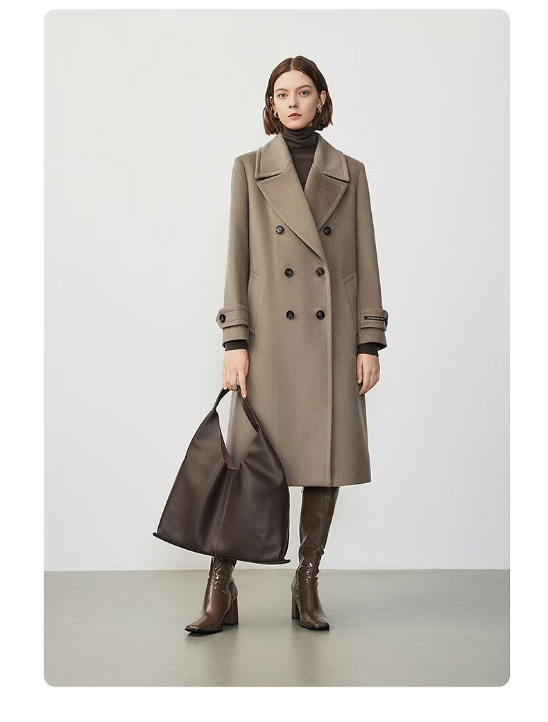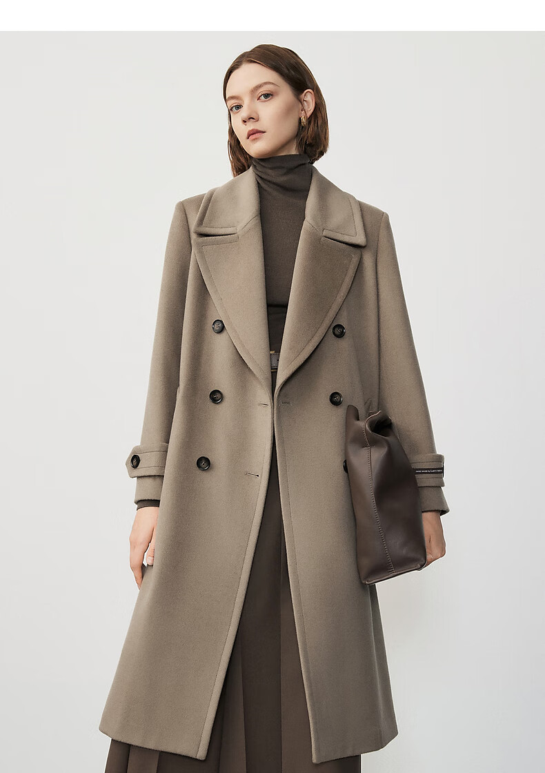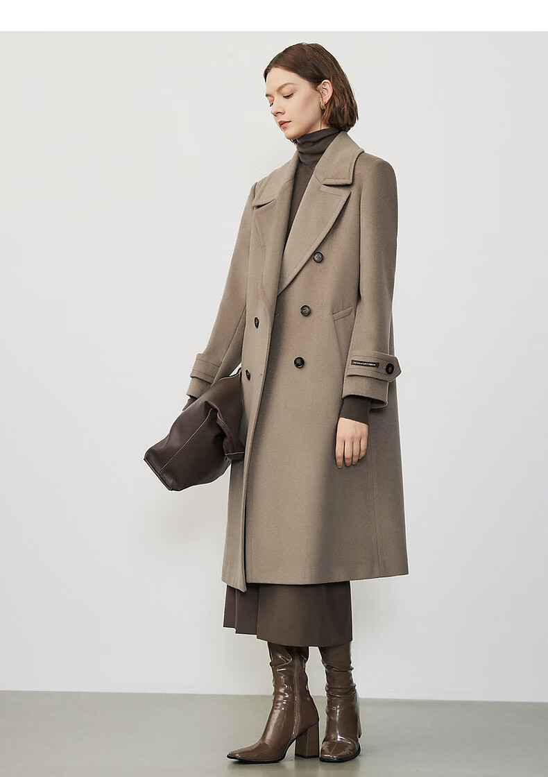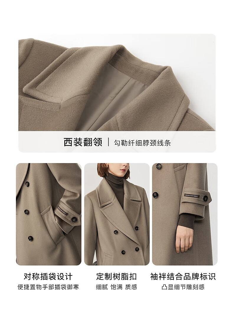 Langzi wool design and high-end commuting mid-length slim woolen jacket top, dark beige XL