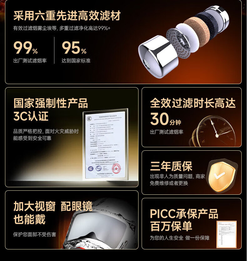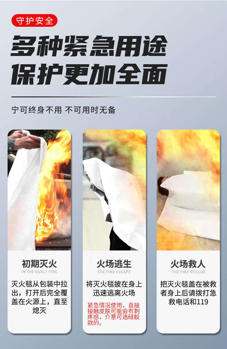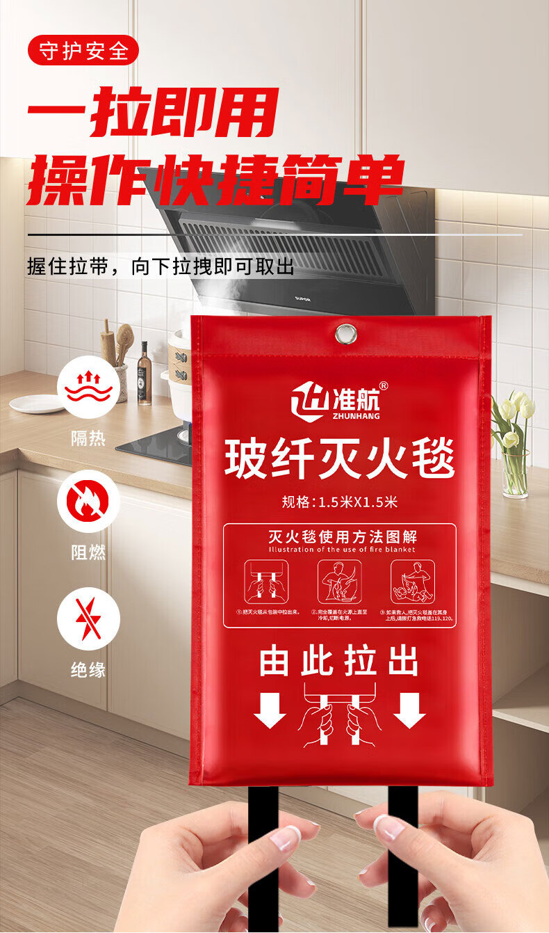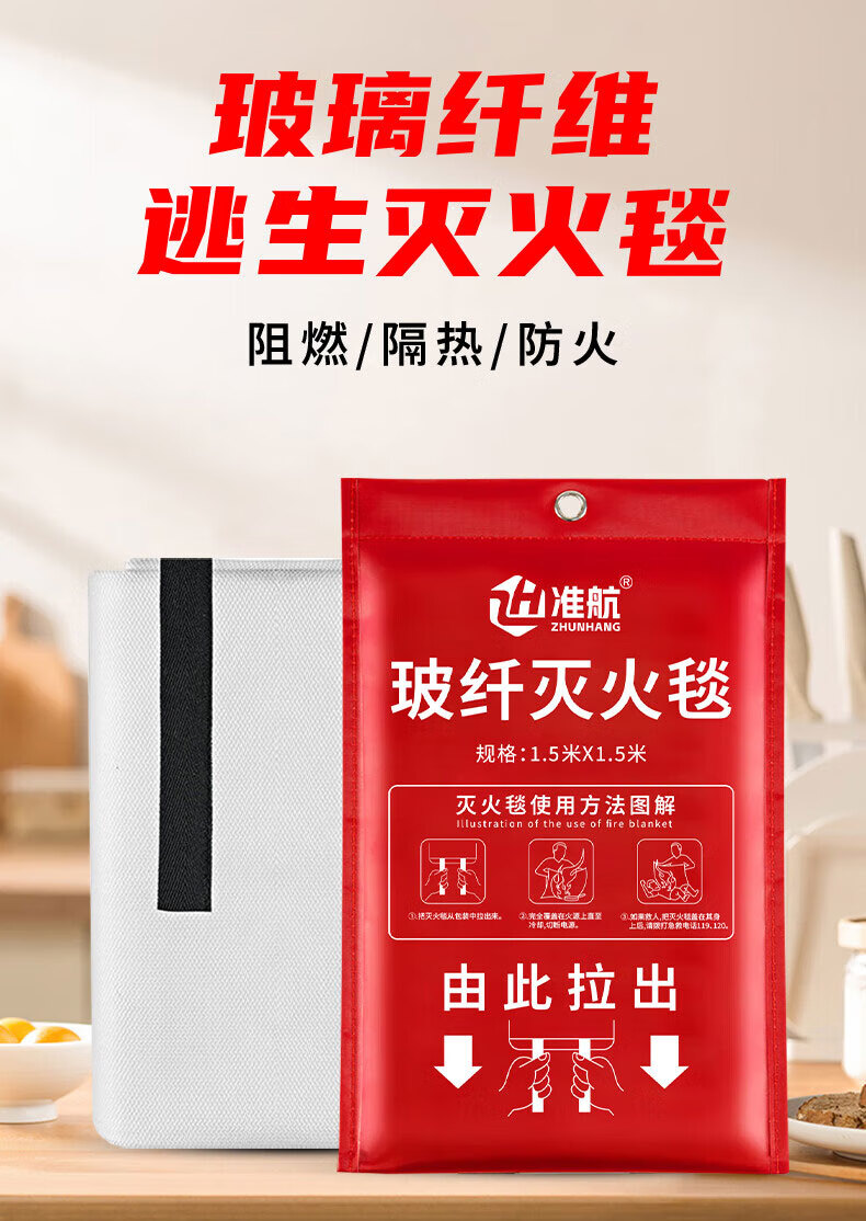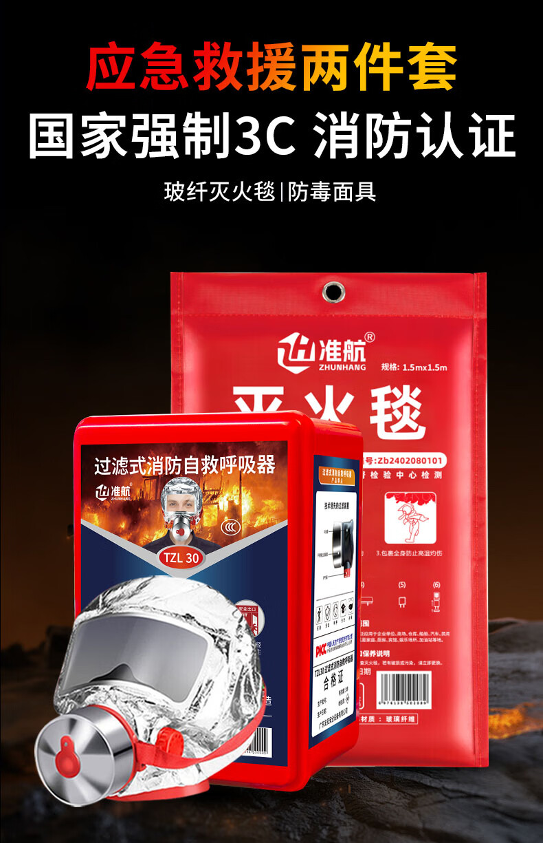 Zhunhang Fire Blanket 1.5m Gas Mask Set First Aid Commercial Home National Fire Protection 3C Certified Escape Blanket
