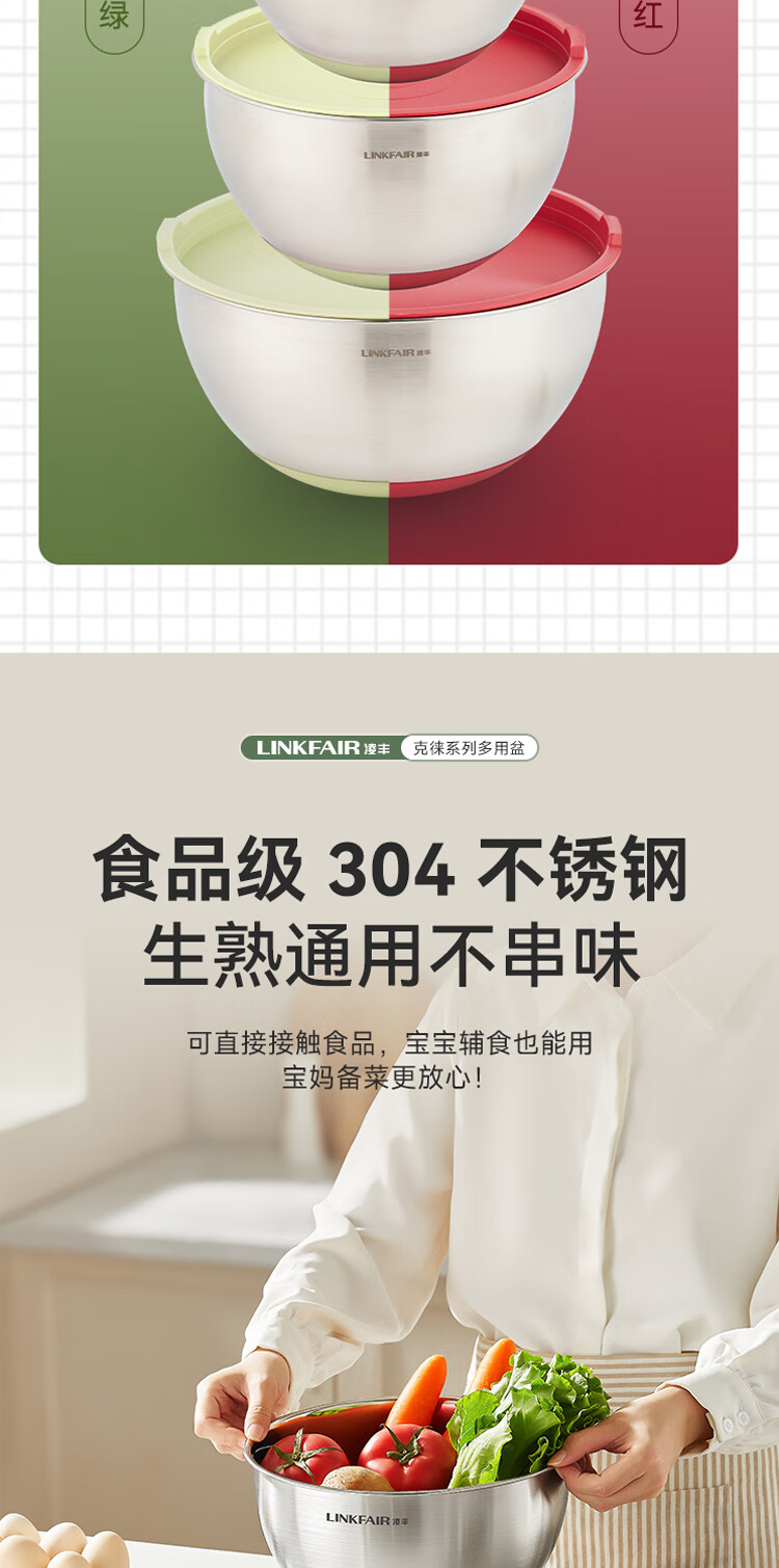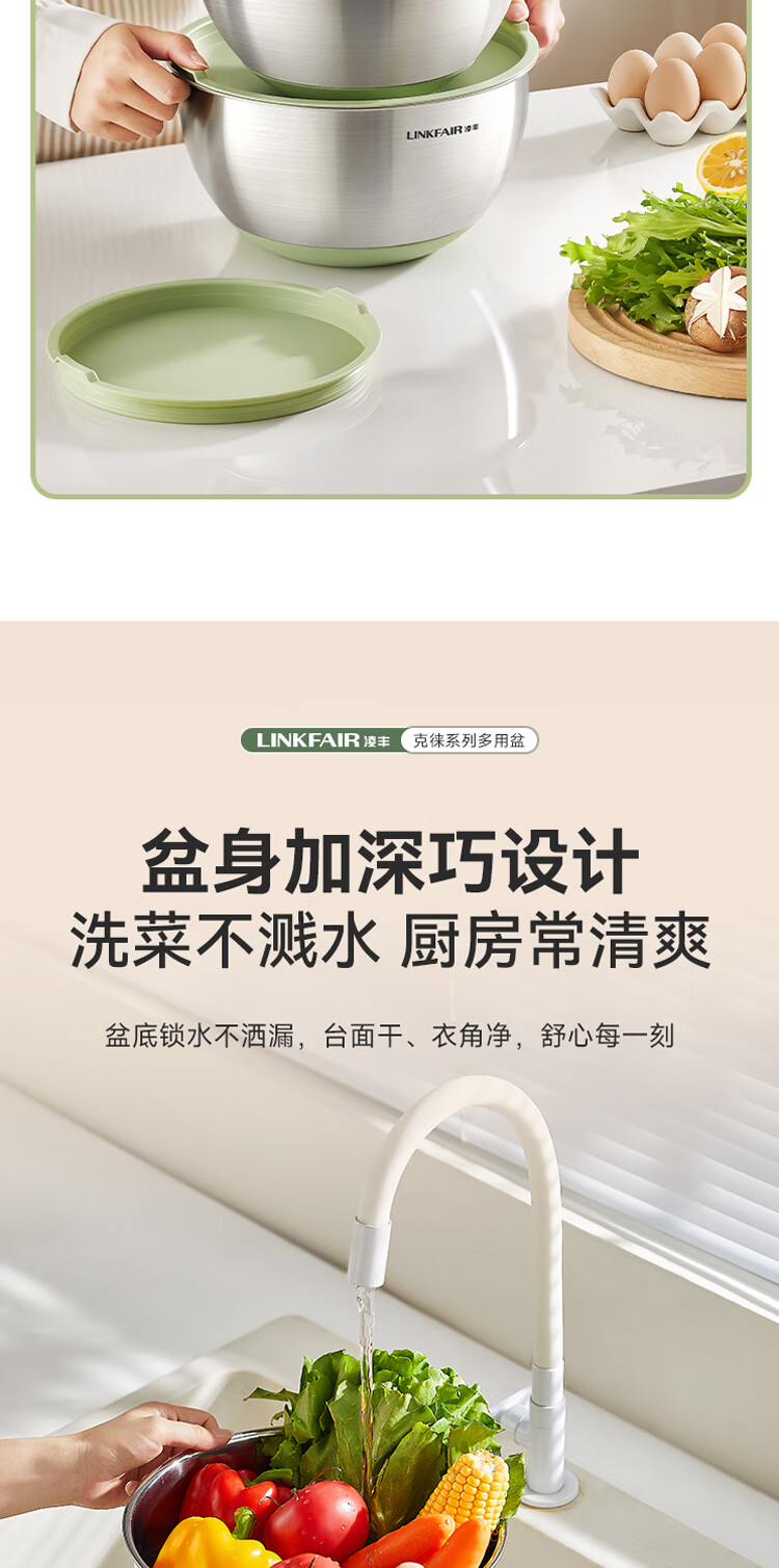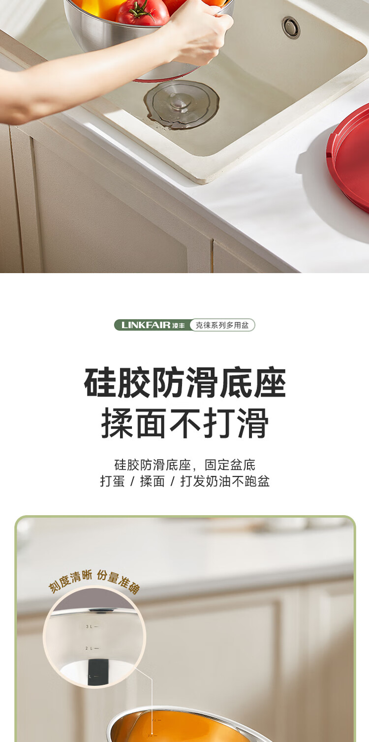 Lingfeng (LINKFAIR) Kelai multi-purpose basin vegetable washing bucket stainless steel drain basket leaky soup basin Kelai series multi-purpose basin Angora red
