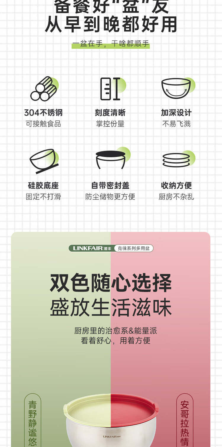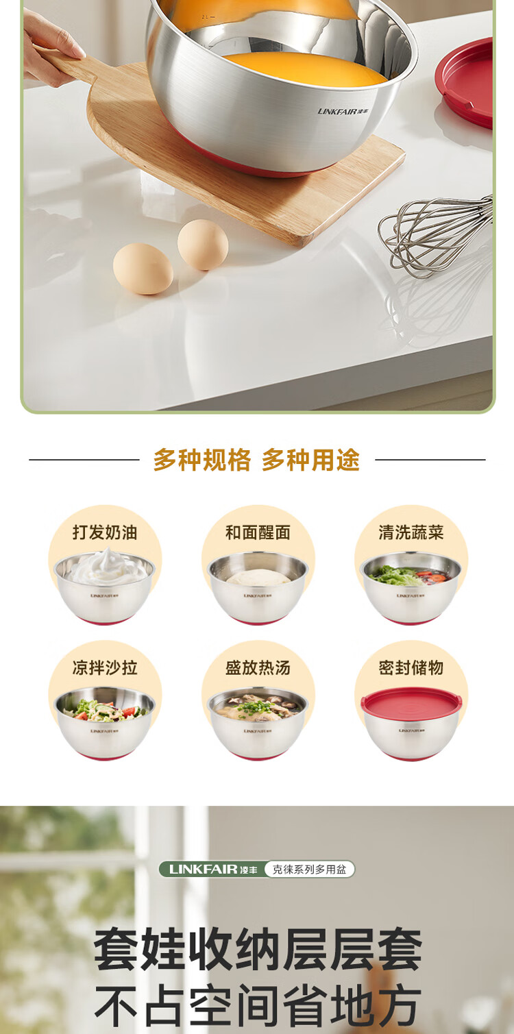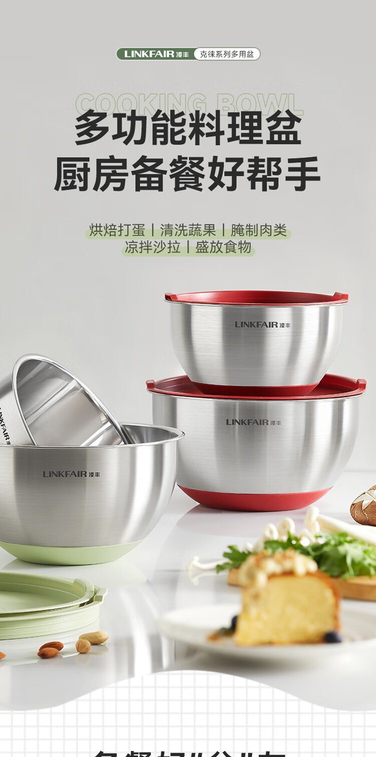 Lingfeng (LINKFAIR) Kelai multi-purpose basin vegetable washing bucket stainless steel drain basket leaky soup basin Kelai series multi-purpose basin Angora red