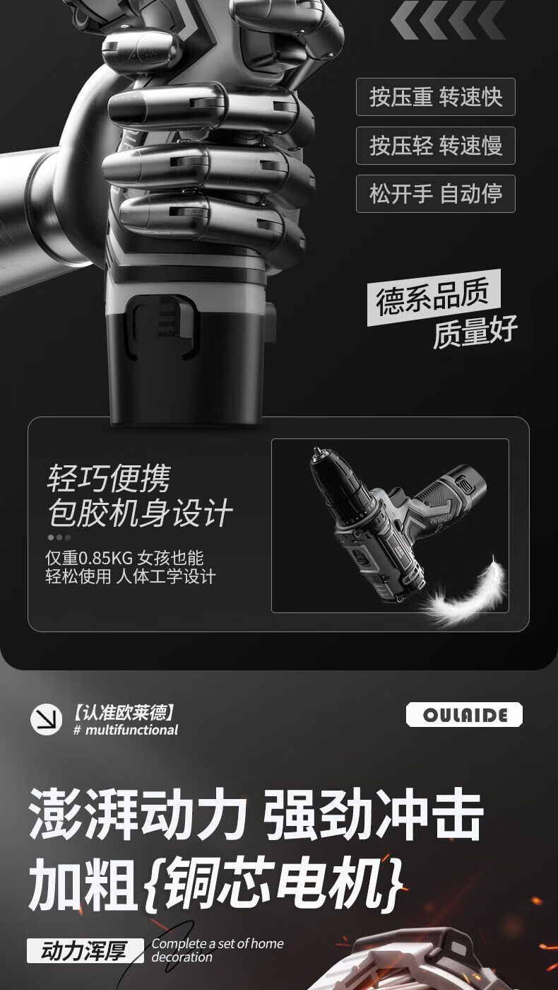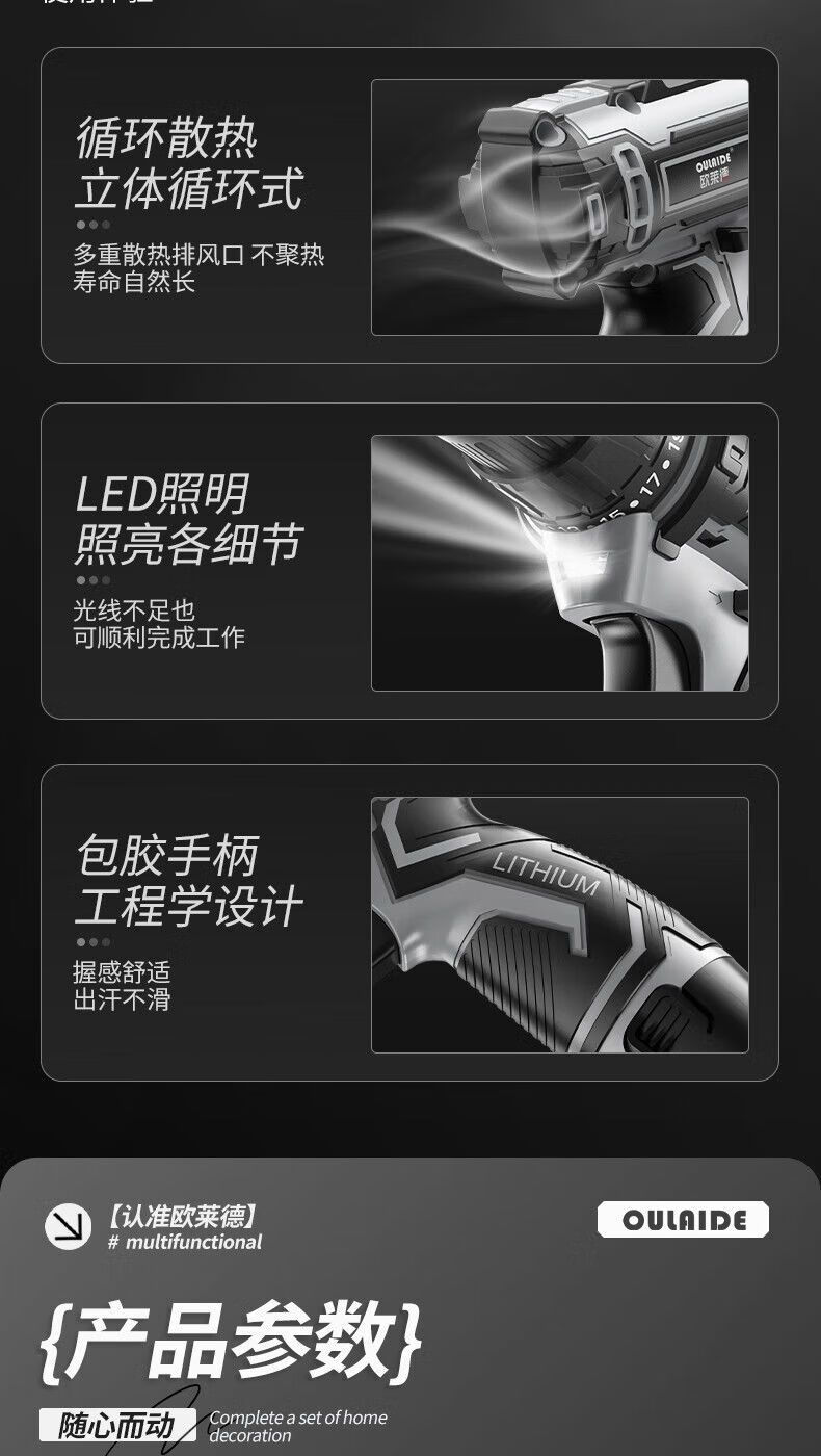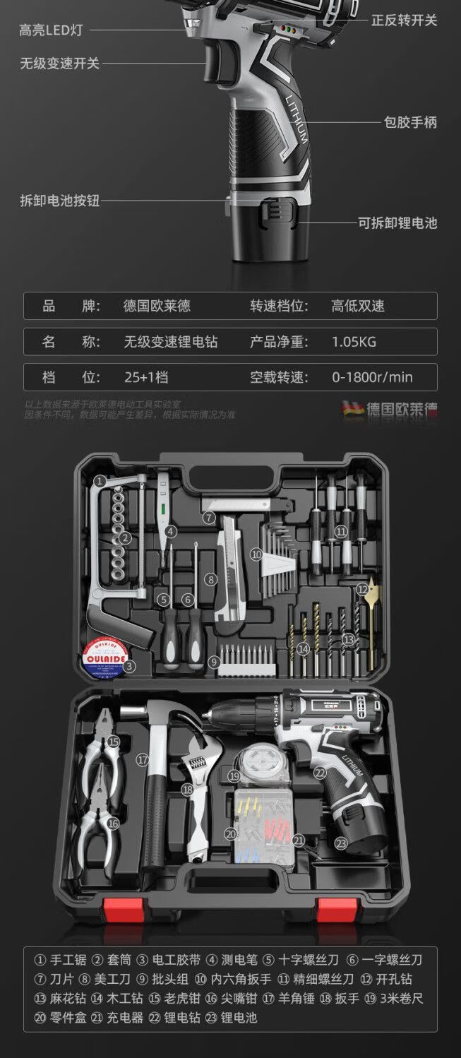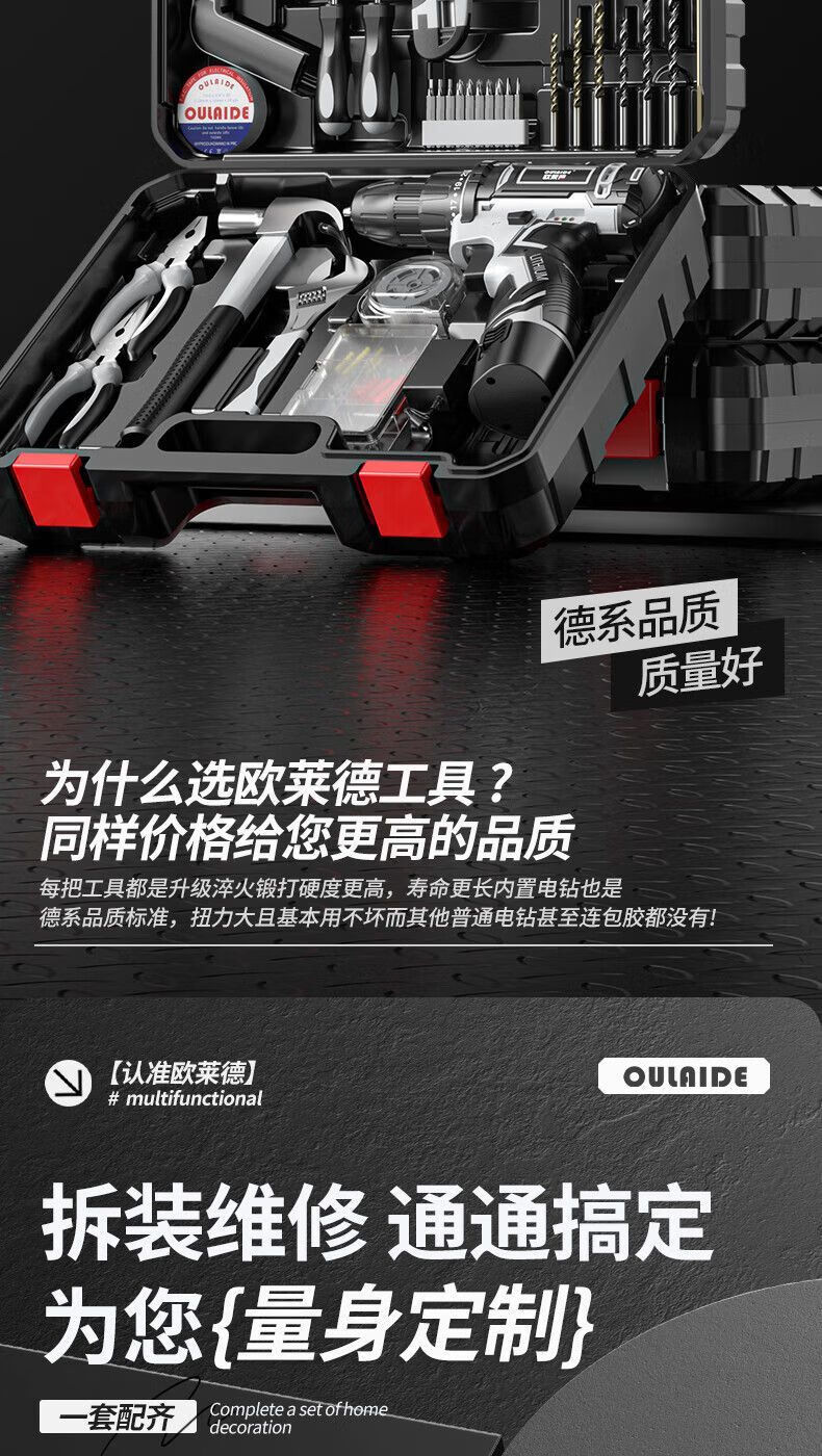 OLED rechargeable electric drill tool set hardware electrician woodworking special maintenance multi-functional household combination set high-quality lithium battery upgrade household luxury set dual battery