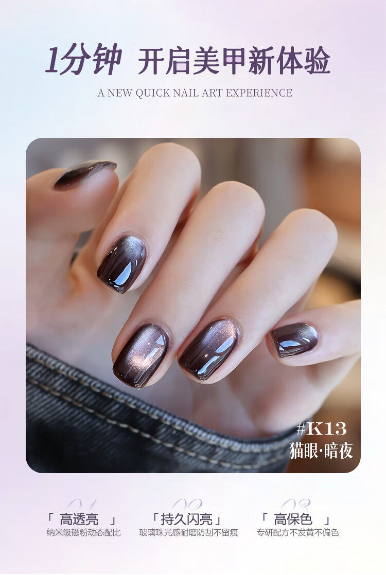 SweetCoolDou five-in-one cat eye nail polish glue one step glue lazy glue 12ml requires baking lamp cat eye manicure K13 dark night
