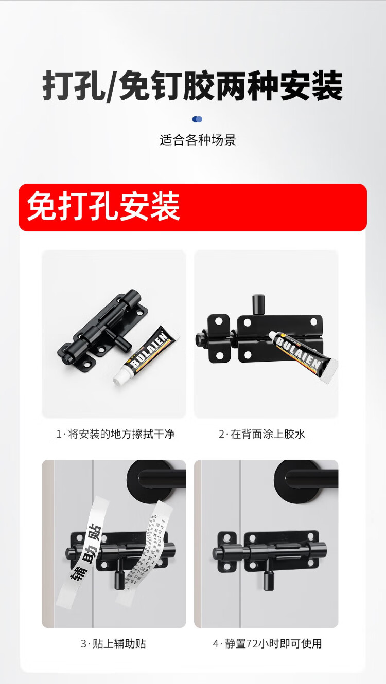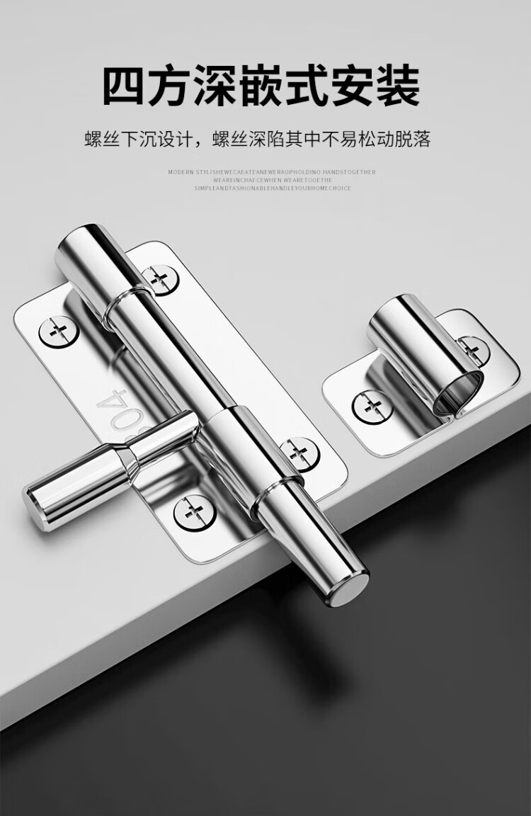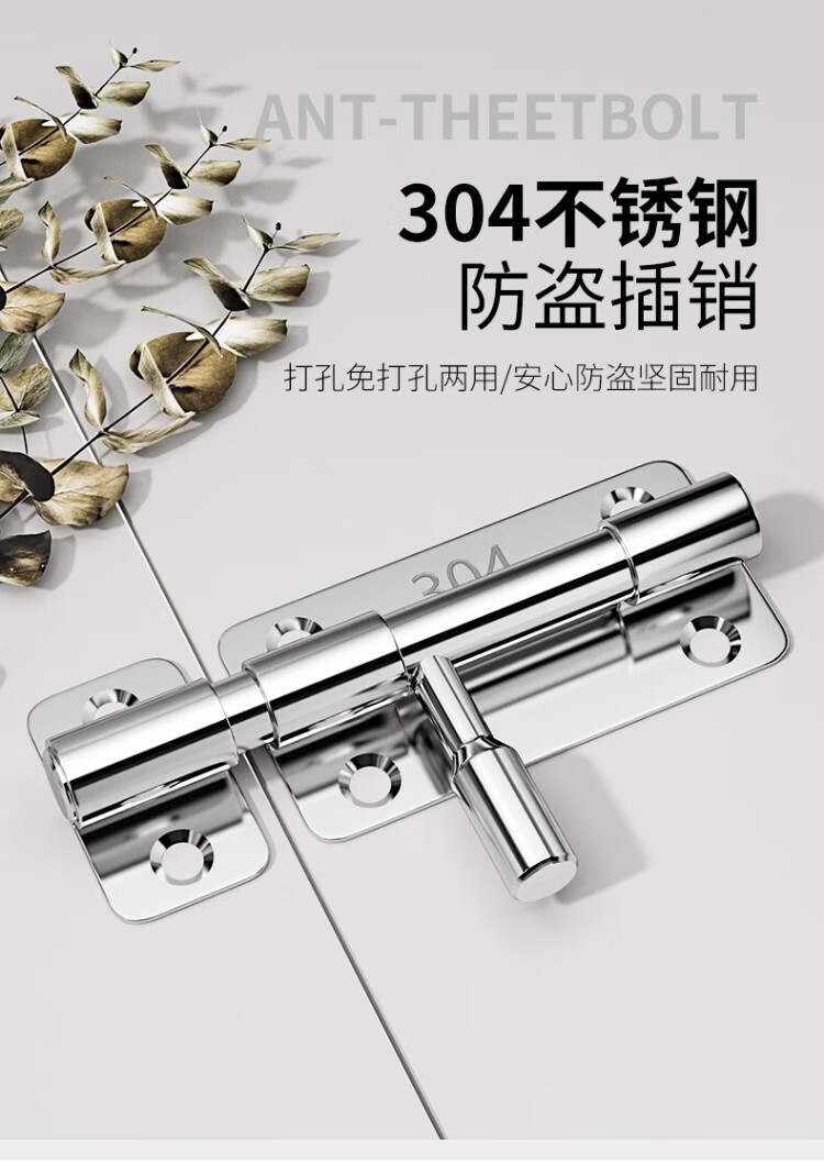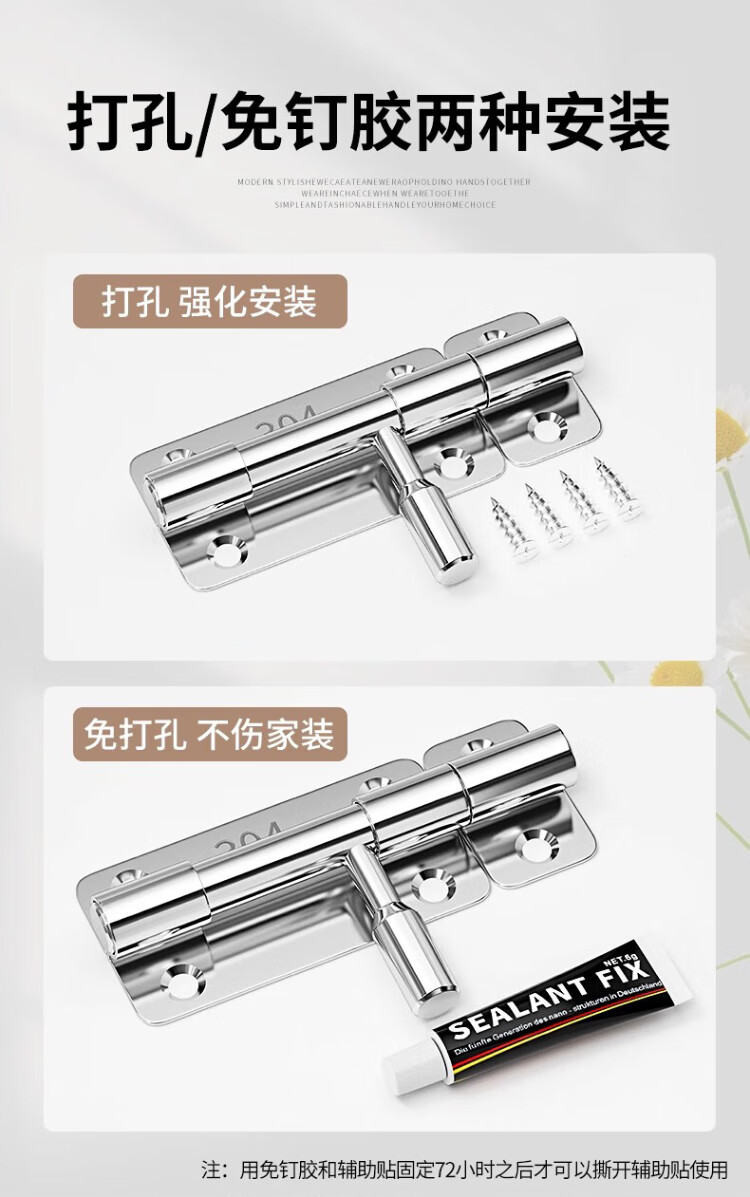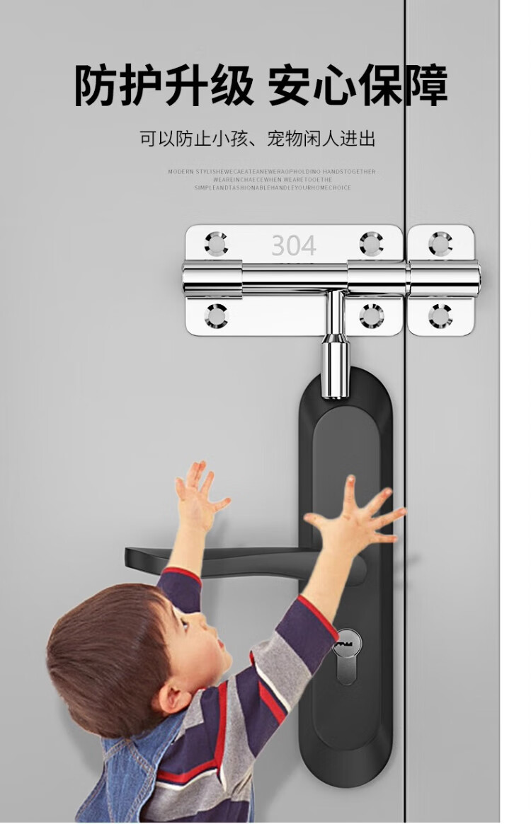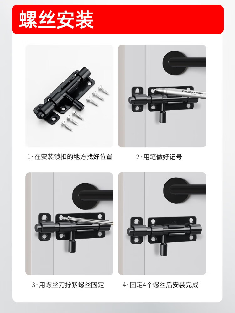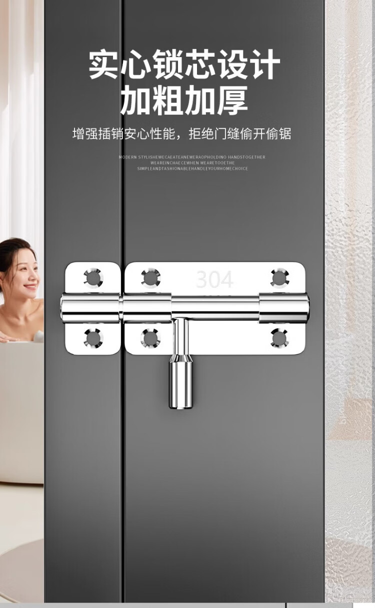 Chugong 304 stainless steel latch door lock wooden door and window bathroom anti-theft door latch door buckle surface-mounted without drilling, with mounting screws (small hardware)