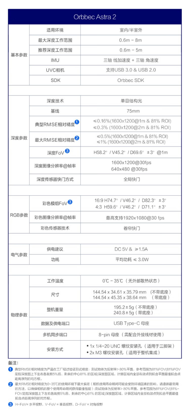 Youyeetoo Obi Zhongguang Astra 2 depth camera 3D monocular structured light ROS camera indoor scanning robot navigation obstacle avoidance