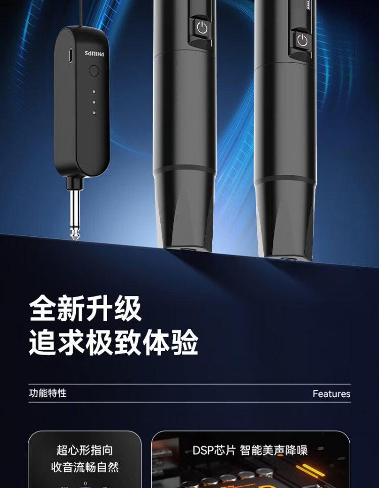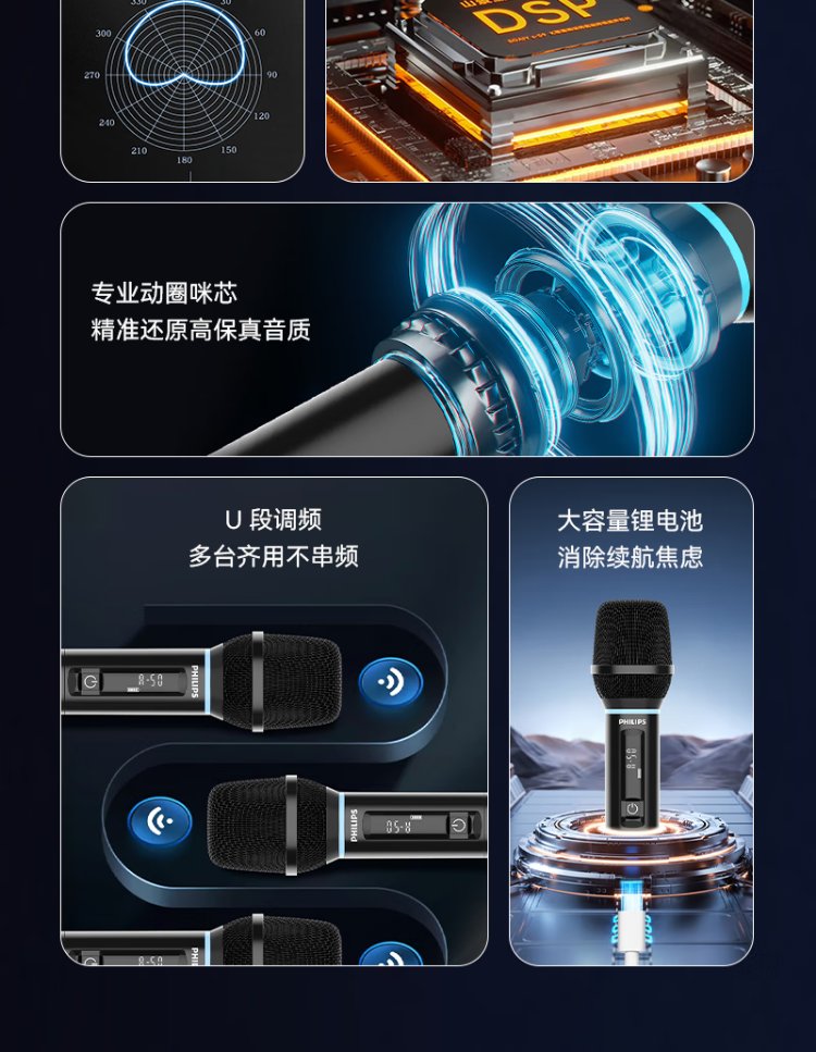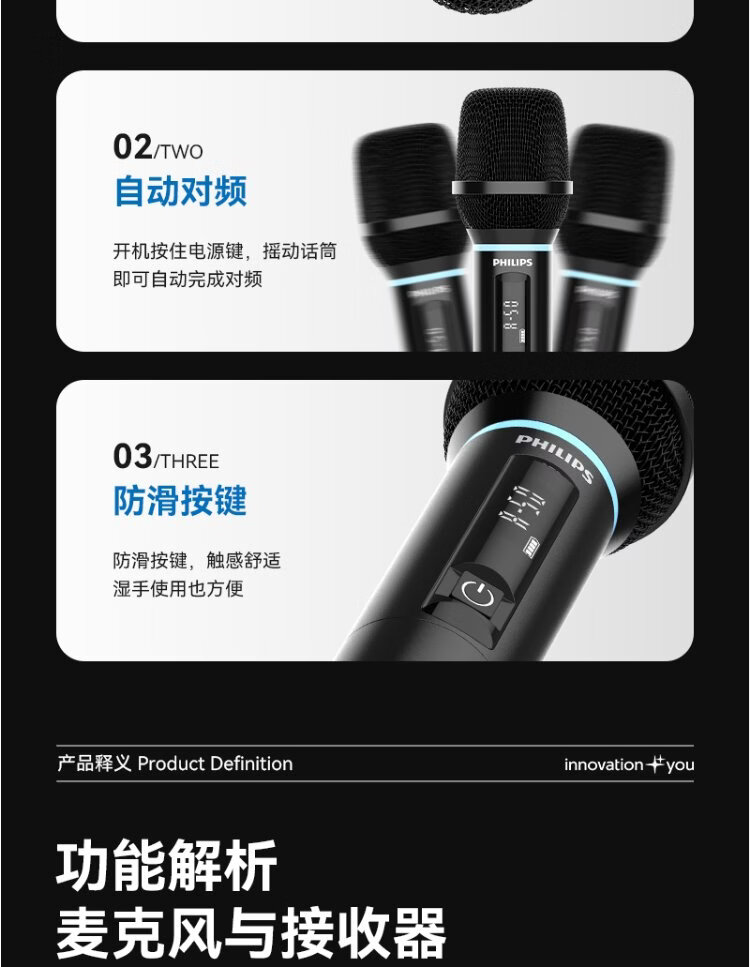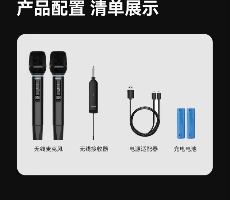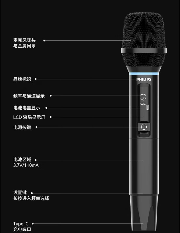 Philips (PHILIPS) Portable Wireless Universal Microphone Handheld Karaoke Microphone Sound Card Audio Performance Speech UHF High-Fidelity Karaoke Wireless Microphone High-Fidelity Sound Quality Conference Host