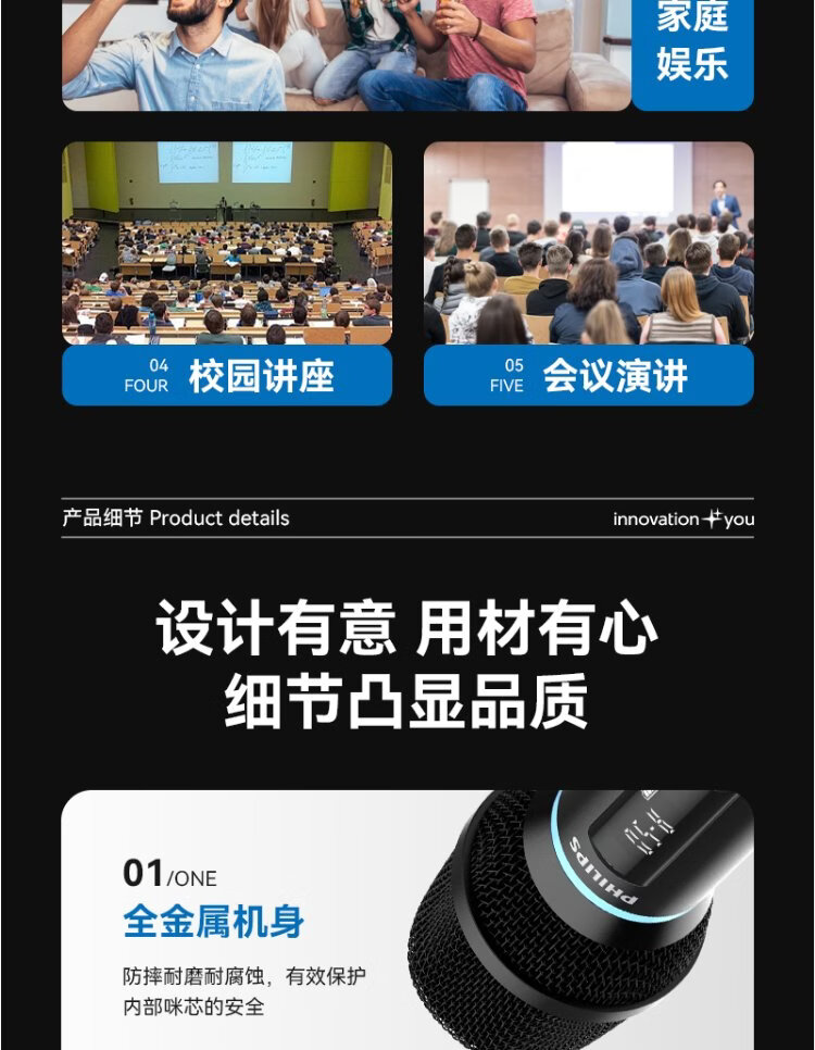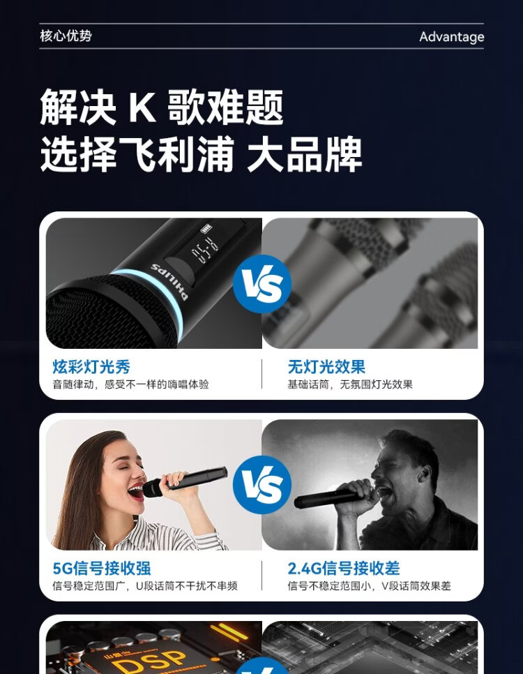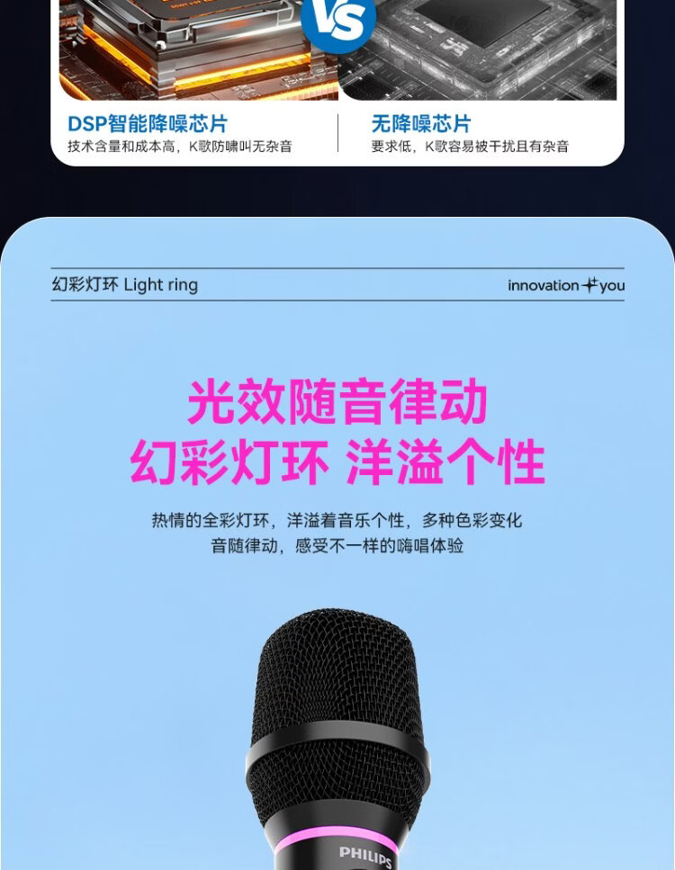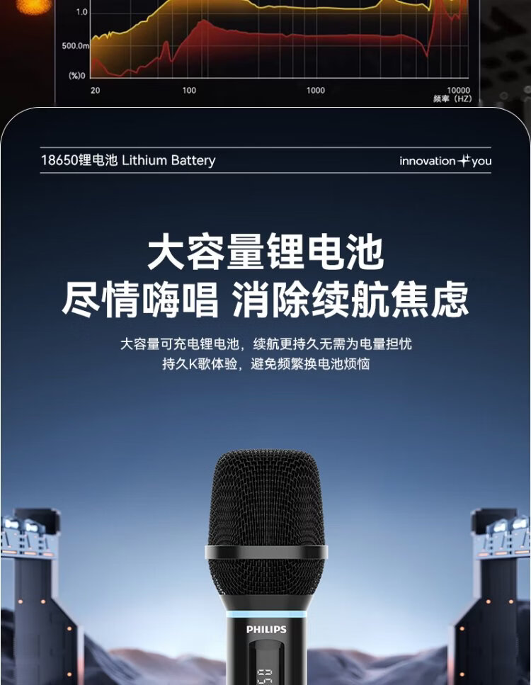 Philips (PHILIPS) Portable Wireless Universal Microphone Handheld Karaoke Microphone Sound Card Audio Performance Speech UHF High-Fidelity Karaoke Wireless Microphone High-Fidelity Sound Quality Conference Host