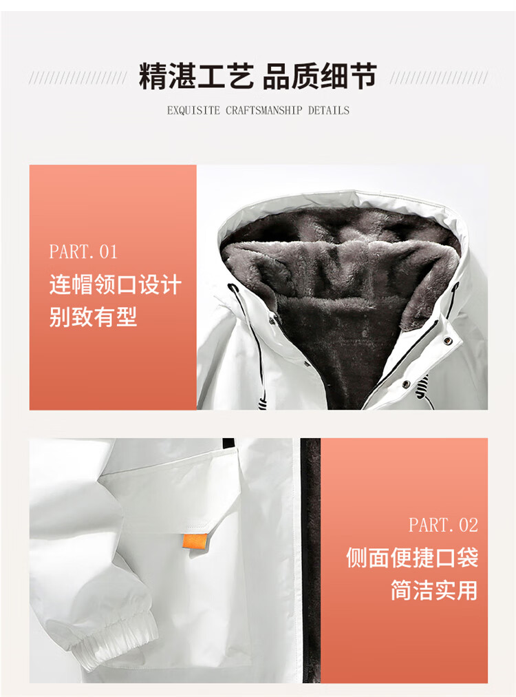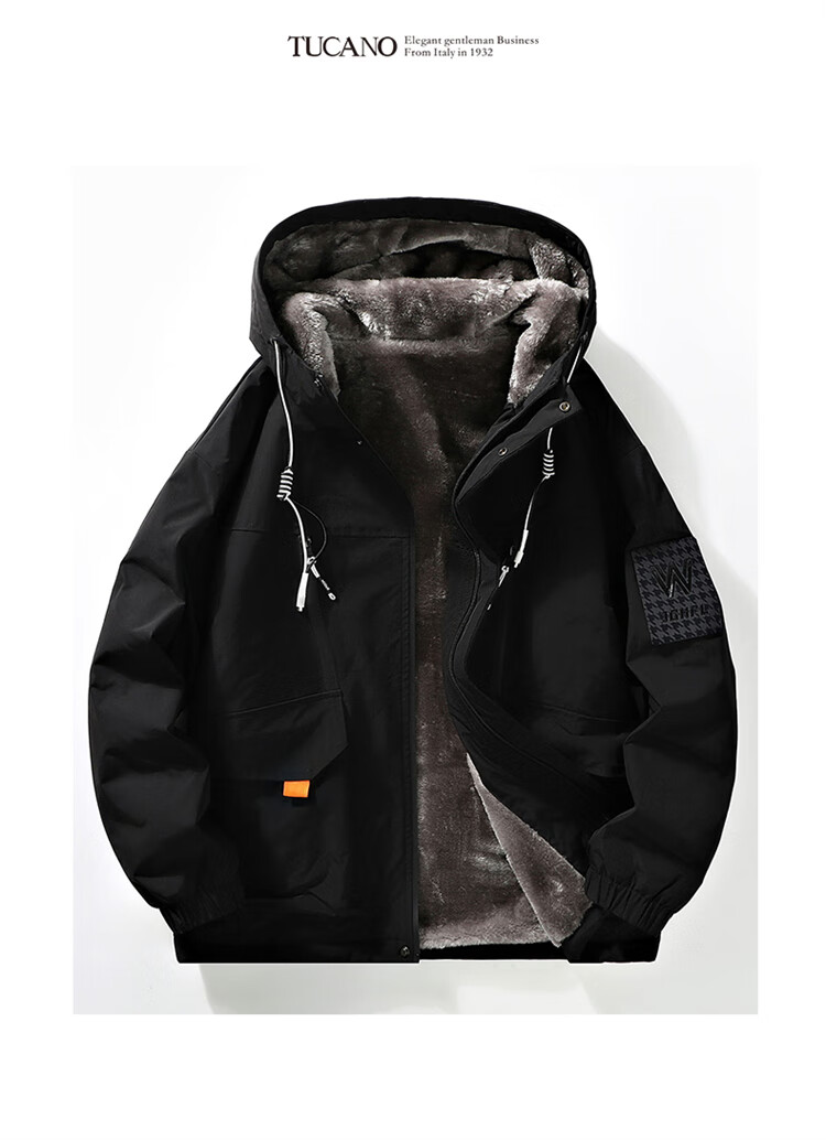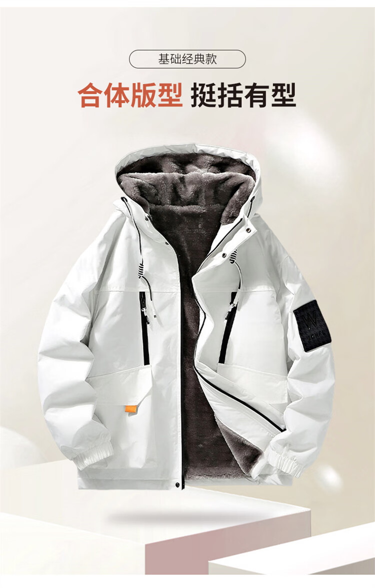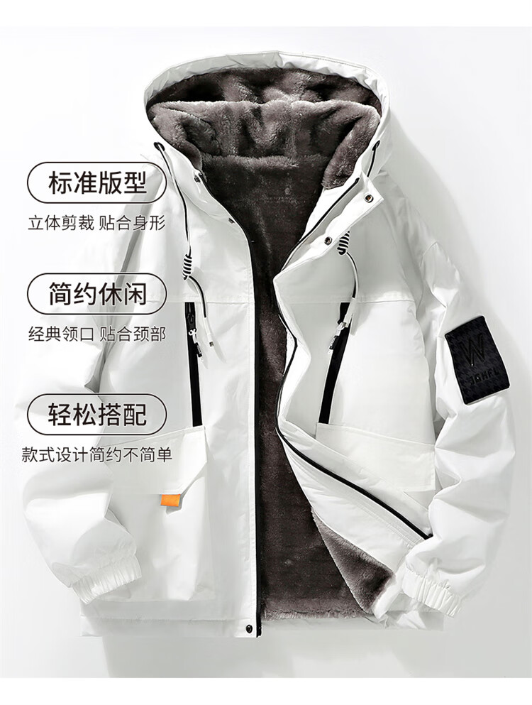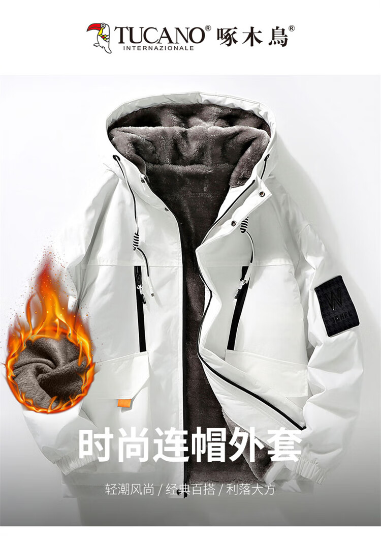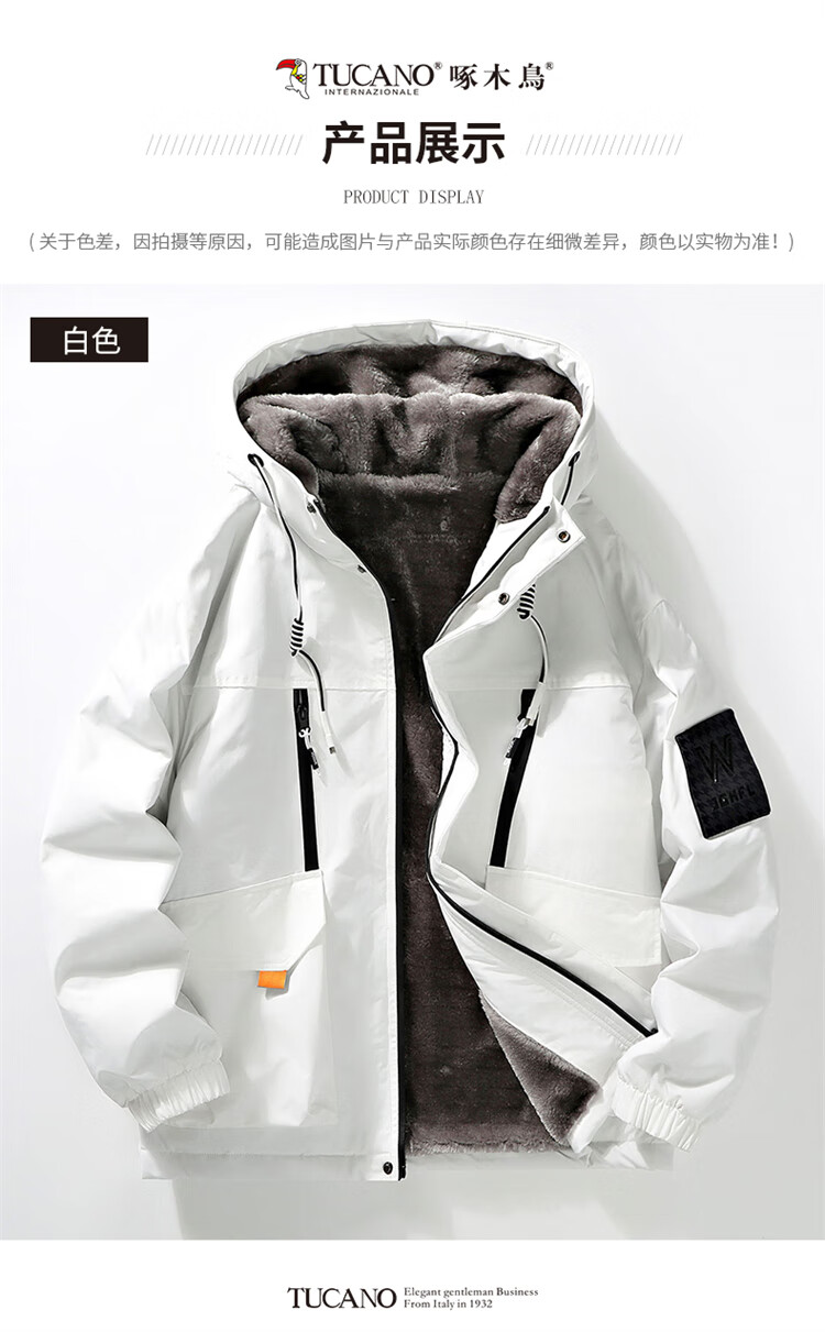 Woodpecker (TUCANO) Jacket Men's Winter Velvet Thickened Hooded Jacket Loose Warm Workwear Jacket Casual Men's White XL