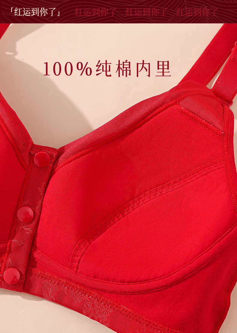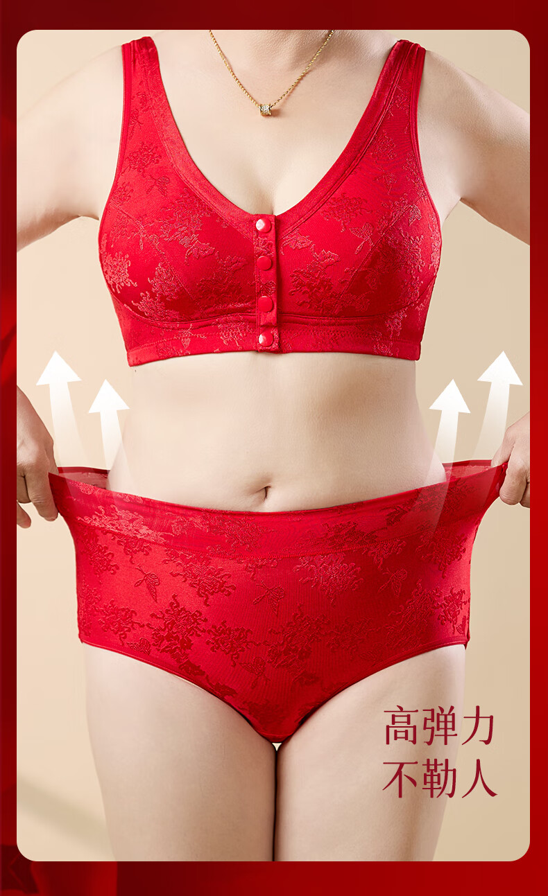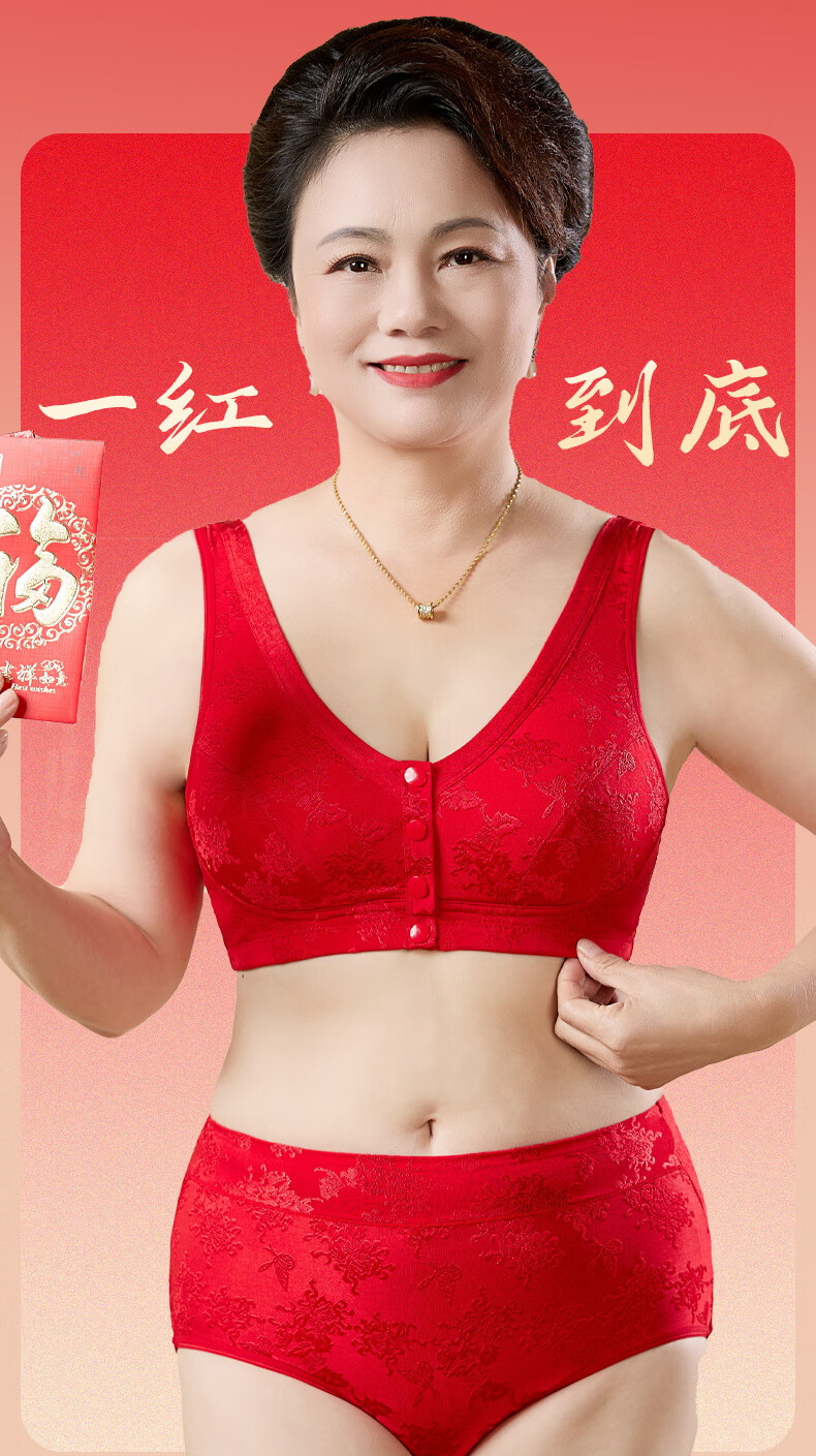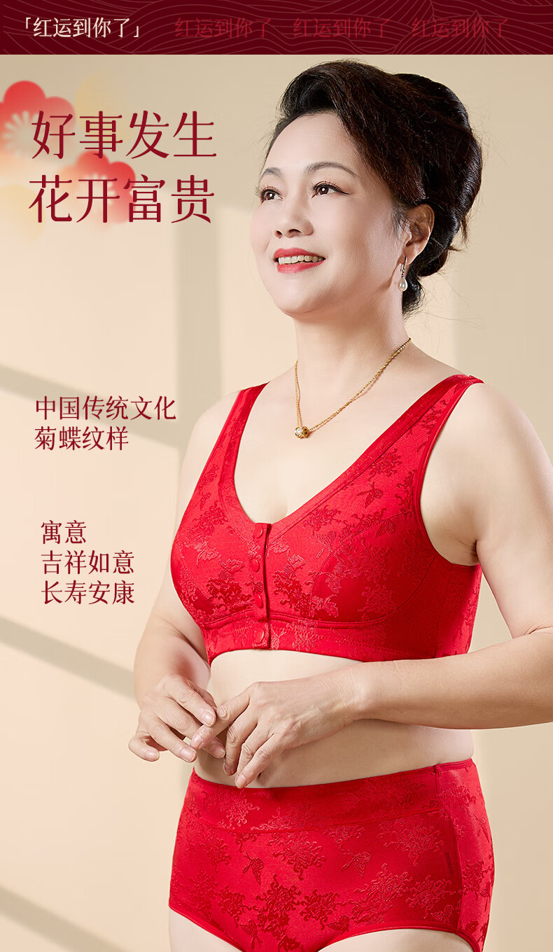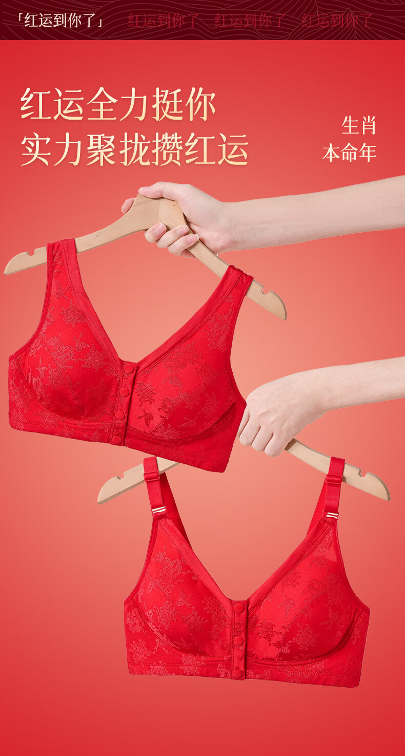 Langsha Mama's Year of the Horse Underwear Women's Year of the Horse Large Size Middle-aged and Elderly Front Buckle Bra Qiji Red Bright Red Cotton Underwear