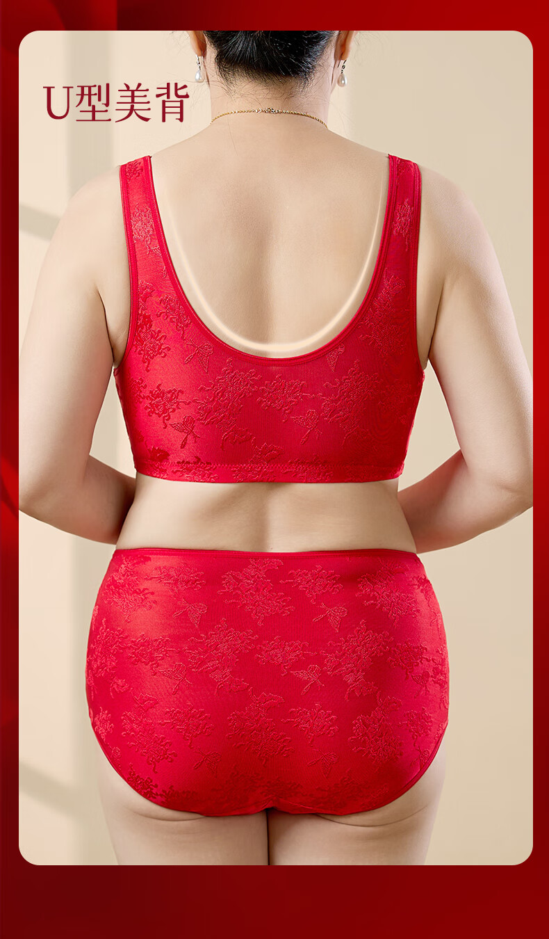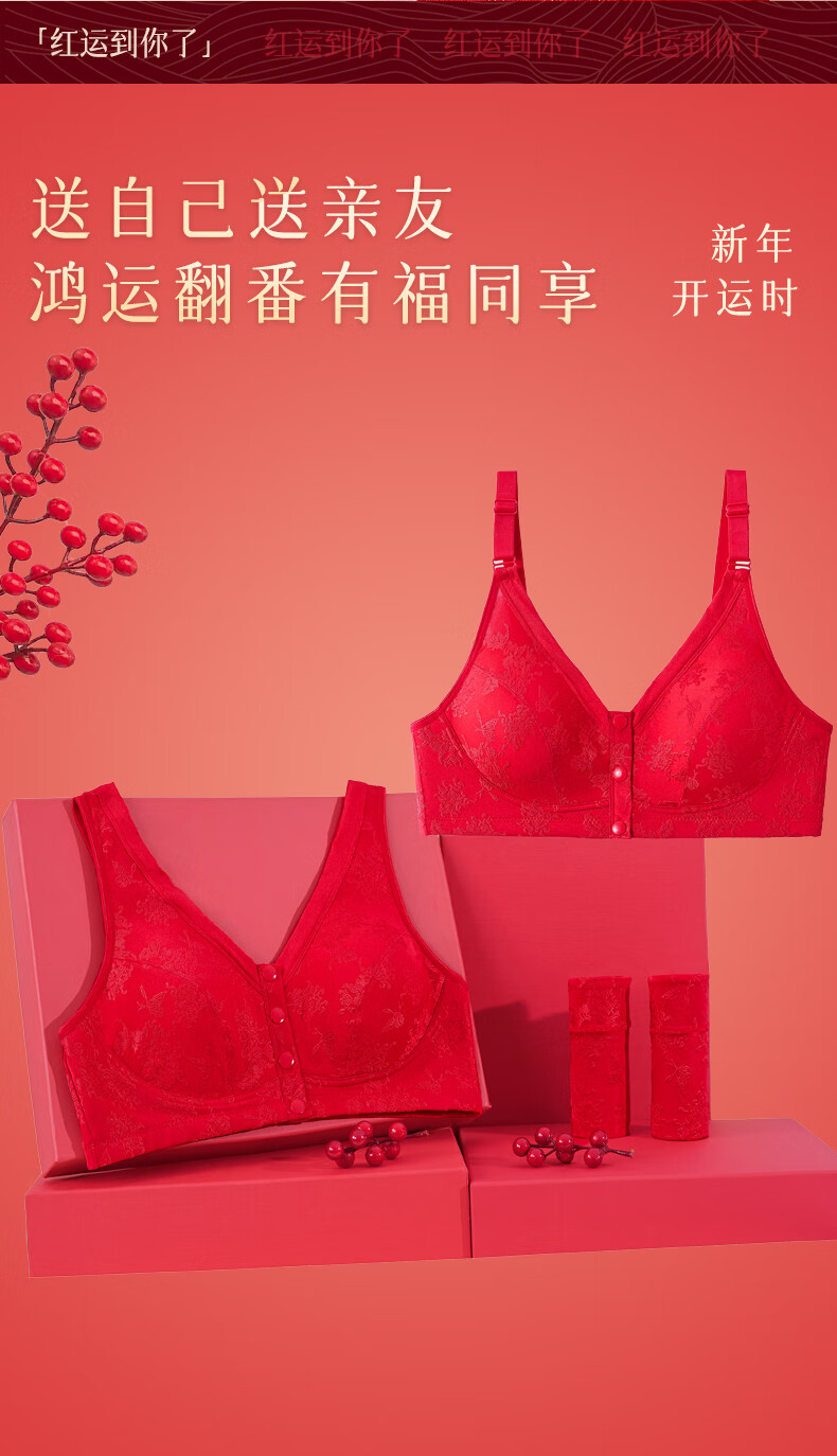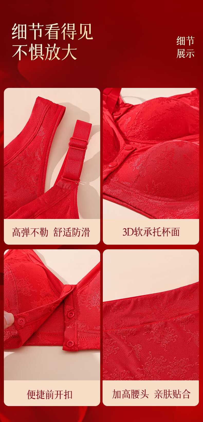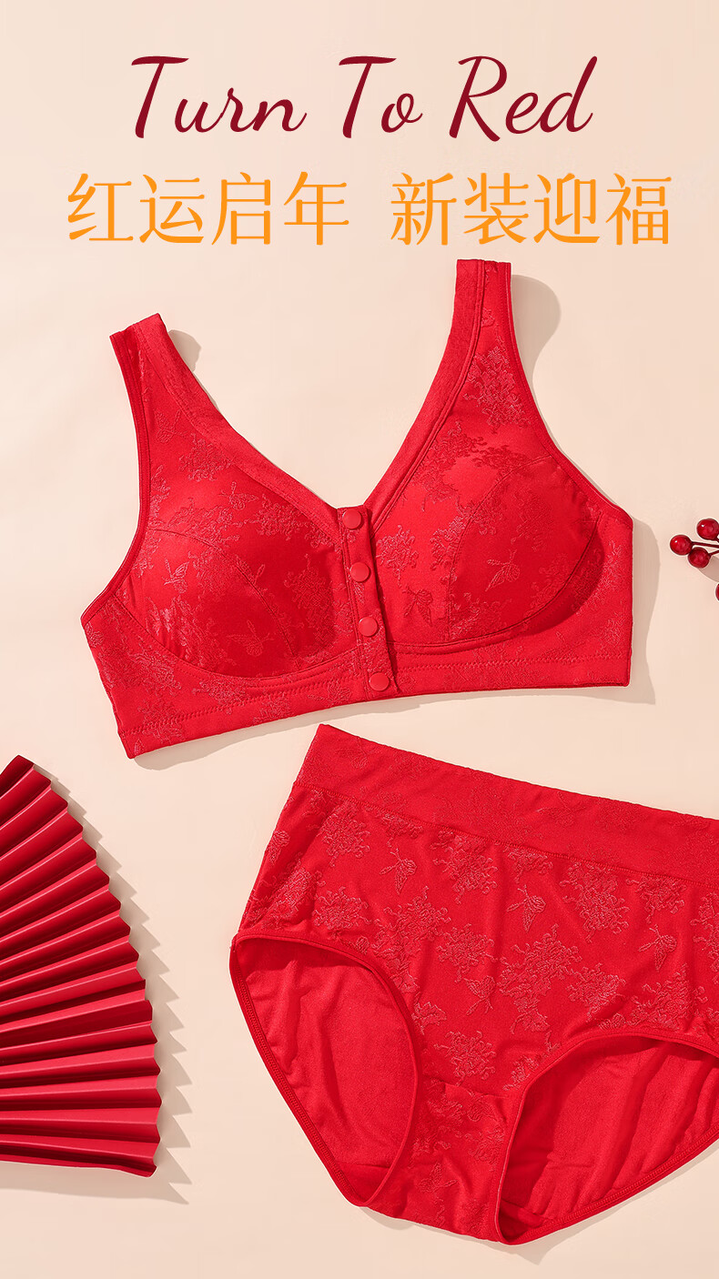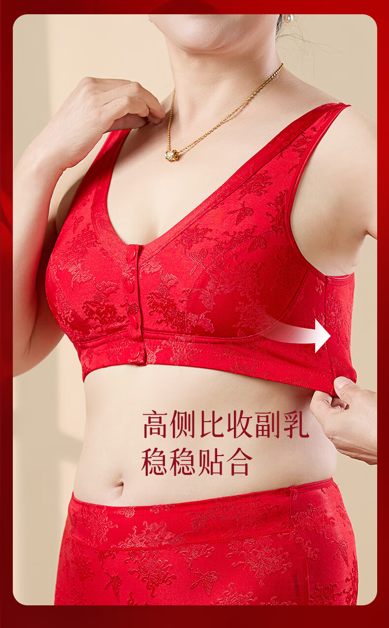 Langsha Mama's Year of the Horse Underwear Women's Year of the Horse Large Size Middle-aged and Elderly Front Buckle Bra Qiji Red Bright Red Cotton Underwear