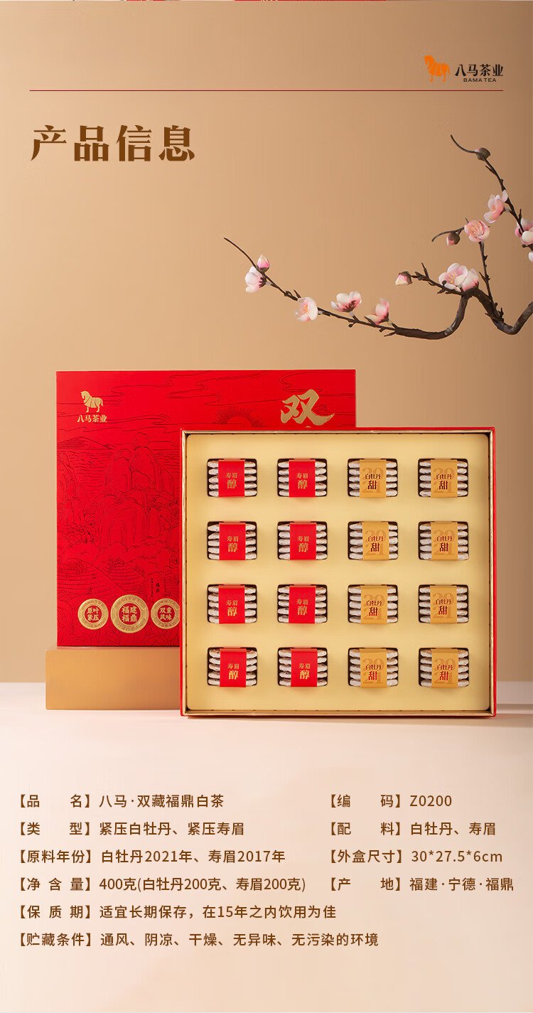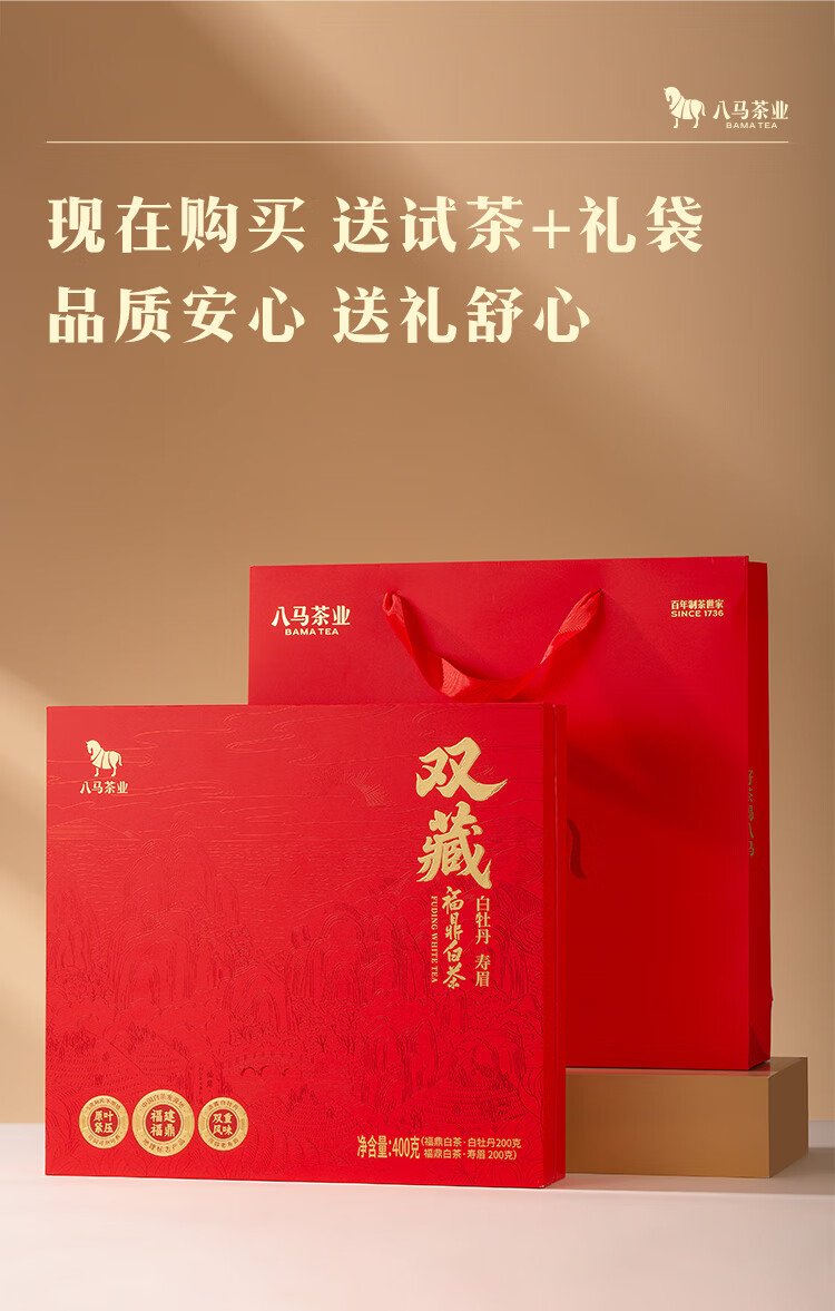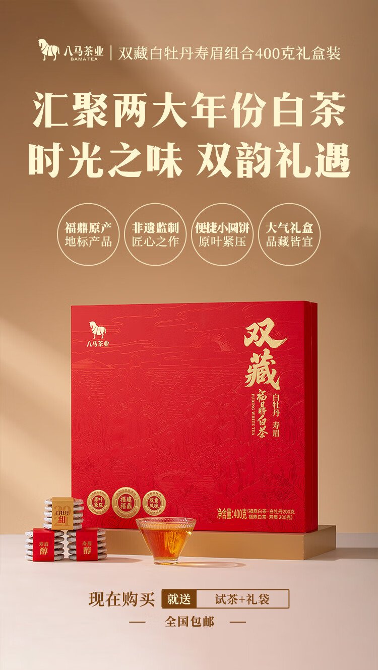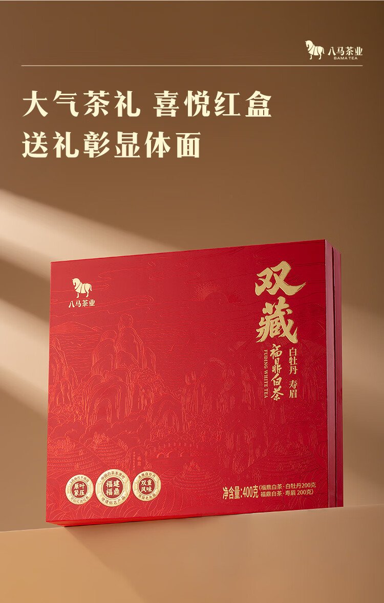 Bama Tea Double Tibetan Fuding White Tea Combination White Peony Shoumei 400g Gift Box Tea for Gifting