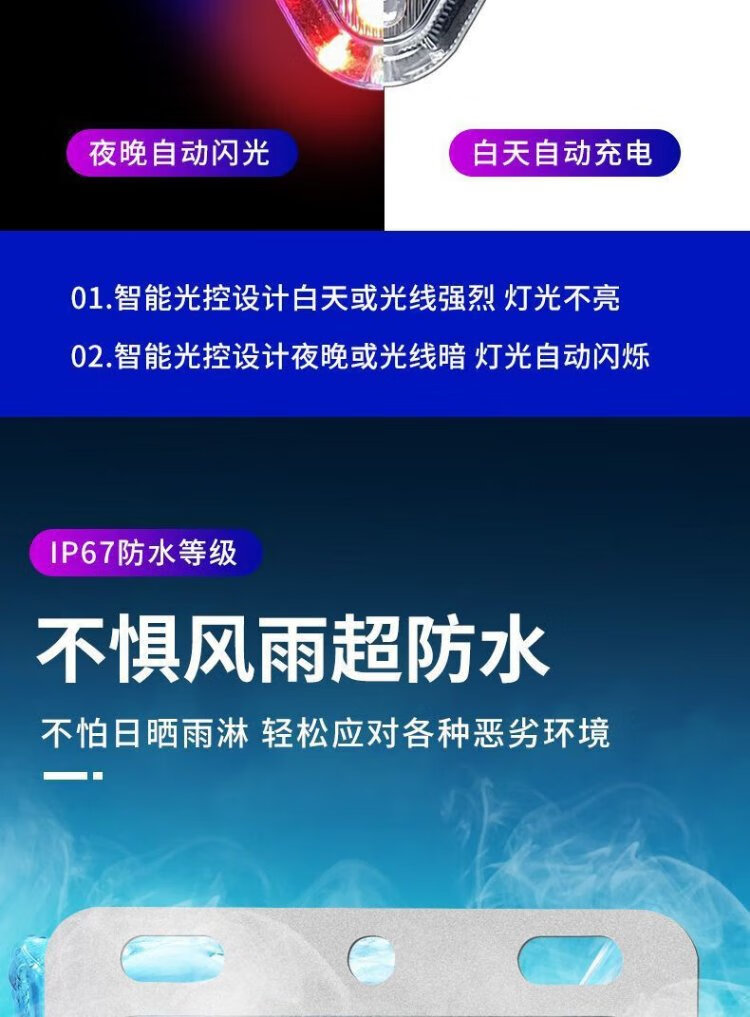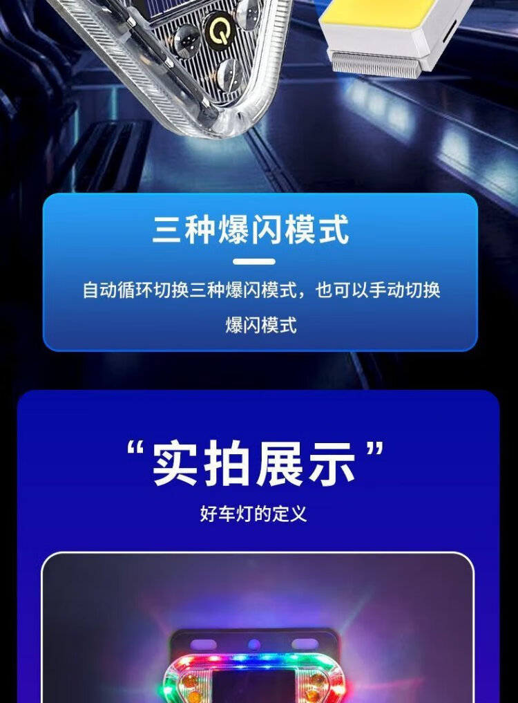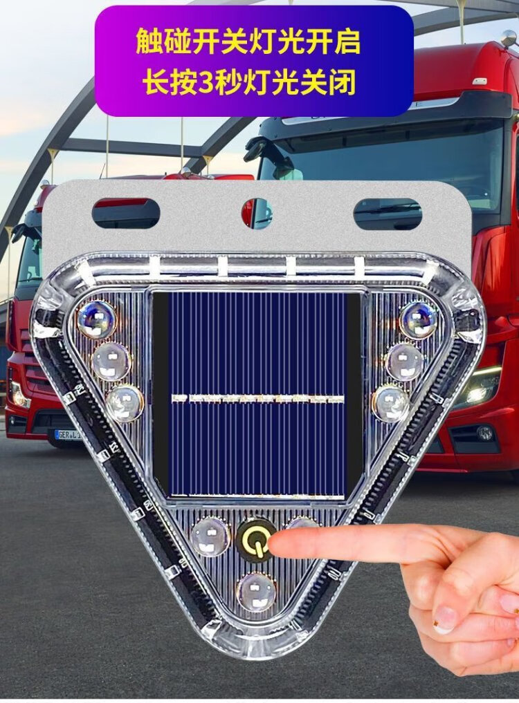BAIGE LED solar warning light, no wiring, width indicator, motorcycle warning flash, car anti-rear collision light, triangle flash, strong magnetic version