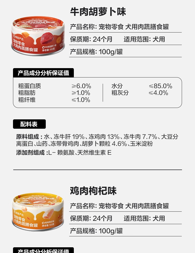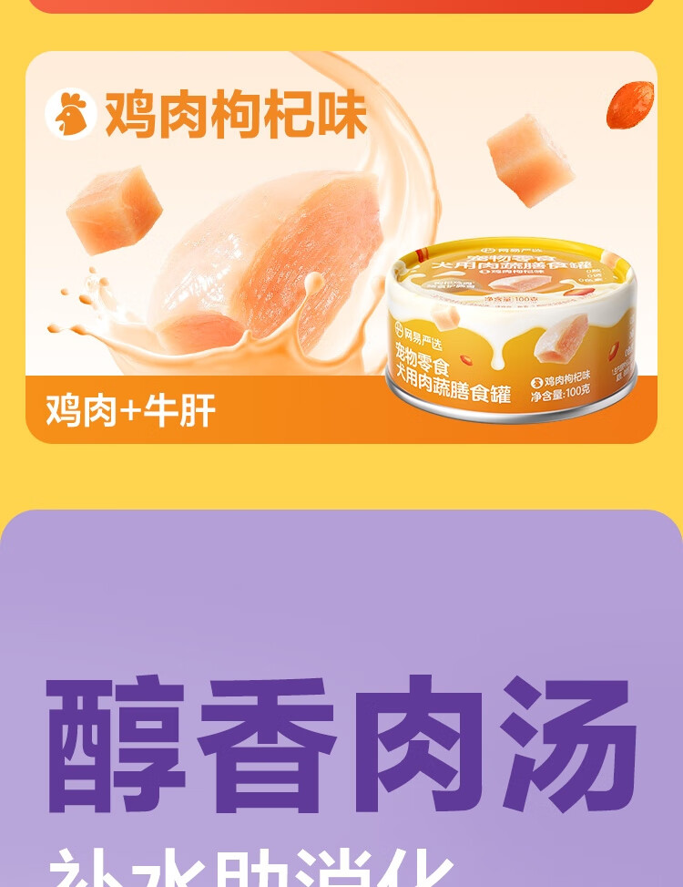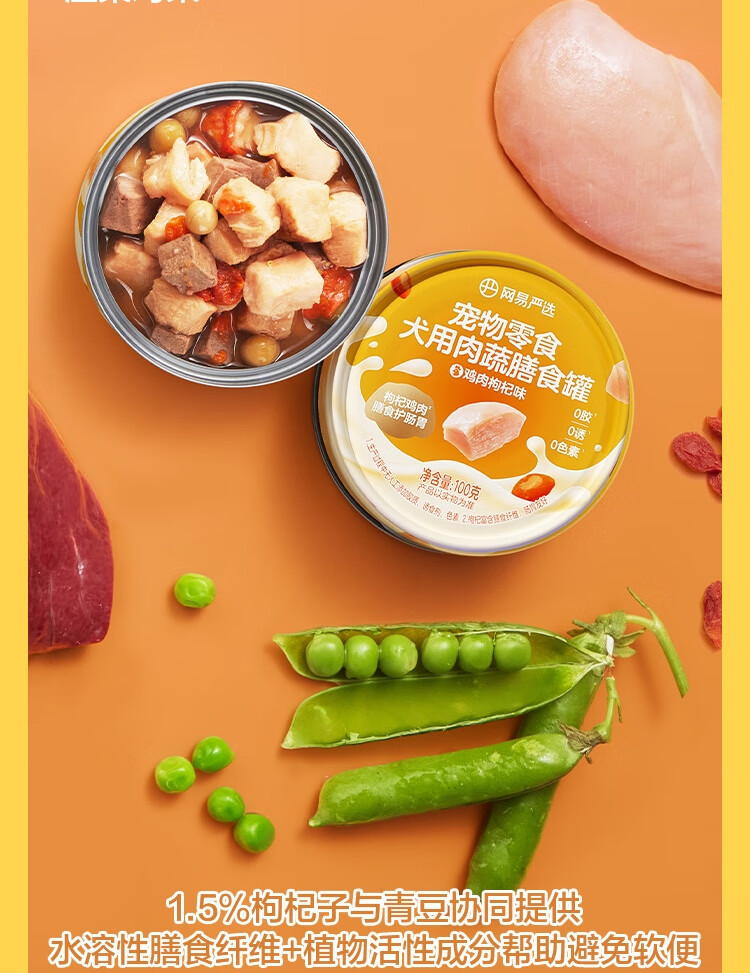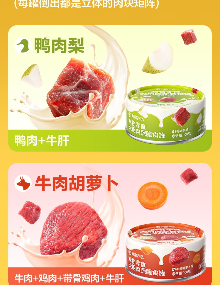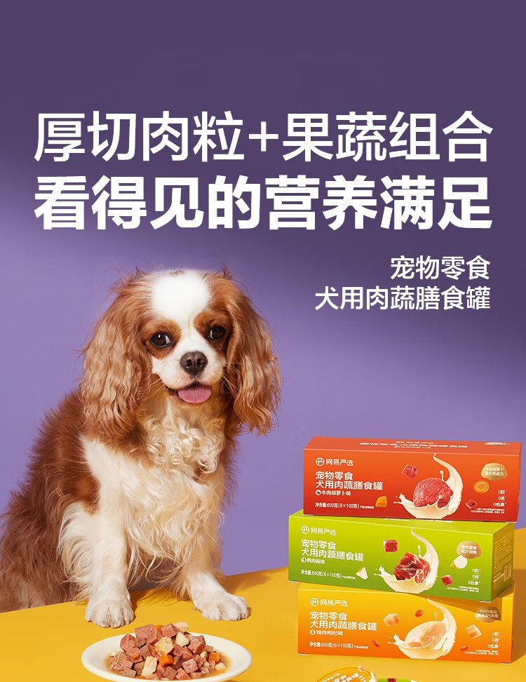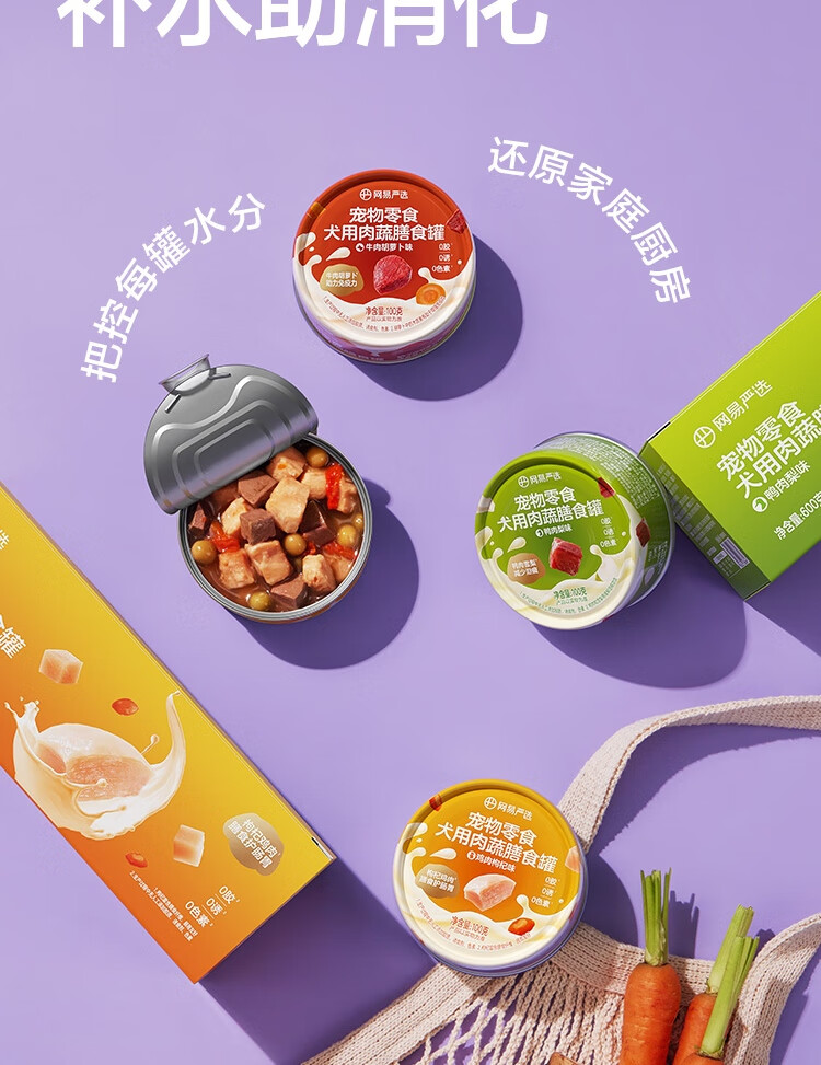 NetEase carefully selects pet dog canned dog snacks nutritious wet food meal beef carrot flavor can 100g*6 cans