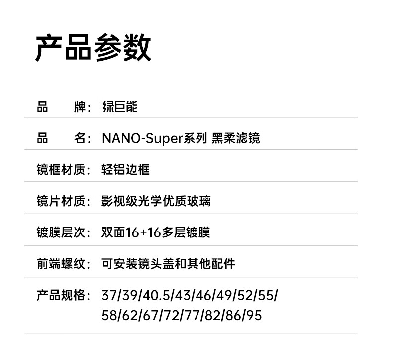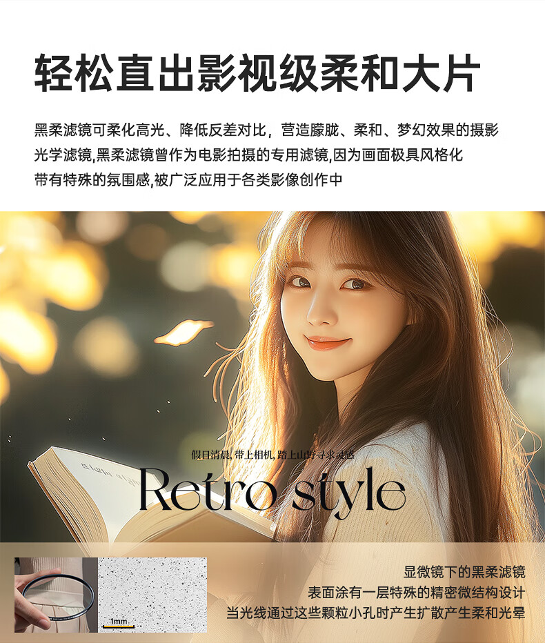 Green giant (llano) 1/4 black soft filter 67mm quarter soft lens soft lens soft focus lens hazy mirror portrait shooting beauty mirror Xiaomi 15ultra photography kit