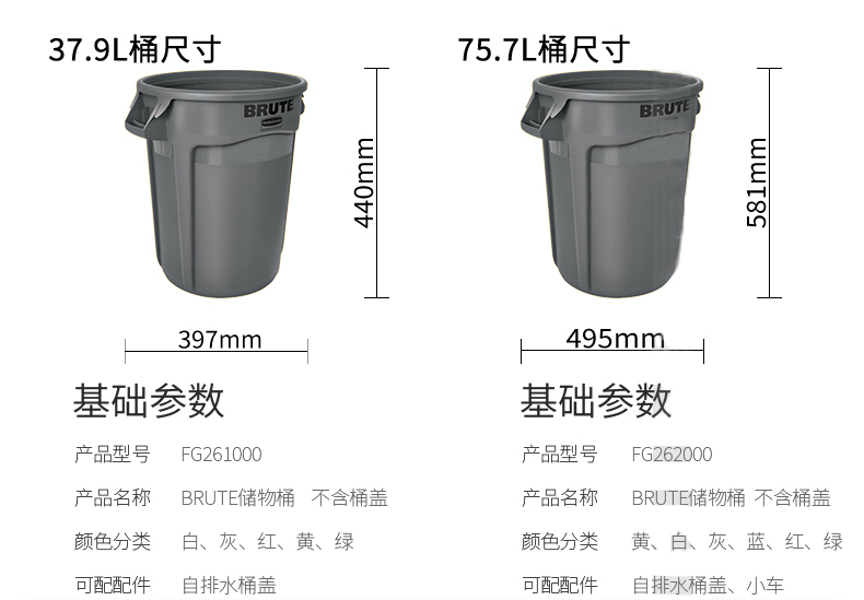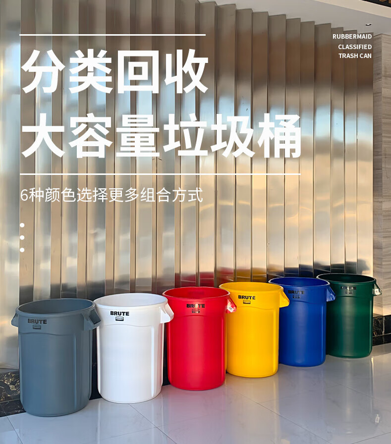 Rubbermaid Business Supplies BRUTE Storage Bucket 32G/121L Bucket Cover Set Gray 263100 263200 Practical Outdoor Round Trash Can Storage Bucket Q