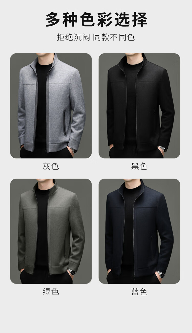 Hengyuanxiang 2025 Autumn and Winter New Solid Color Casual Jackets Men's Warm Stand-up Collar Wool Jackets Men