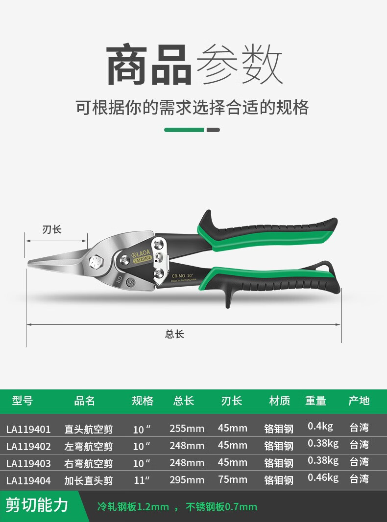 LAOA (LAOA) iron scissors, industrial scissors, powerful multi-functional iron scissors, keel scissors, integrated ceiling aviation scissors, extended straight head aviation scissors LA119404