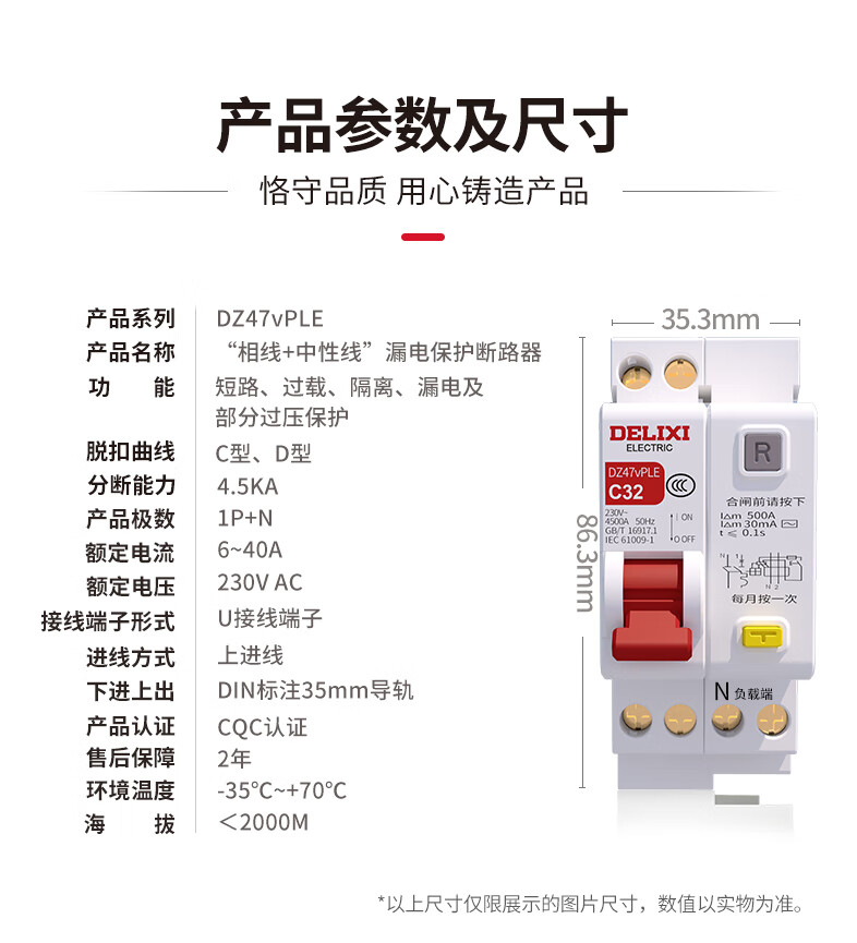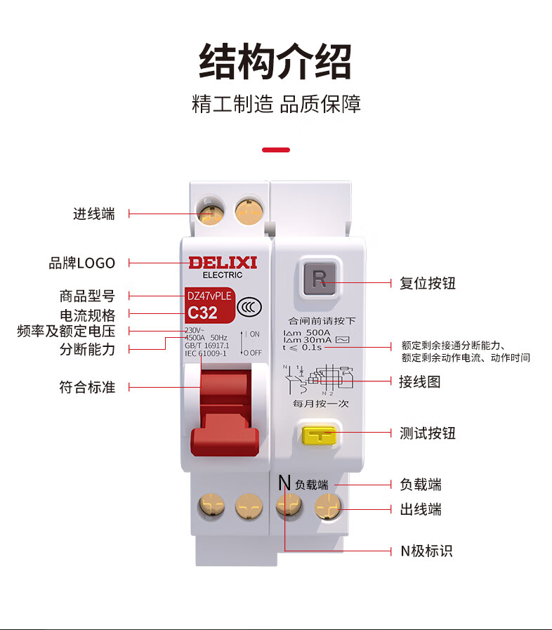 Delixi electrical circuit breaker air switch air switch leakage protector DZ47vP neutral line double in and double out 1P+N 40A