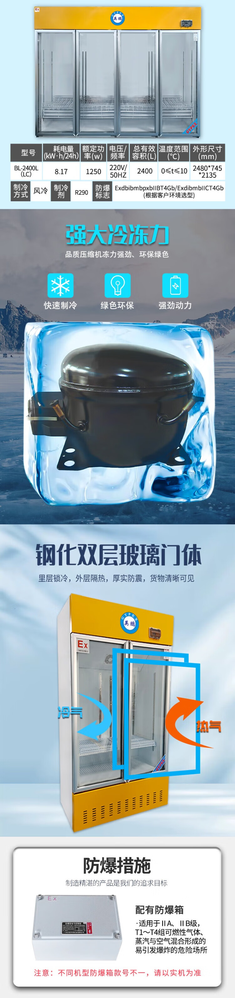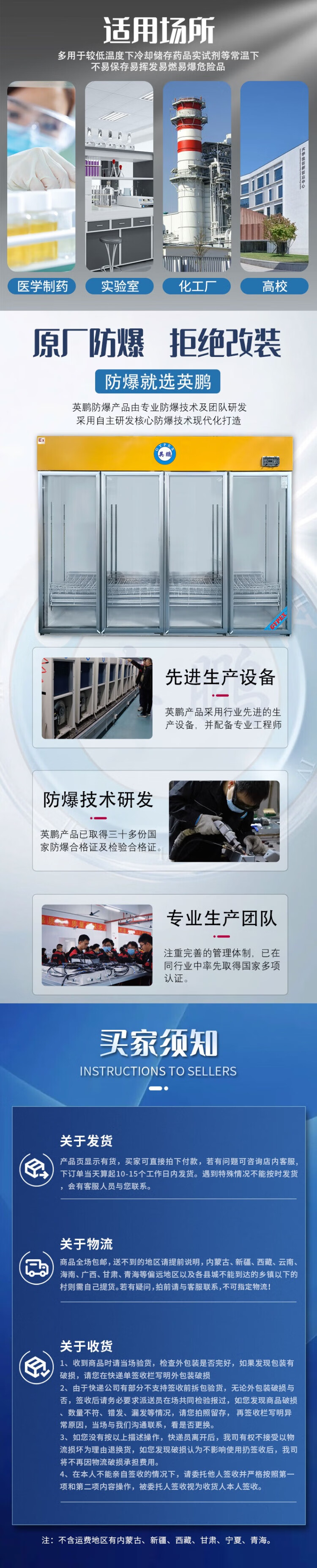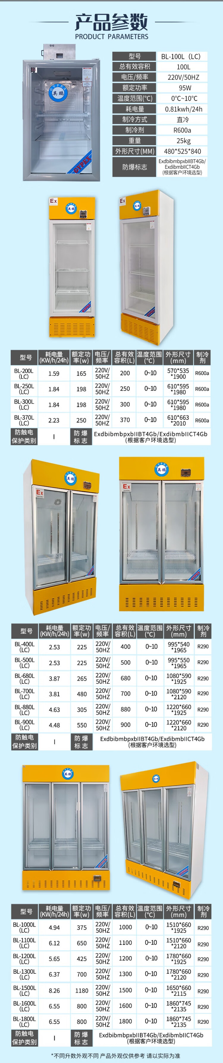 Yingpeng (GYPEX) explosion-proof refrigerator vertical refrigerated cabinet is suitable for industrial explosion-proof 0-10 refrigerated cabinets such as laboratories, pharmaceutical factories, chemical plants, universities, etc. BL-370L (LC)