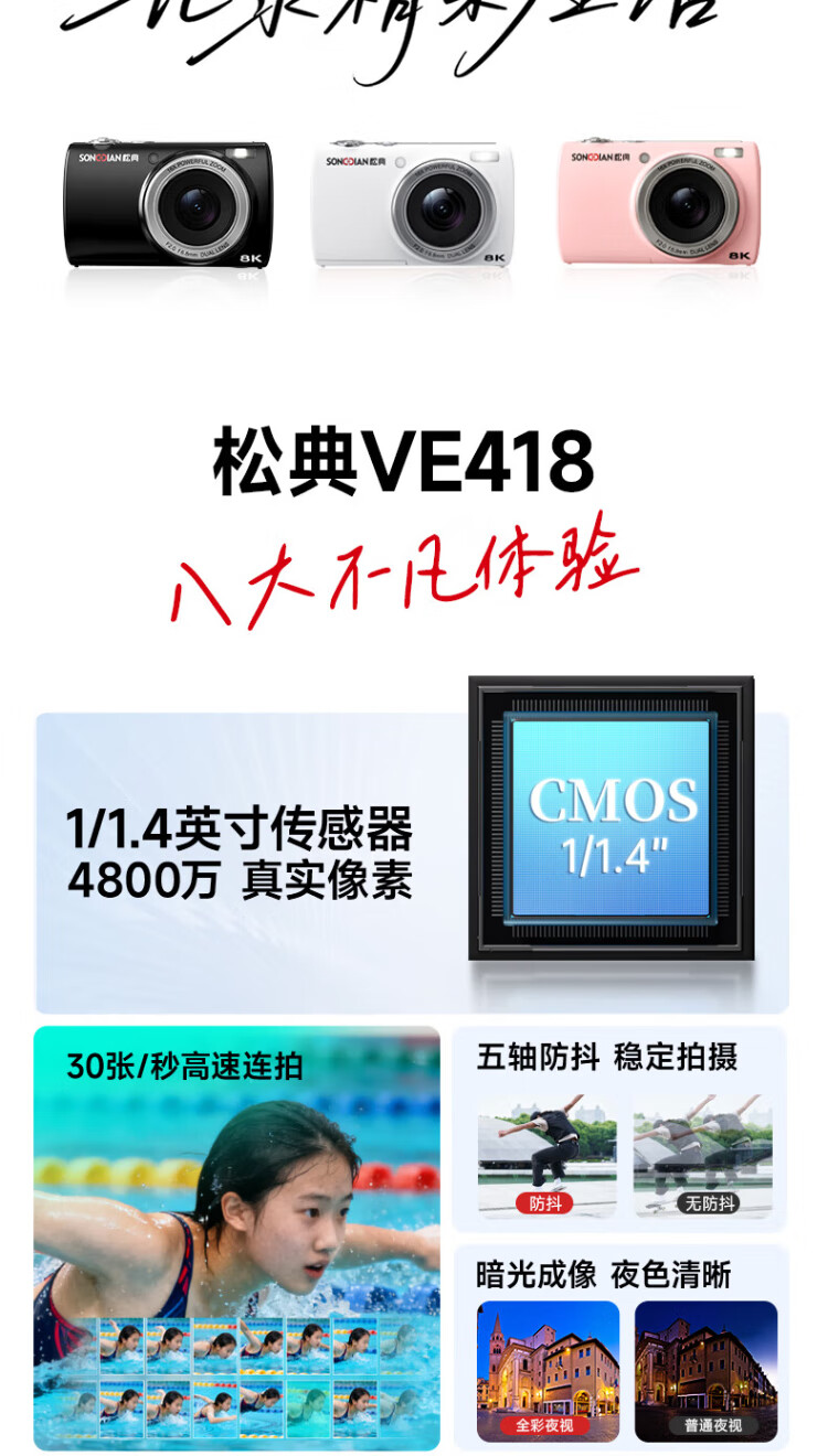 SONGDIAN VE418 digital camera HD outsole sensor vlog travel special full color night vision entry ccd flat touch screen card machine fairy powder + 32G memory