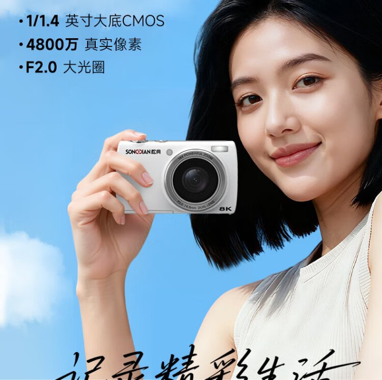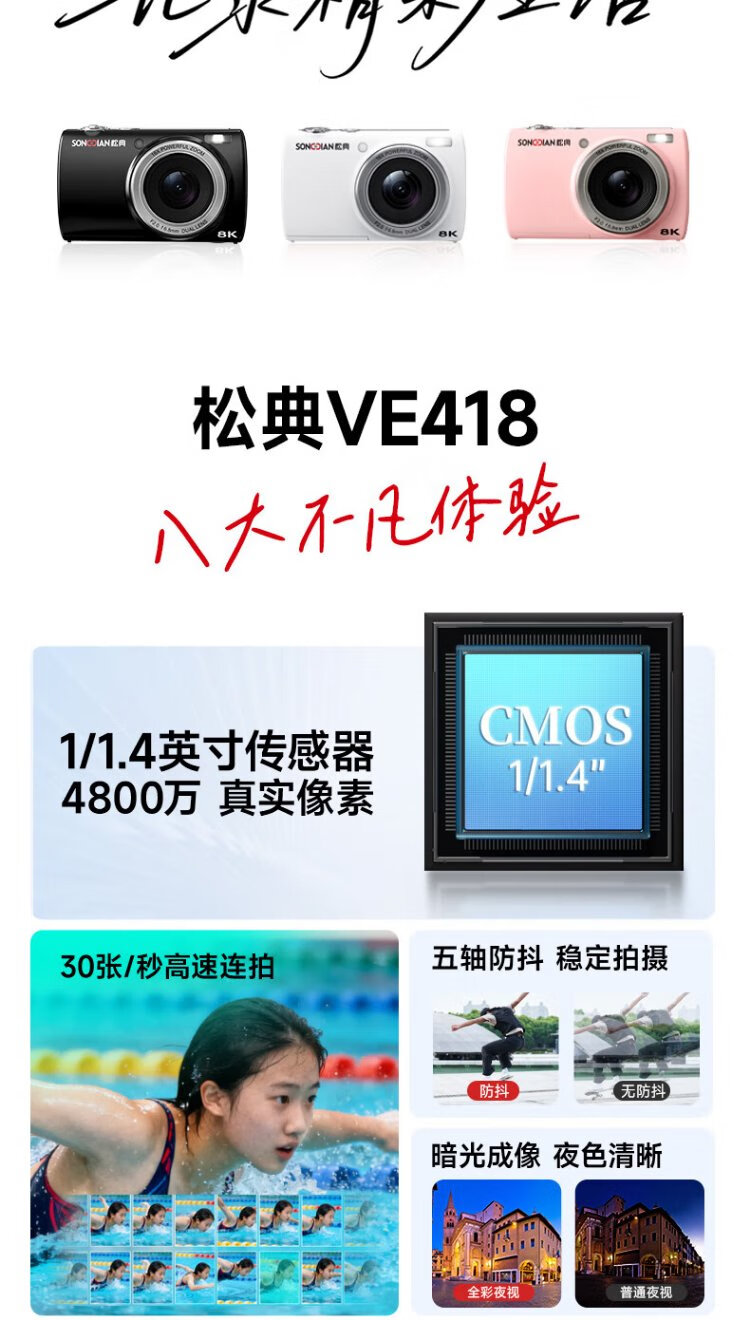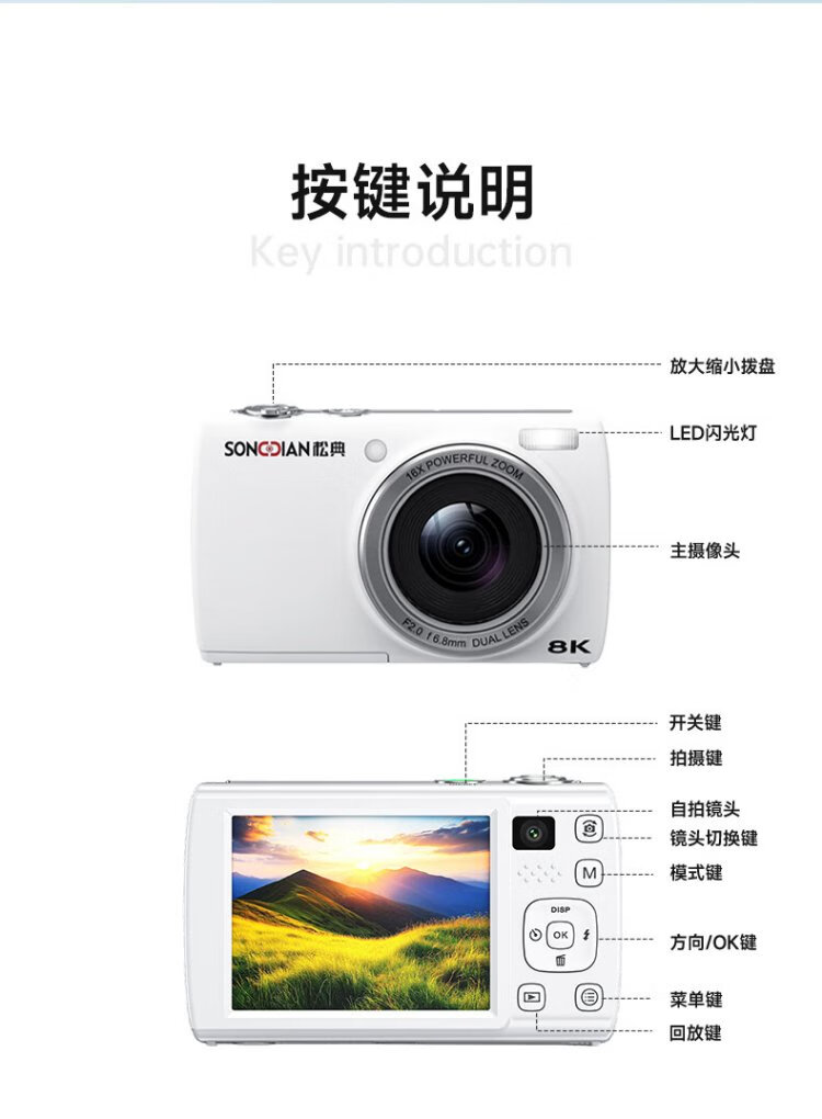 SONGDIAN VE418 digital camera HD outsole sensor vlog travel special full color night vision entry ccd flat touch screen card machine ivory white + 32G memory