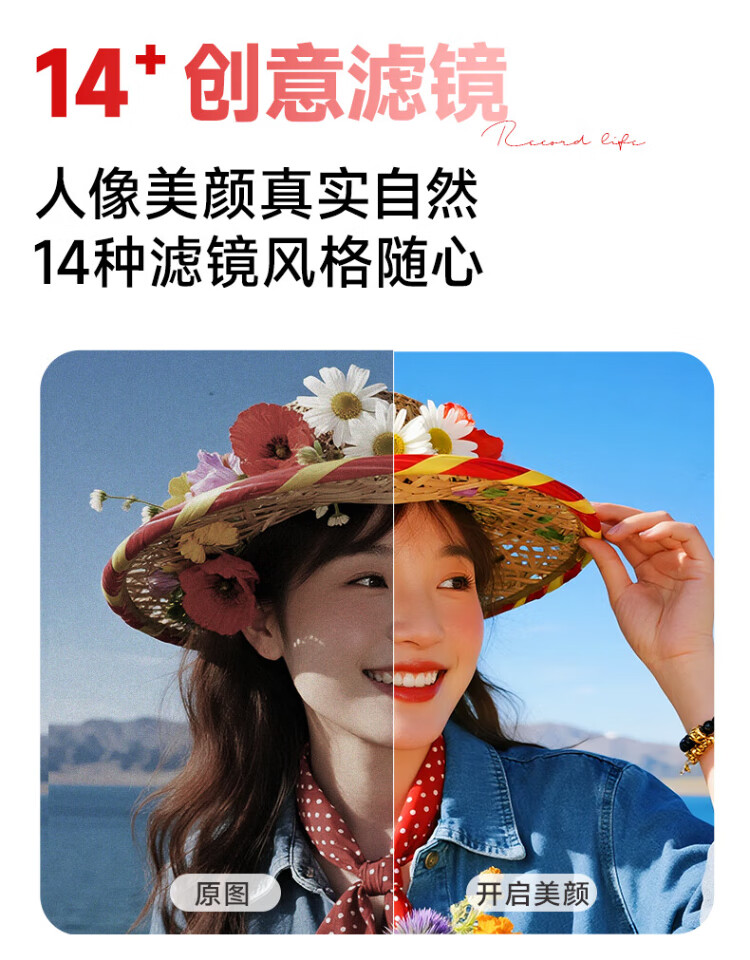 SONGDIAN VE418 digital camera HD outsole sensor vlog travel special full color night vision entry ccd flat touch screen card machine ivory white + 128G memory