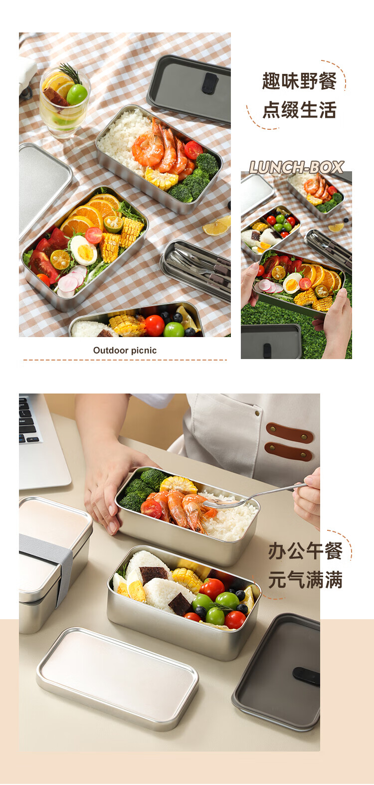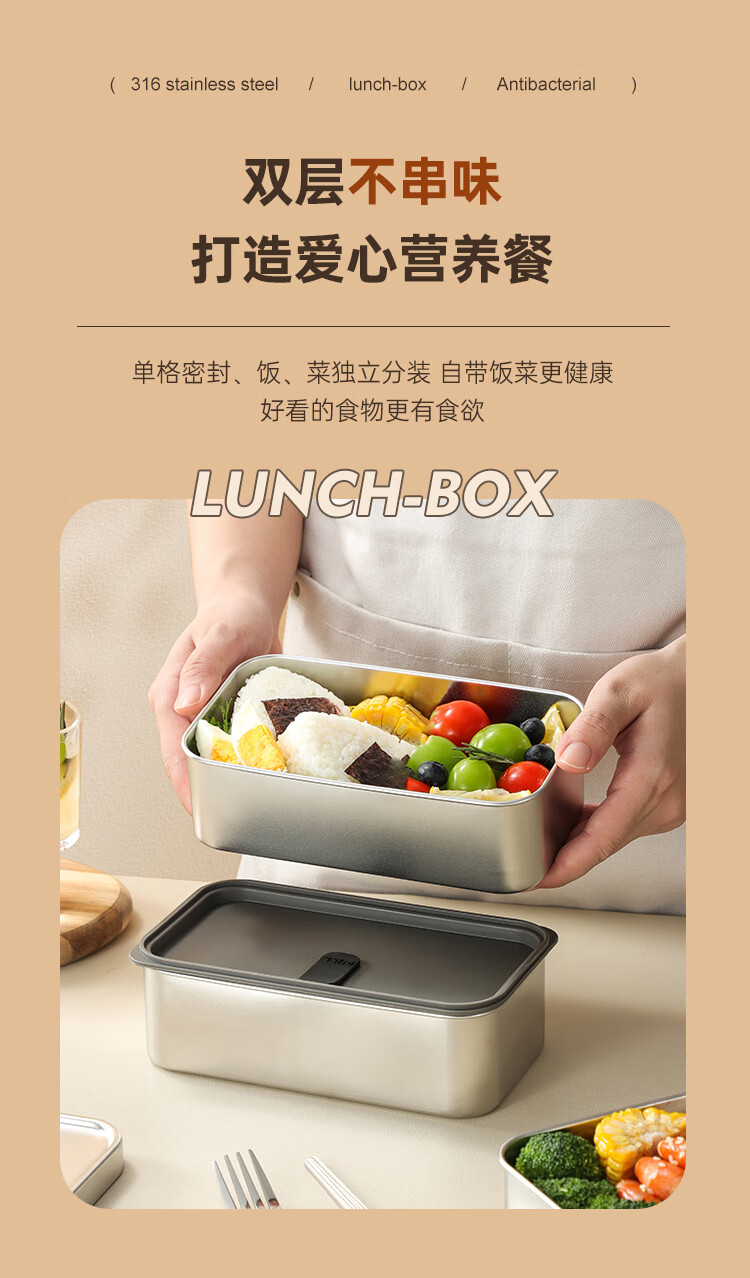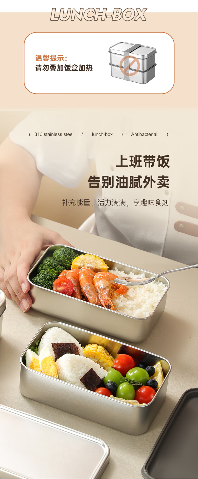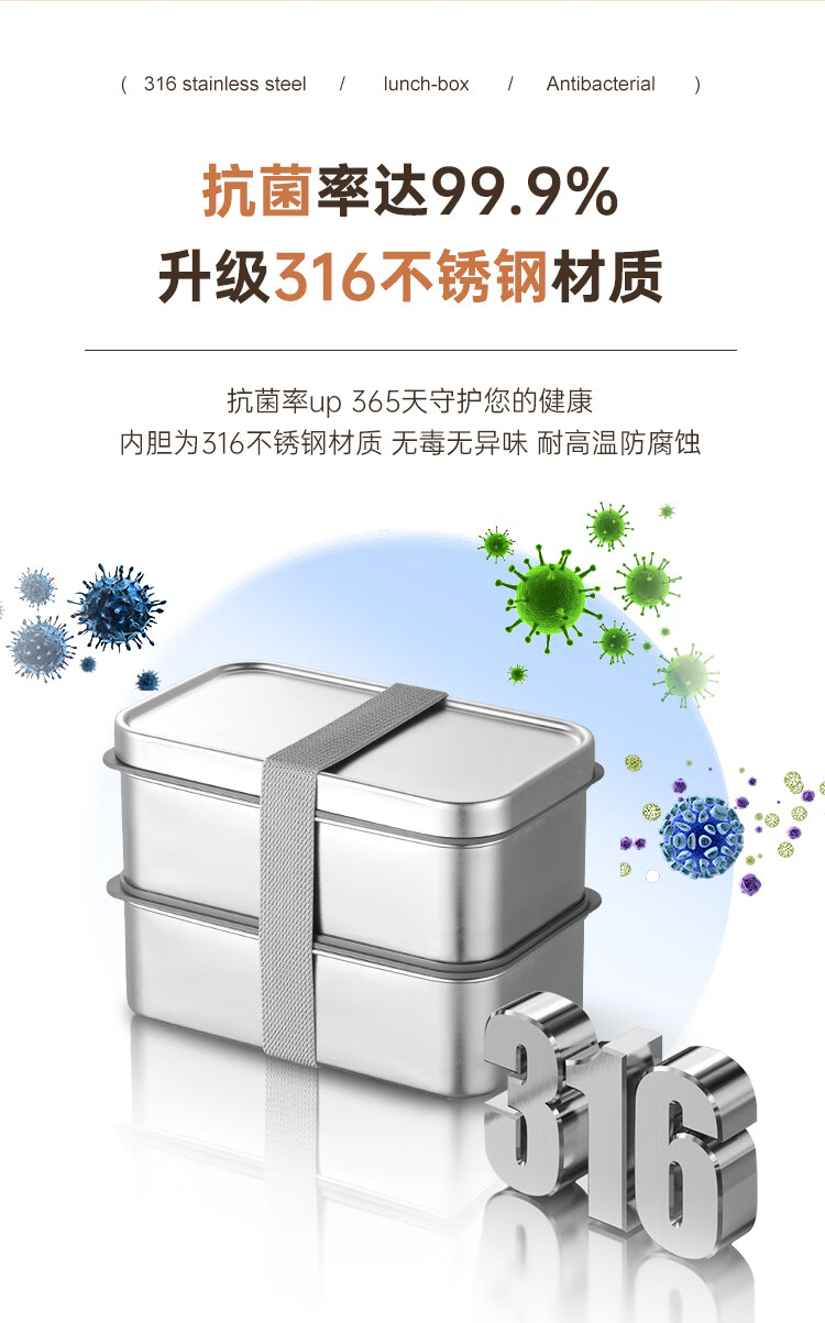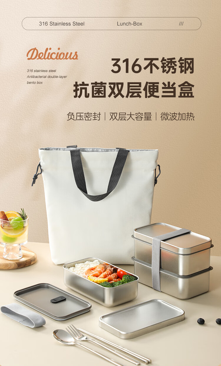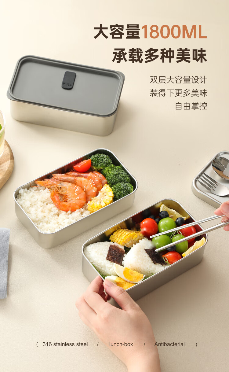 Made of 316 stainless steel lunch box, lunch box for office workers, portable lunch box, microwaveable lunch box, 2 layers, 1800ml