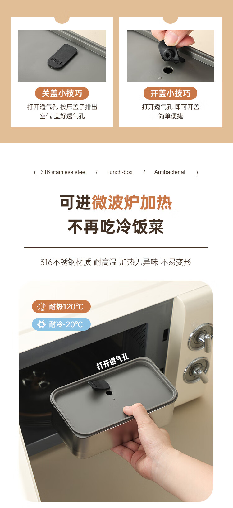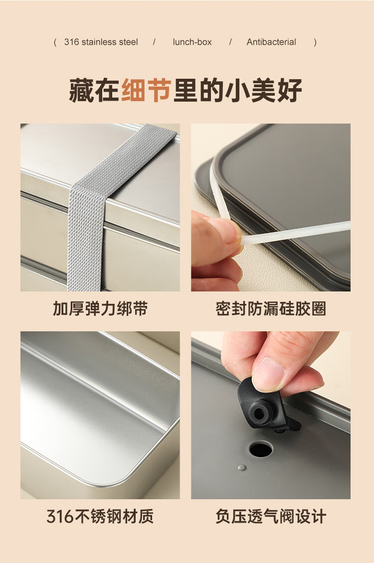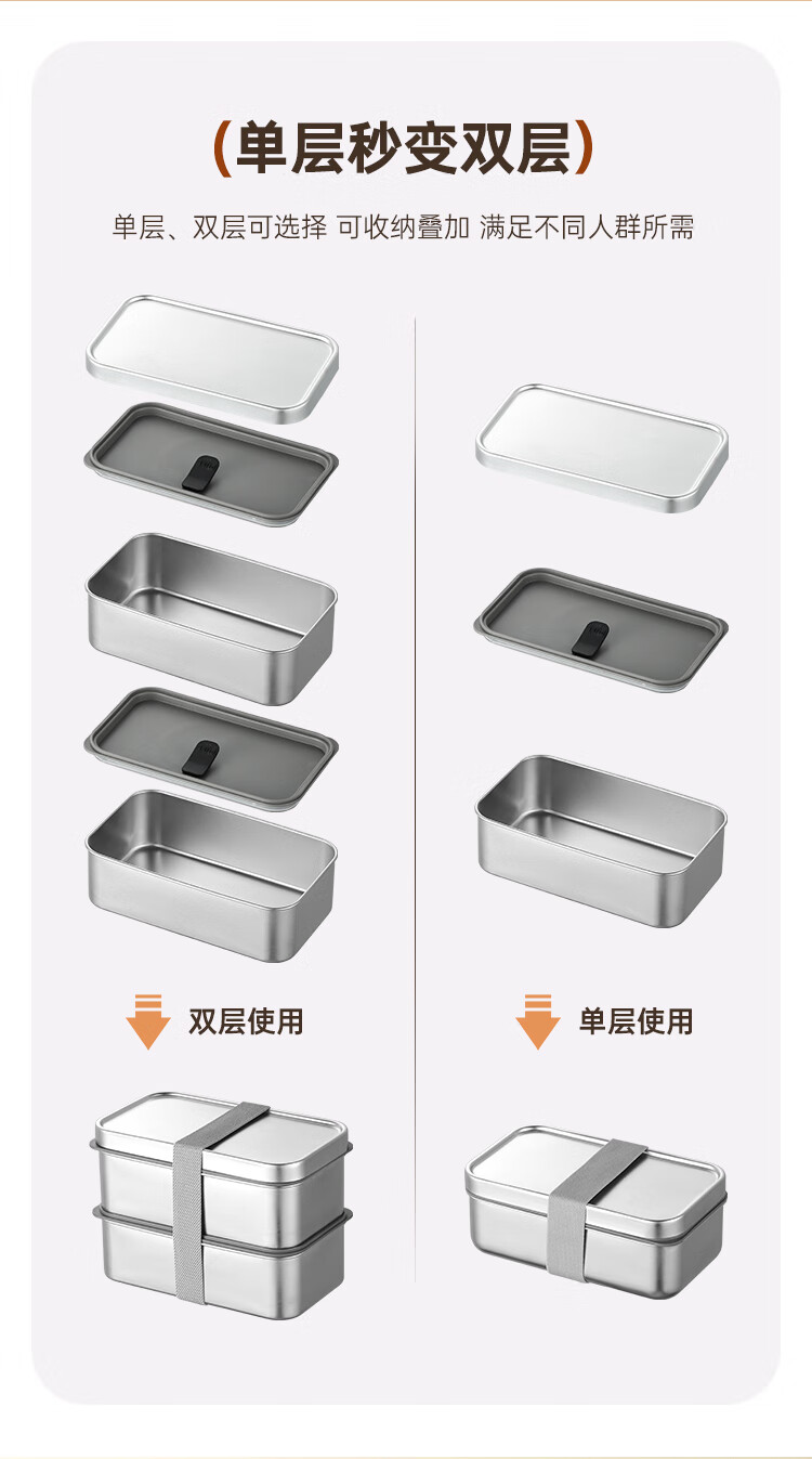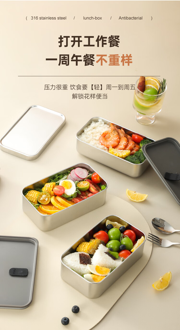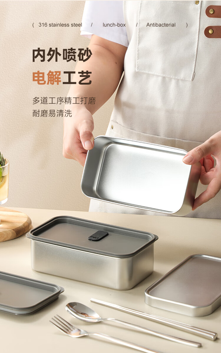 Made of 316 stainless steel lunch box, lunch box for office workers, portable lunch box, microwaveable lunch box, 2 layers, 1800ml
