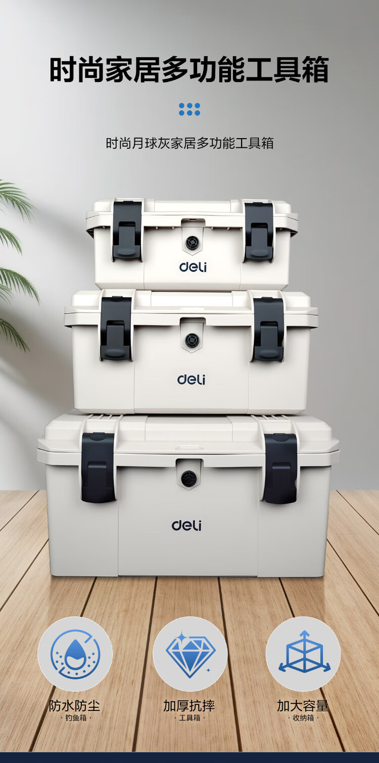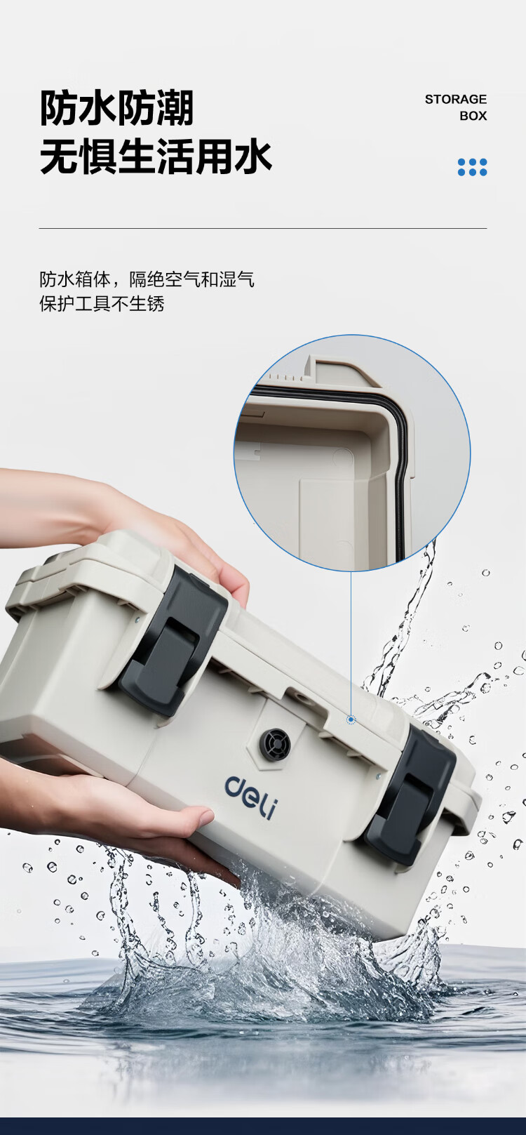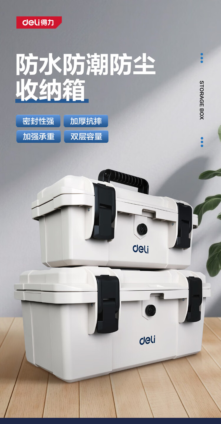 Deli home portable tool box waterproof, moisture-proof, dust-proof and anti-fall hardware large capacity multi-functional storage box 23 inches