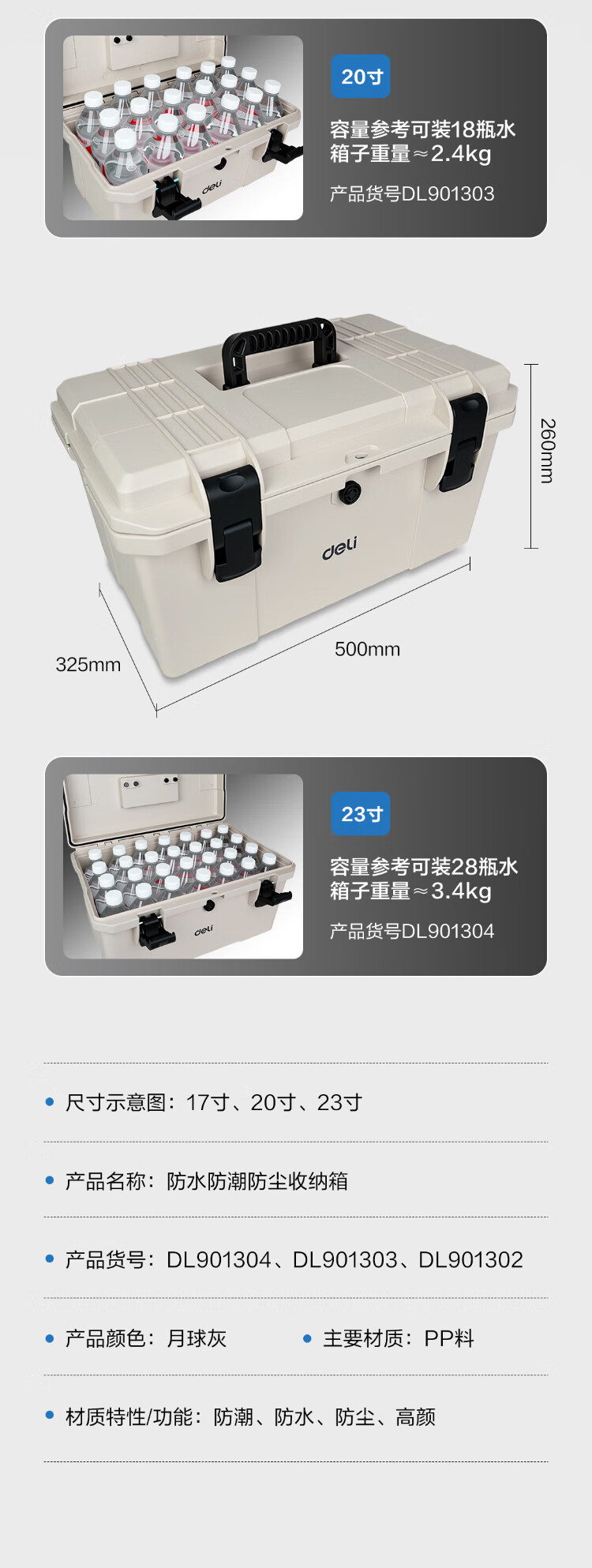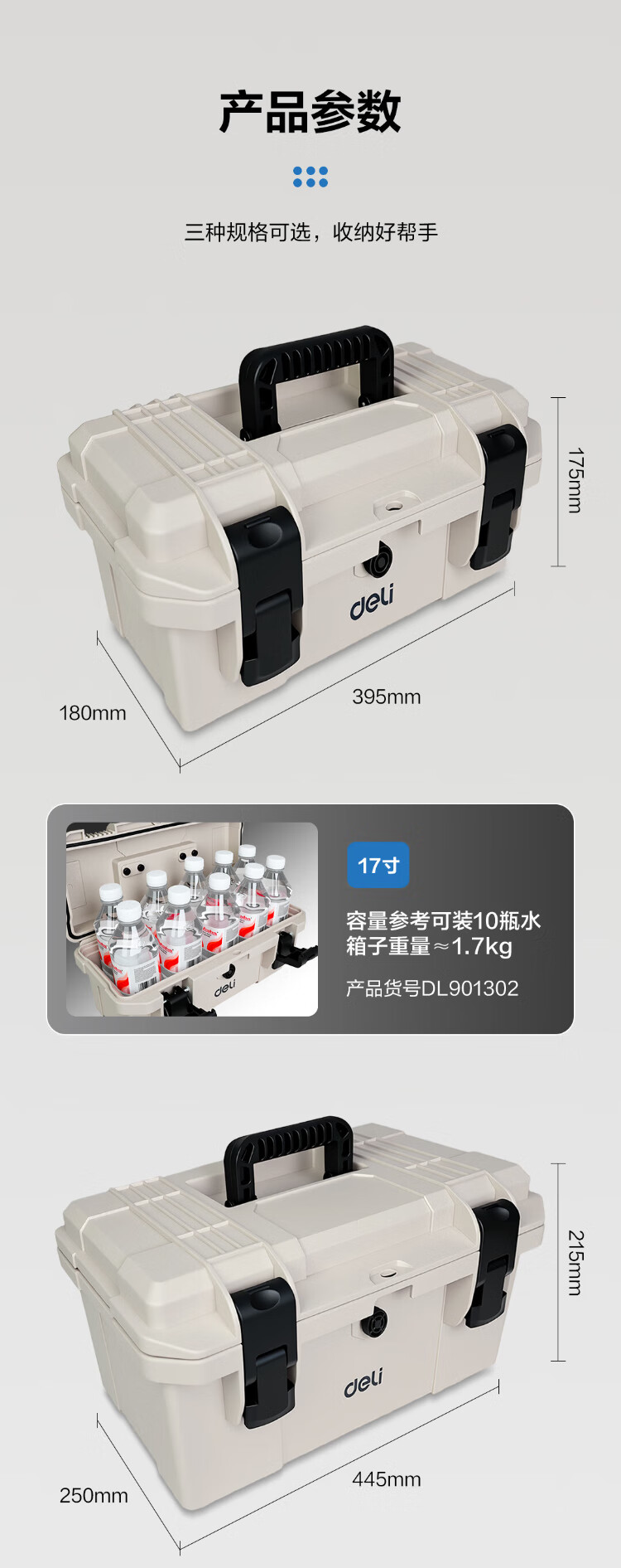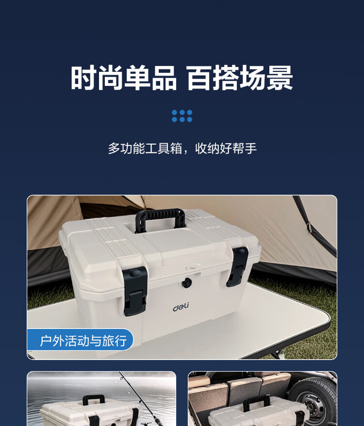 Deli home portable tool box waterproof, moisture-proof, dust-proof and anti-fall hardware large capacity multi-functional storage box 23 inches