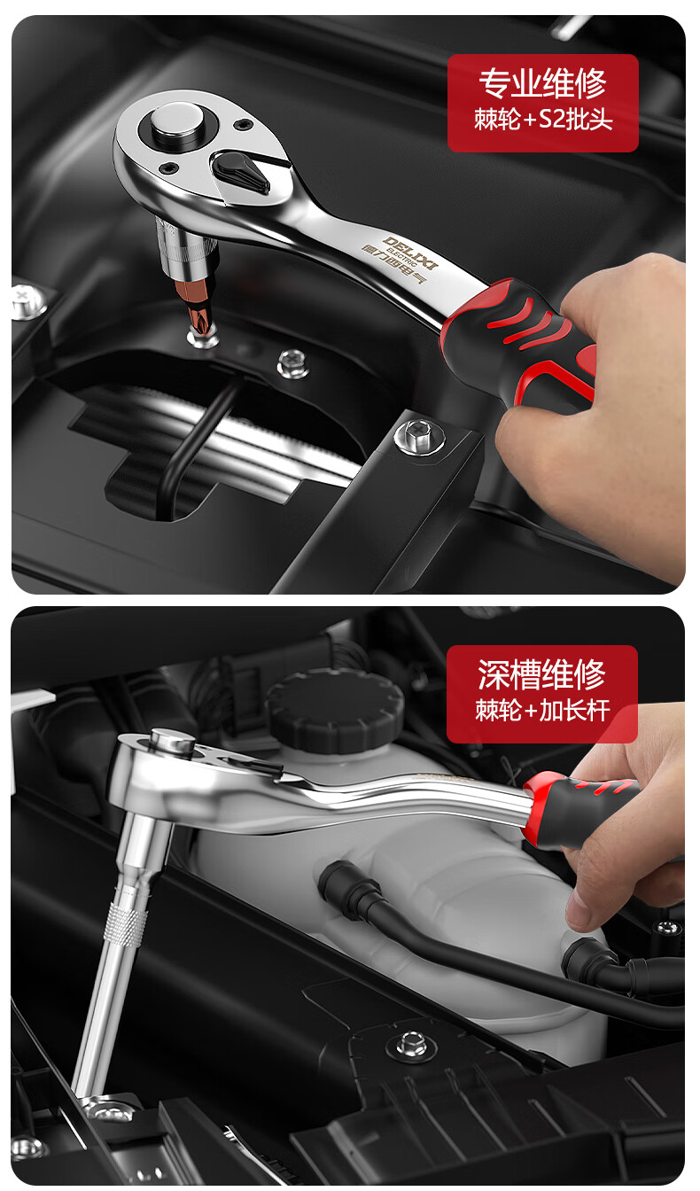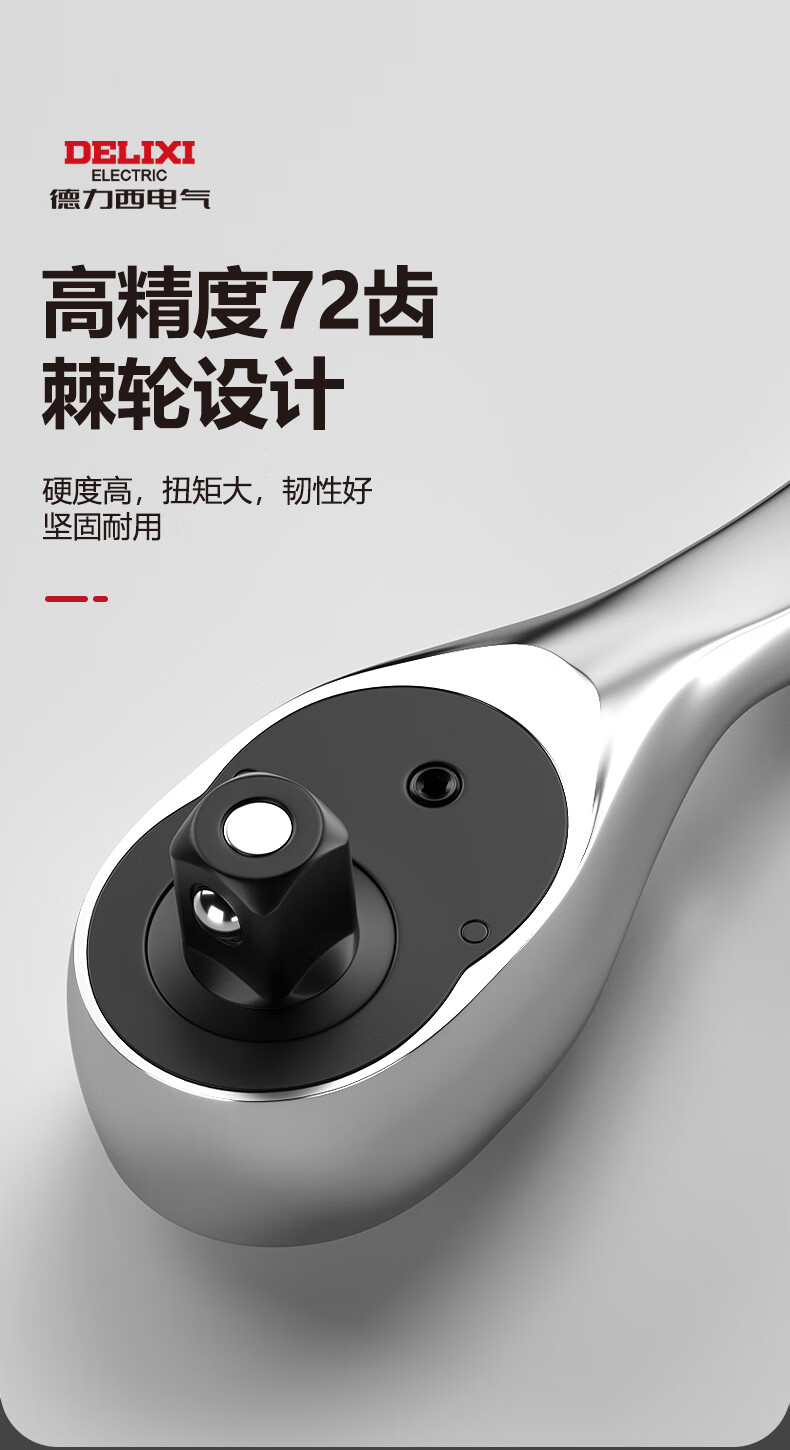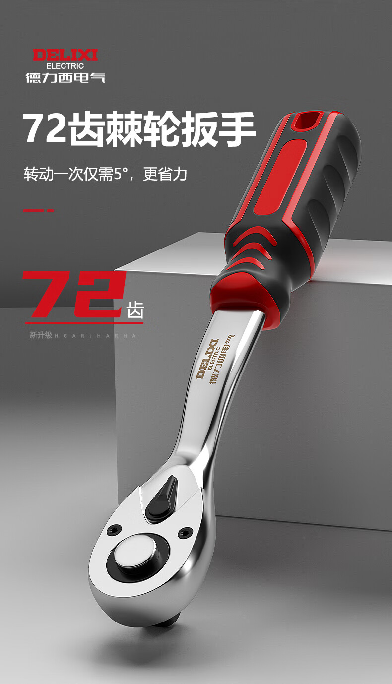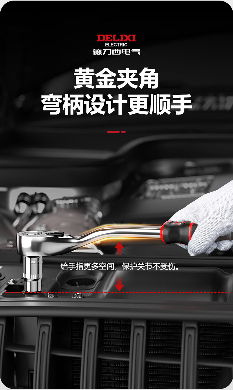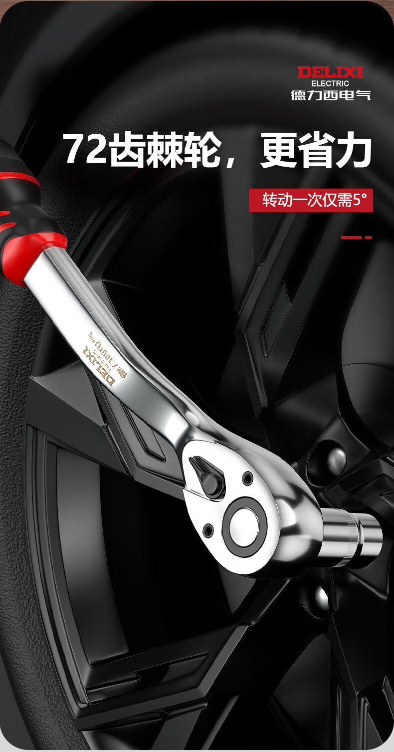 DELIXI ELECTRIC ratchet socket wrench quick wrench two-way automatic labor-saving 72 tooth curved handle auto repair 1/2 Dafei 25-piece set