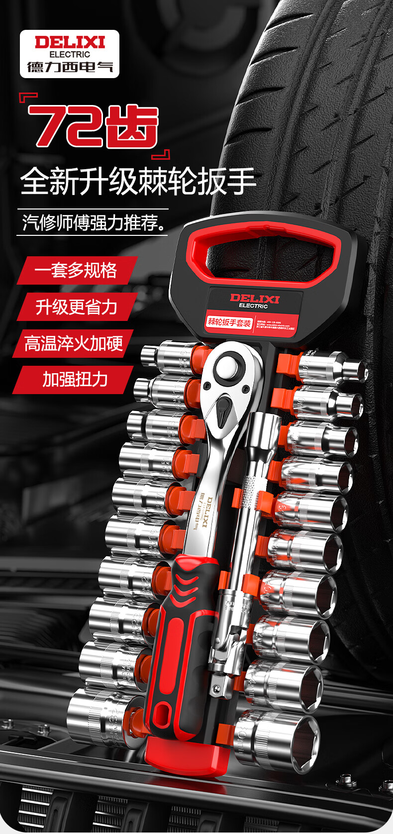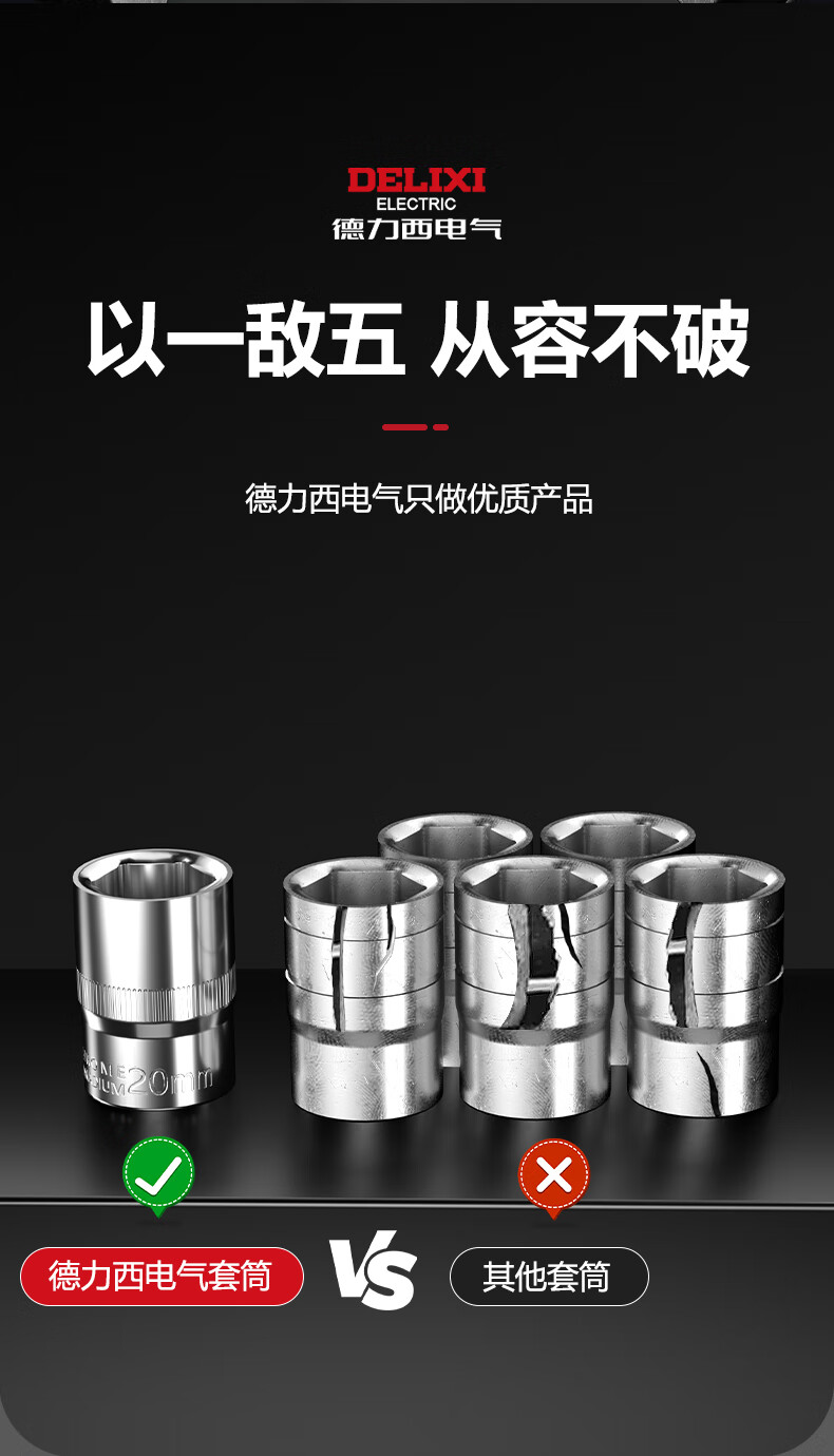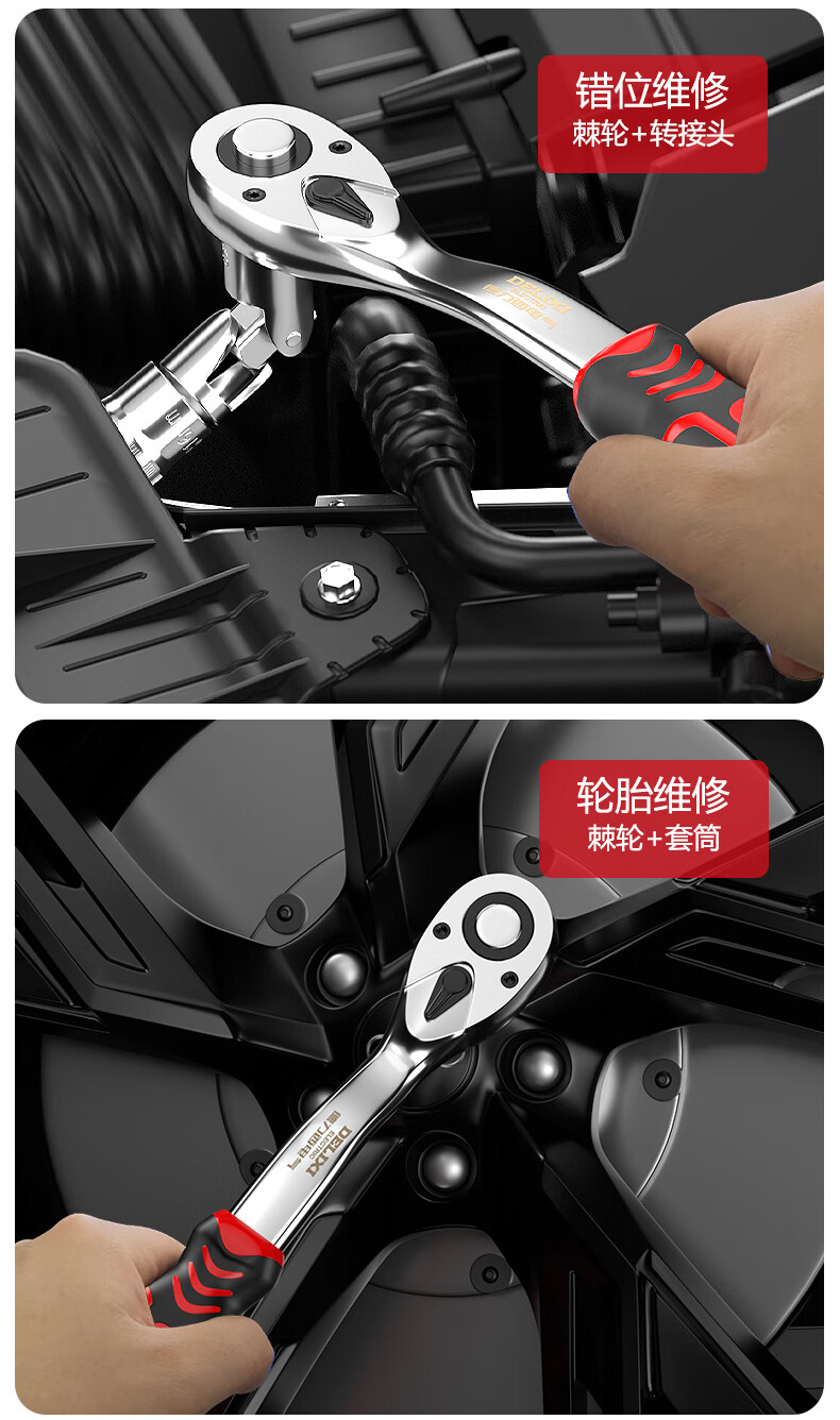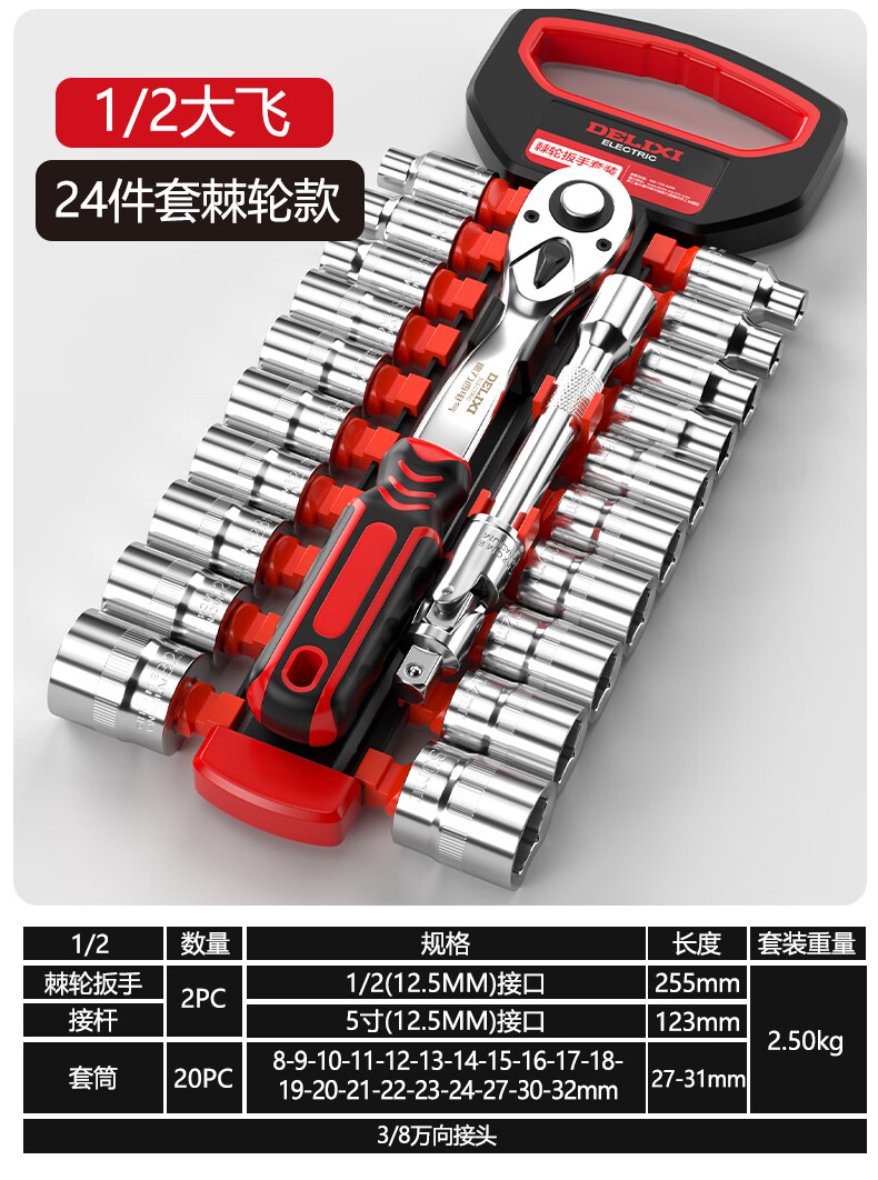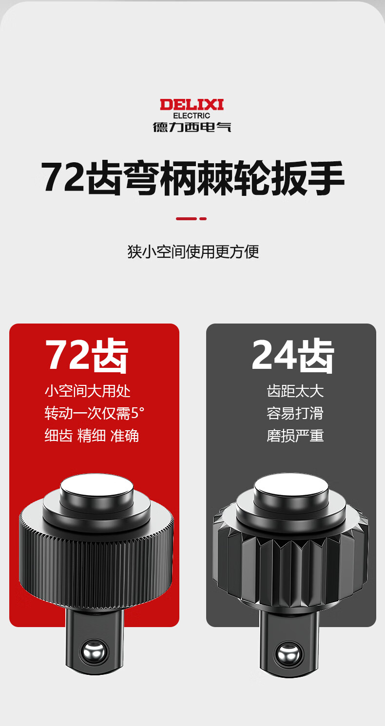 DELIXI ELECTRIC ratchet socket wrench quick wrench two-way automatic labor-saving 72 tooth curved handle auto repair 1/2 Dafei 25-piece set