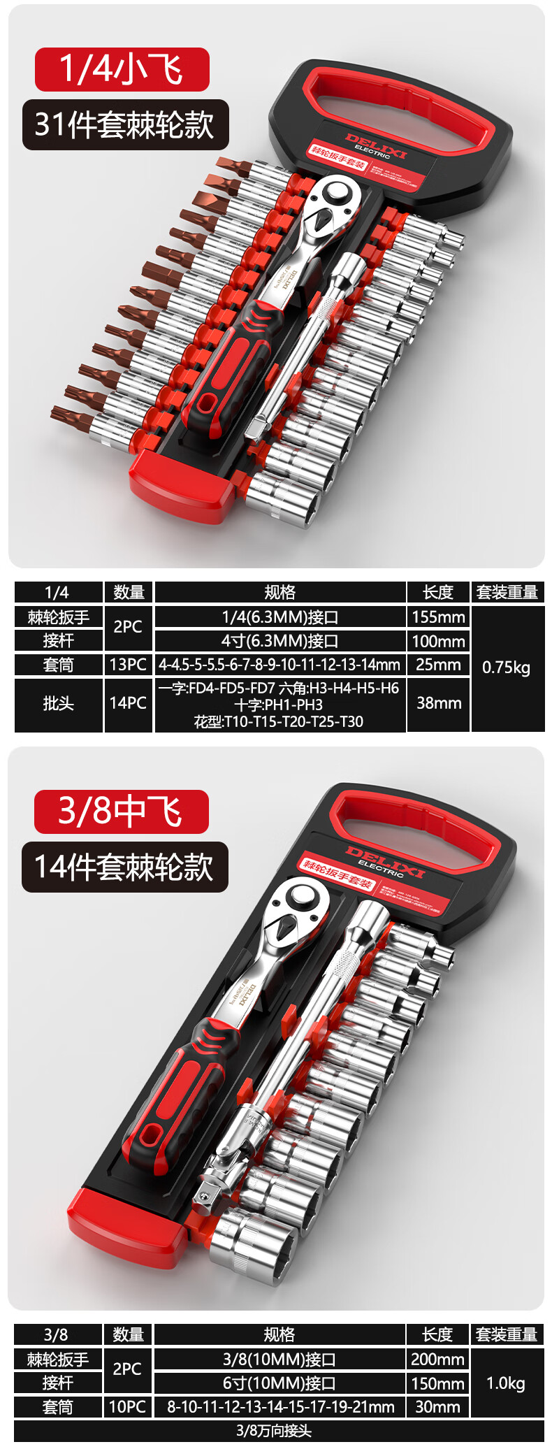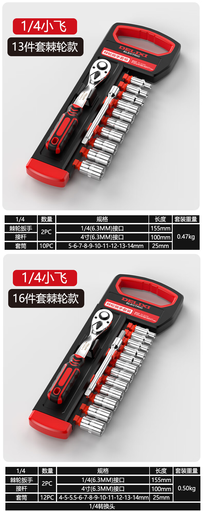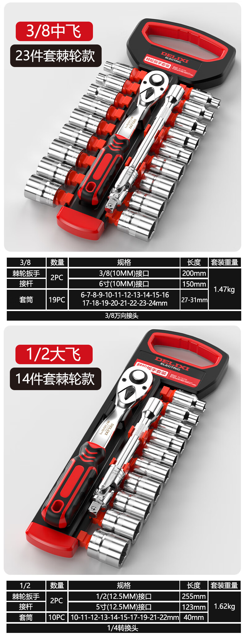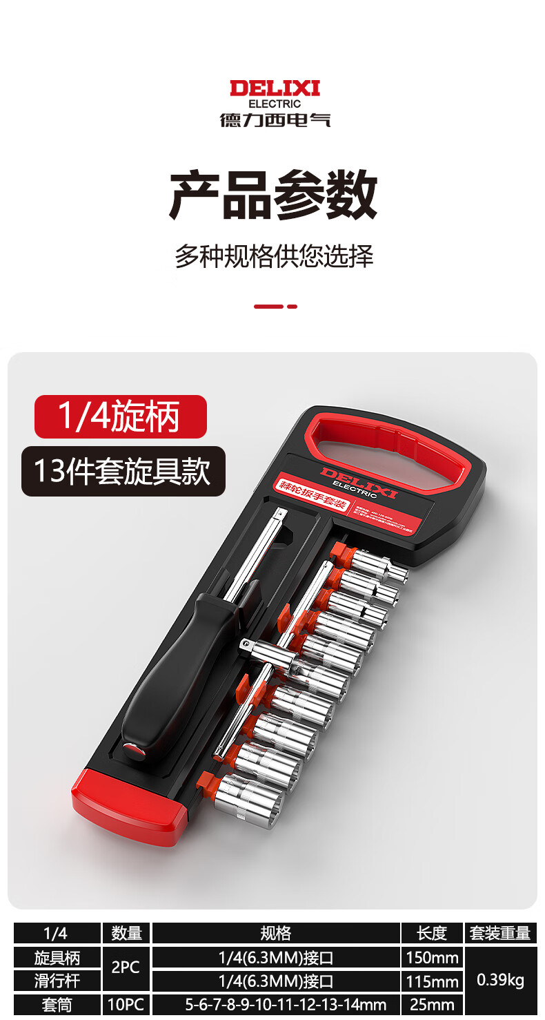 DELIXI ELECTRIC ratchet socket wrench quick wrench two-way automatic labor-saving 72 tooth curved handle auto repair 1/2 Dafei 25-piece set