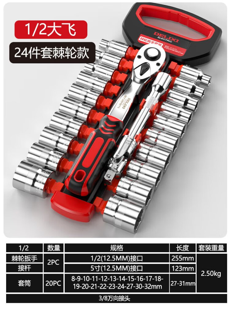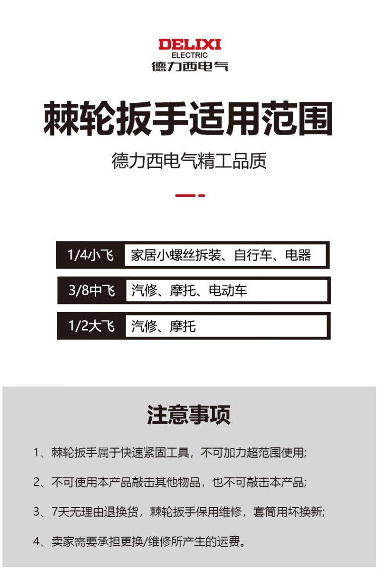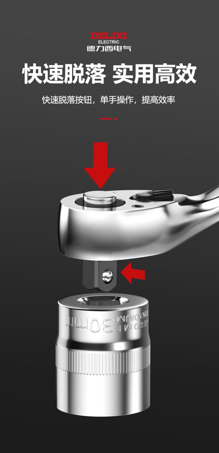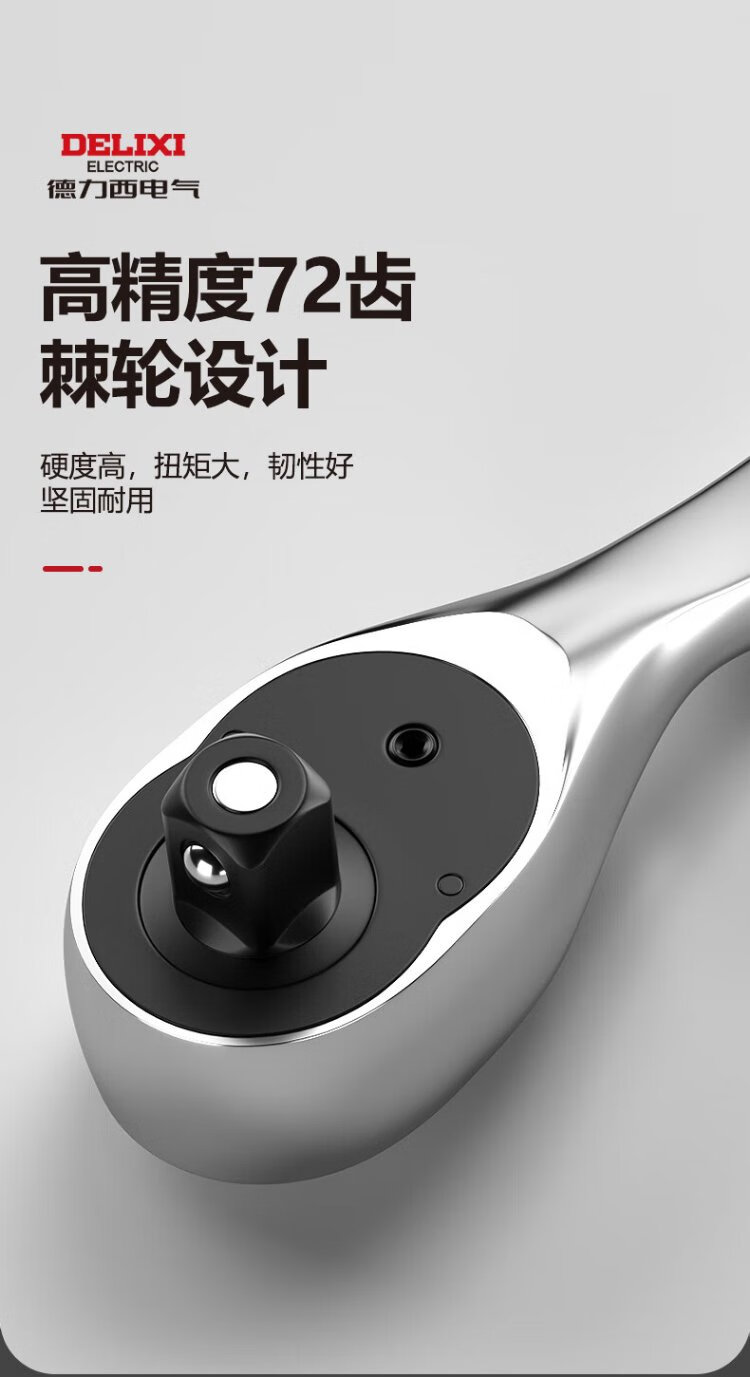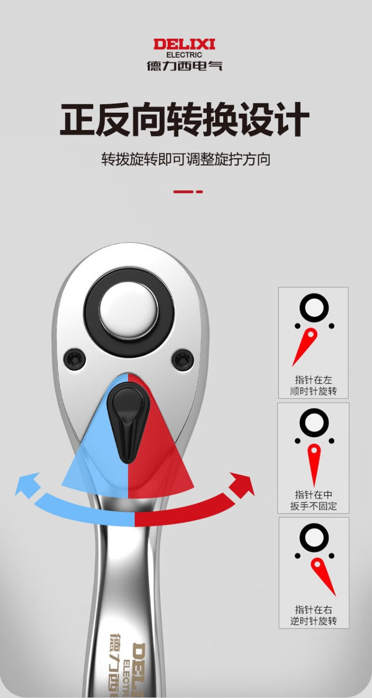 Delixi Electric ratchet socket wrench quick wrench two-way automatic labor-saving 72 tooth curved handle auto repair 1/4 Xiaofei 17-piece set