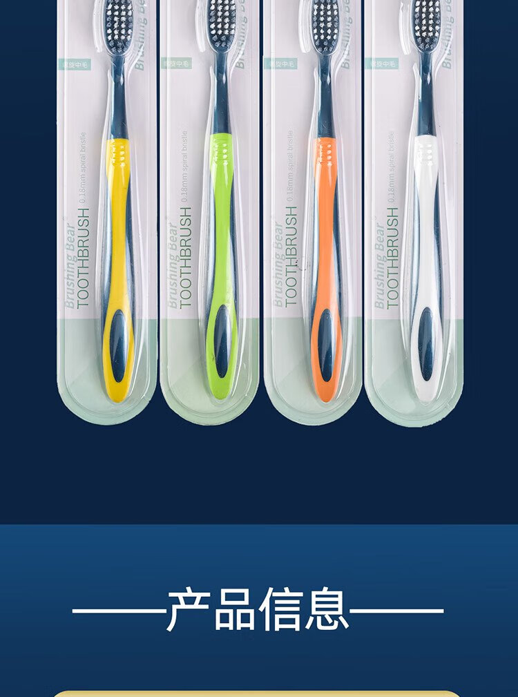 BRUSHING BEAR medium-hard bristle toothbrush Sam's same spiral brush wire to remove tooth stains for adults, home decoration, household men and women, 6 pieces