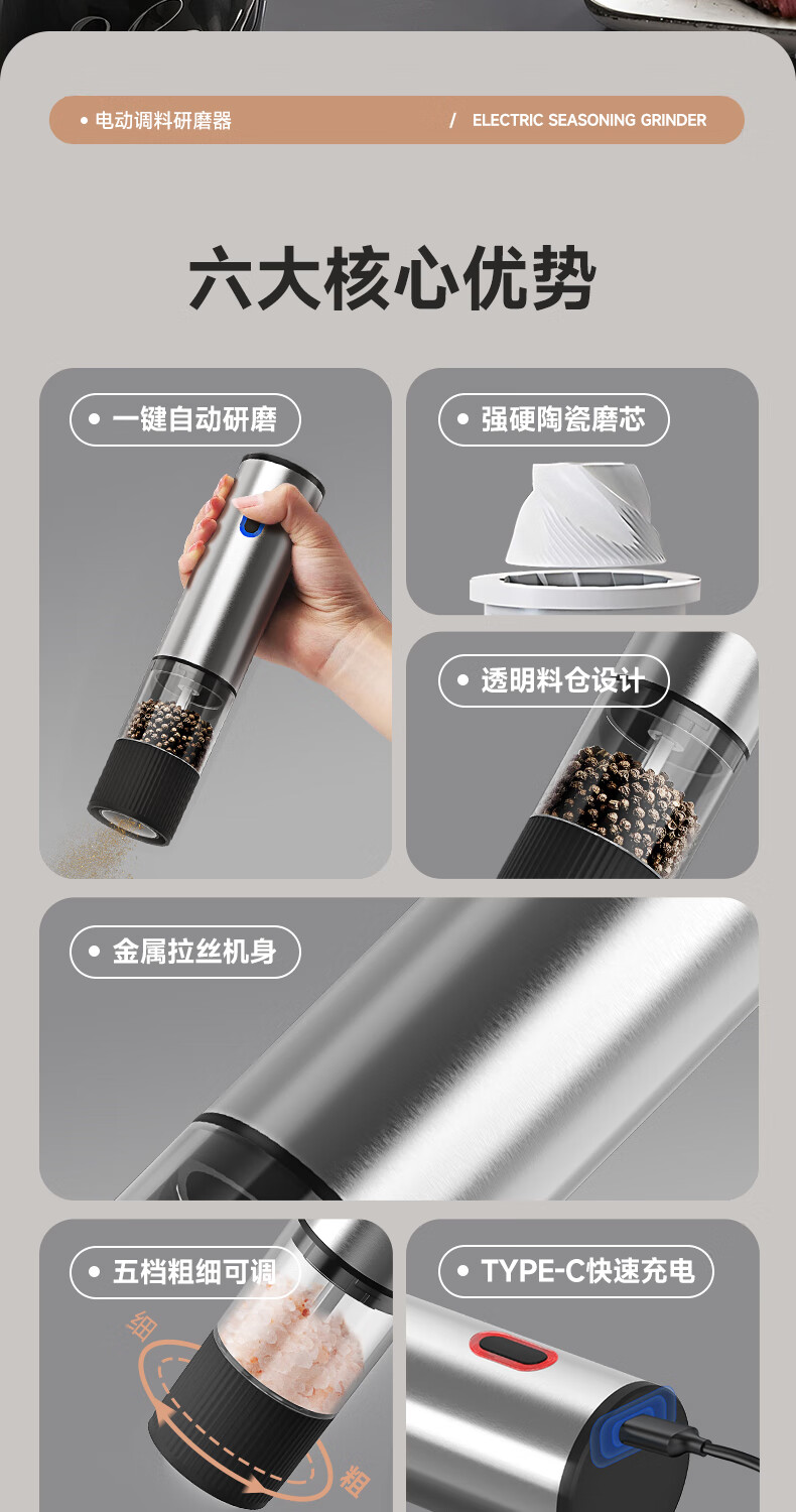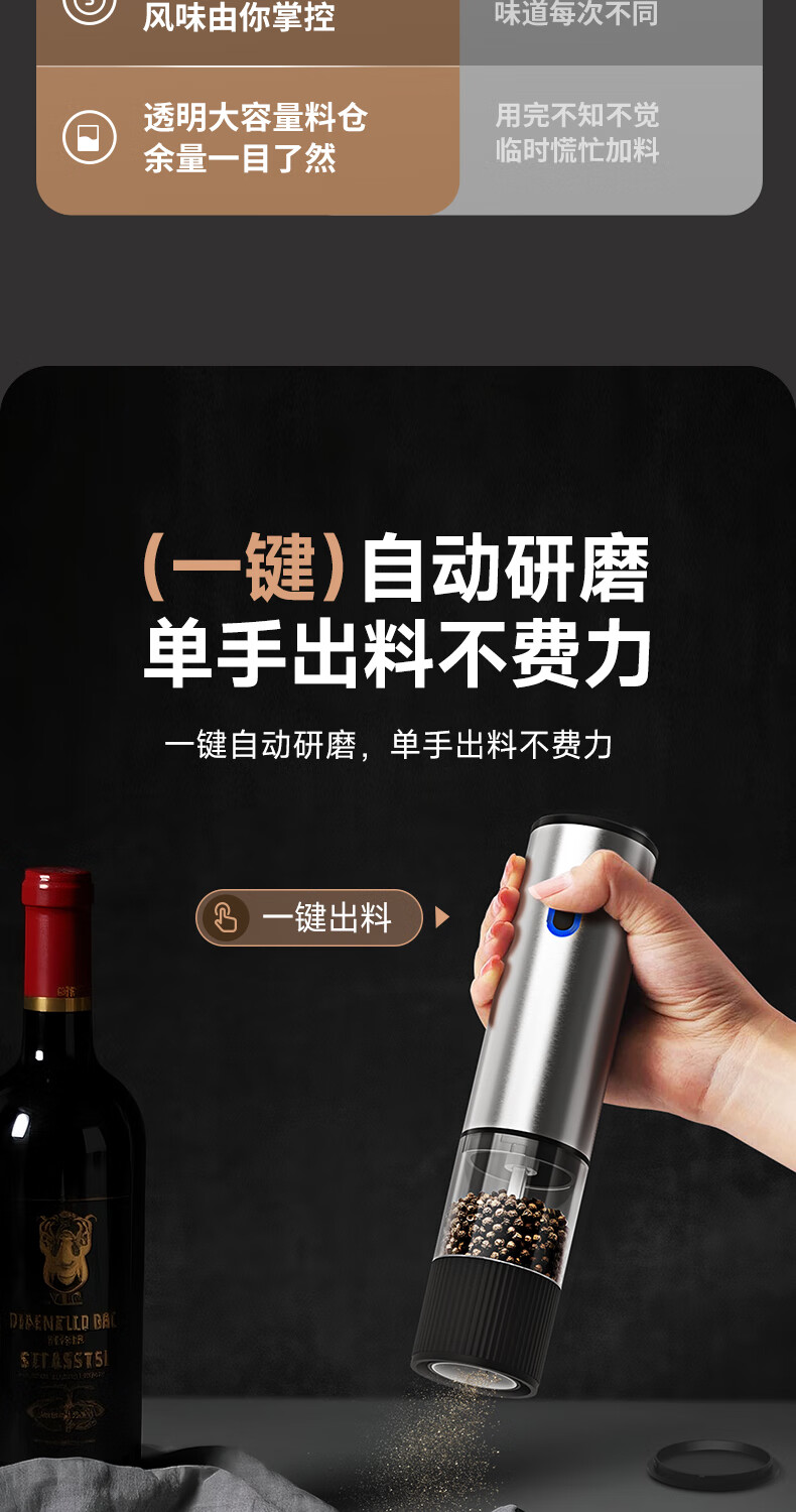 Beijing electric pepper grinder household kitchen artifact seasoning black peppercorns sea salt spice cumin pepper grinding bottle
