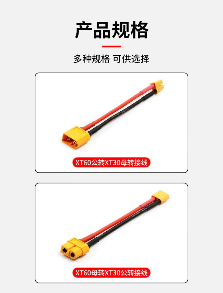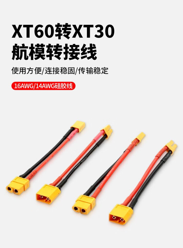 Baye Model Aircraft Adapter Cable XT60 Male to XT30 Female Lithium Battery Cable 16AWG/0.1m BY-XT60M30F001