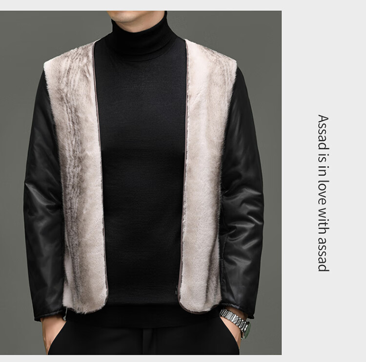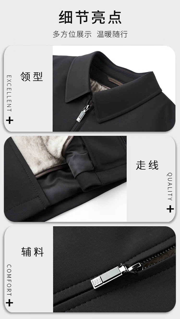 Hengyuanxiang Men's Winter Mink Velvet Thickened Warm Removable Liner Lapel Dad Casual Jacket