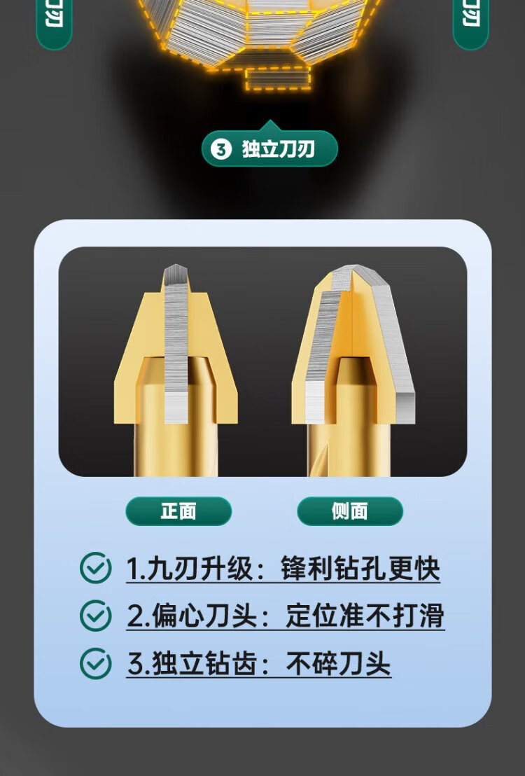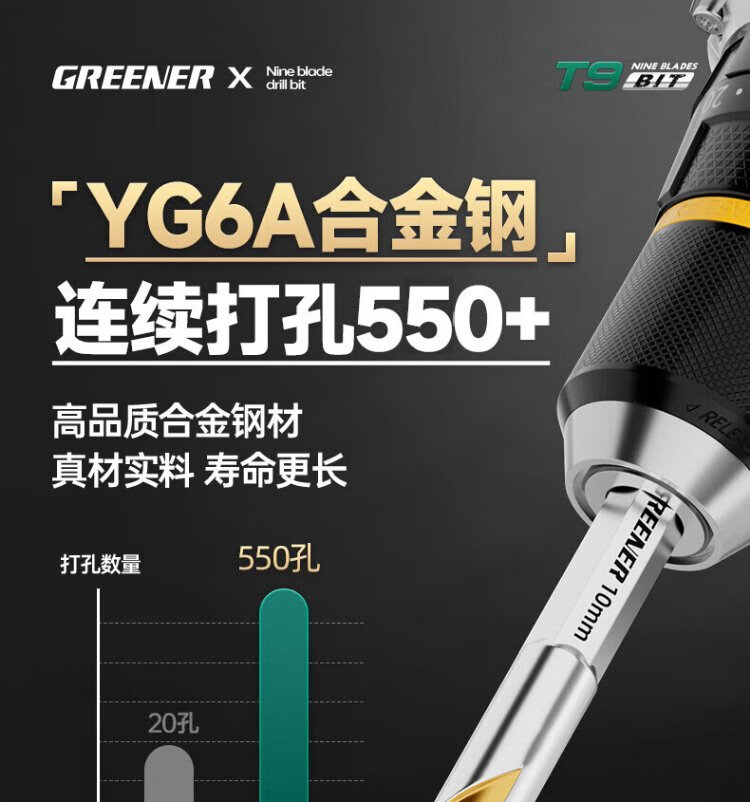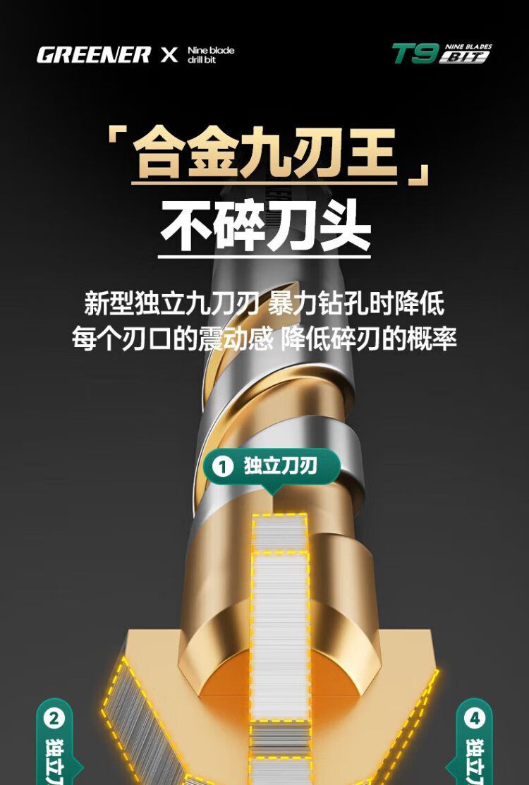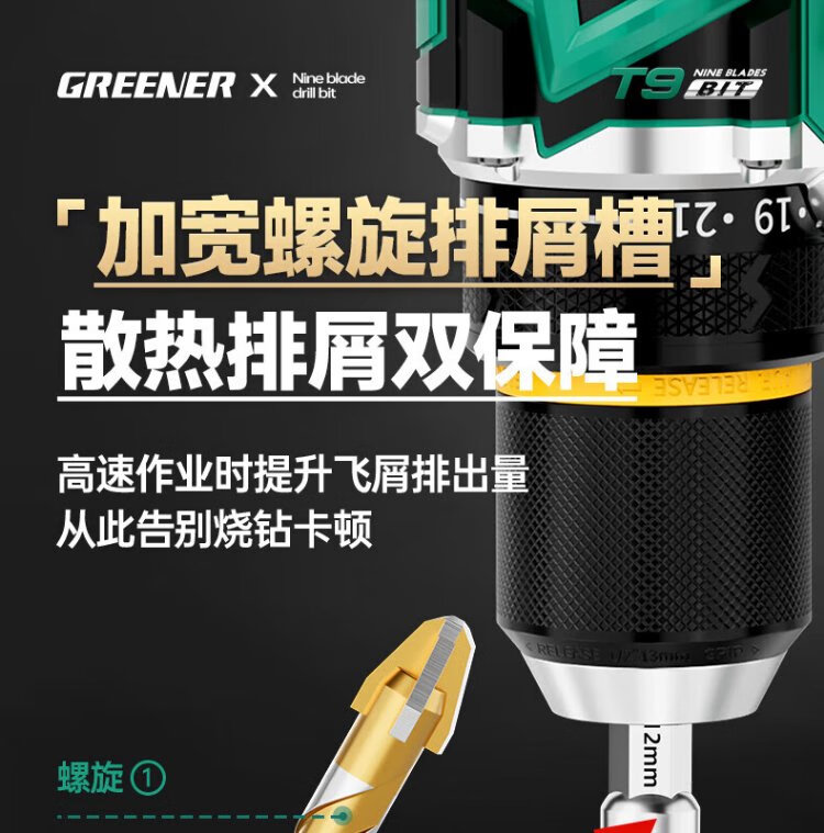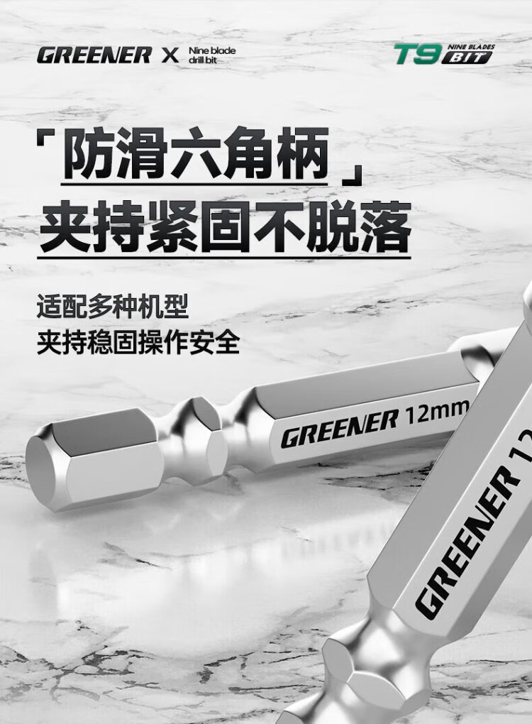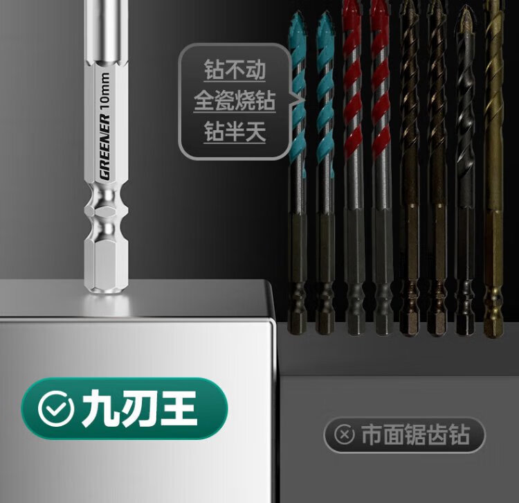 GREENER T9 nine-edged tile drilling drill bit eccentric special sawtooth concrete hand drill glass marble