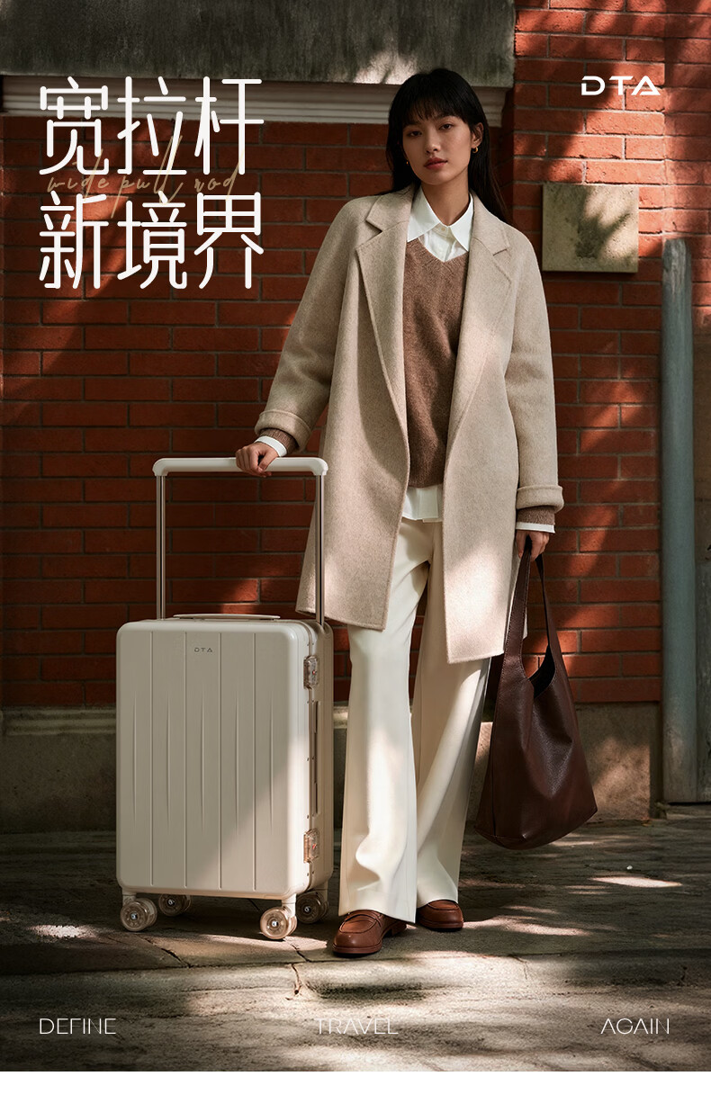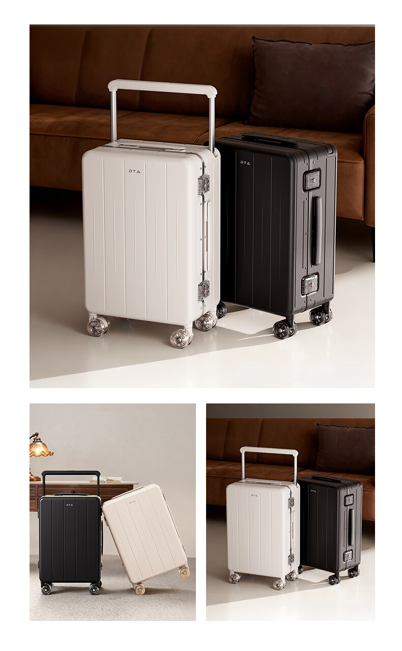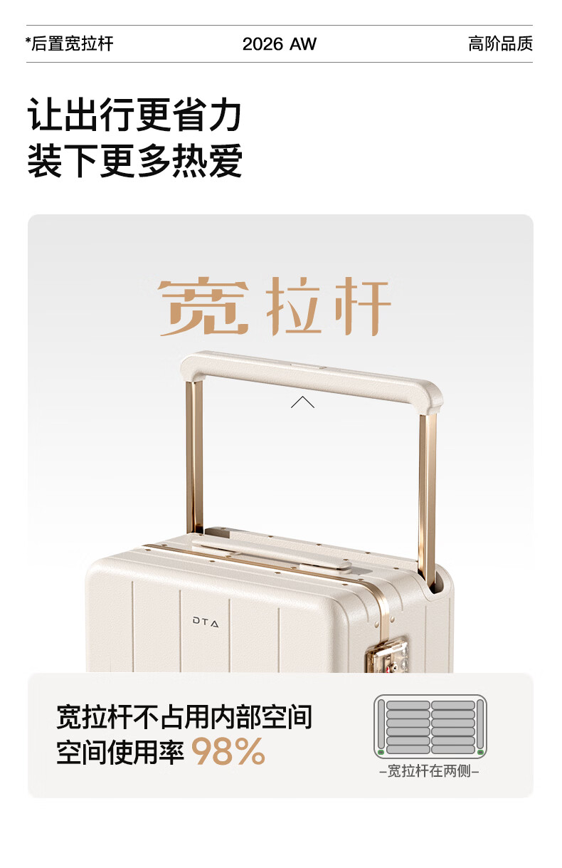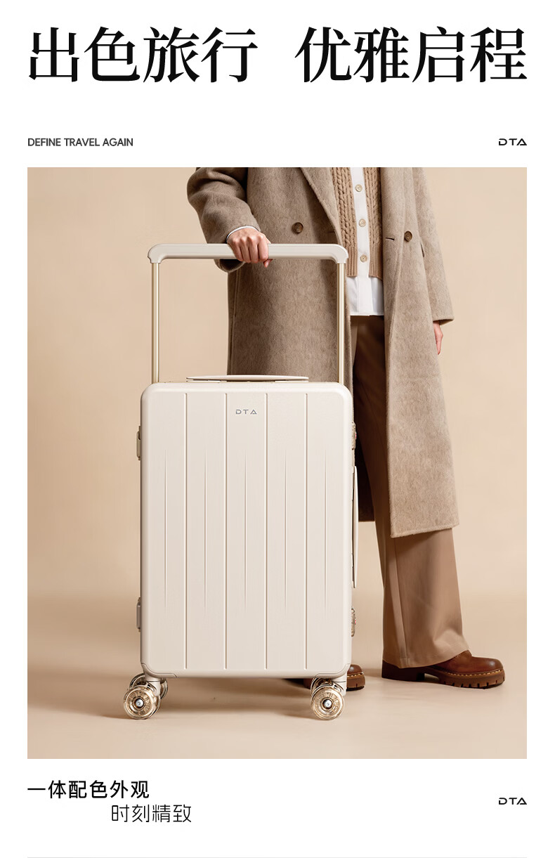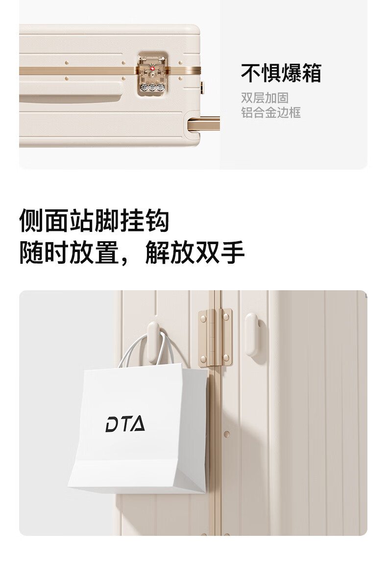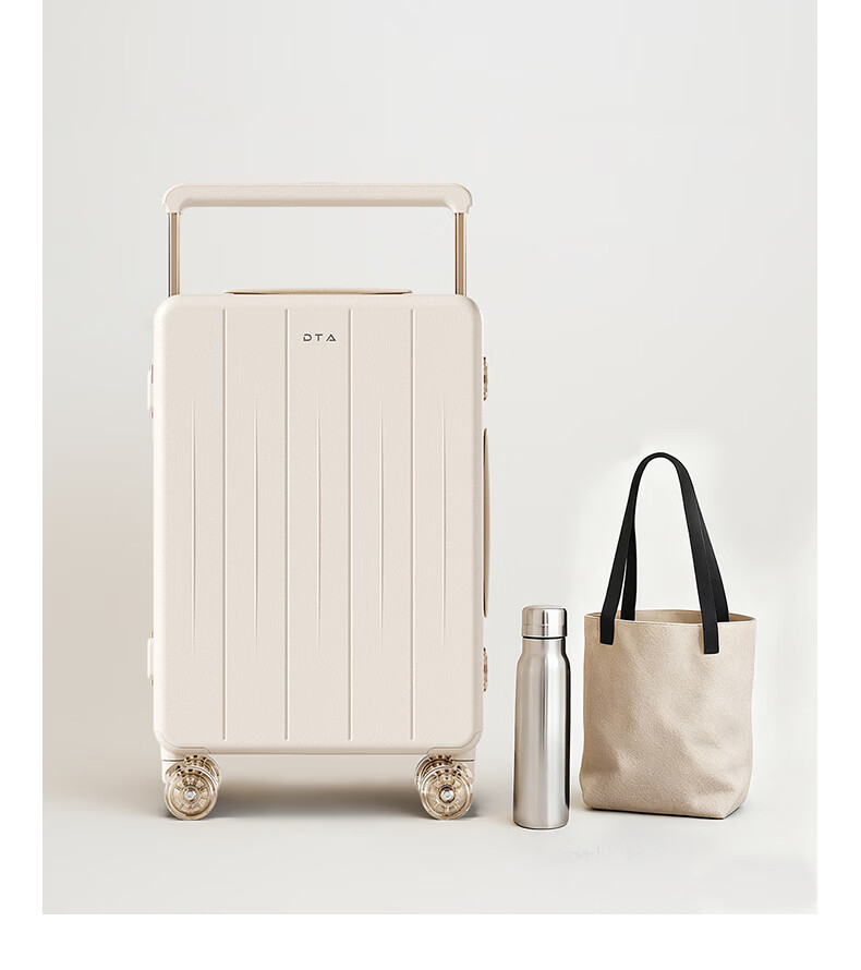 DTA aluminum frame wide trolley suitcase women's new large capacity trolley case men's boarding password suitcase milk apricot 20 inches