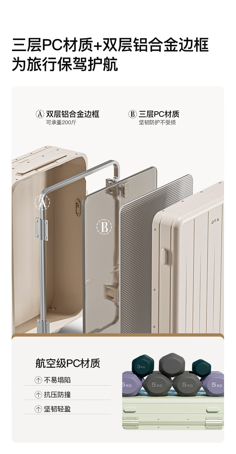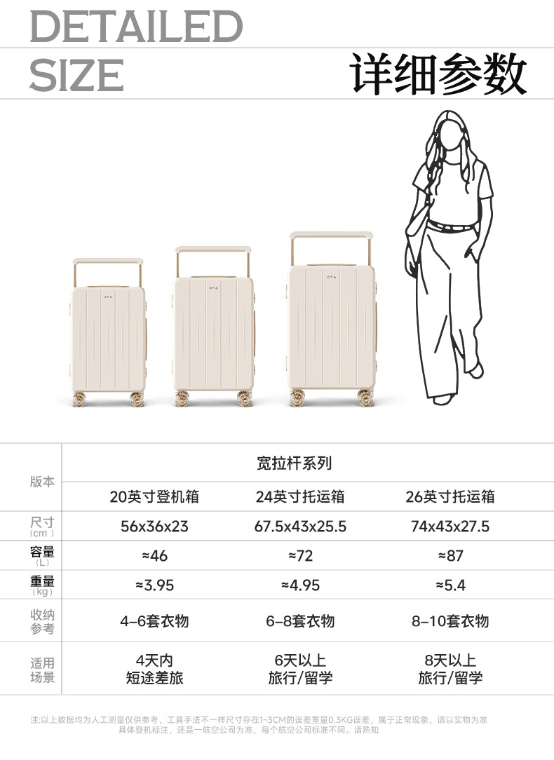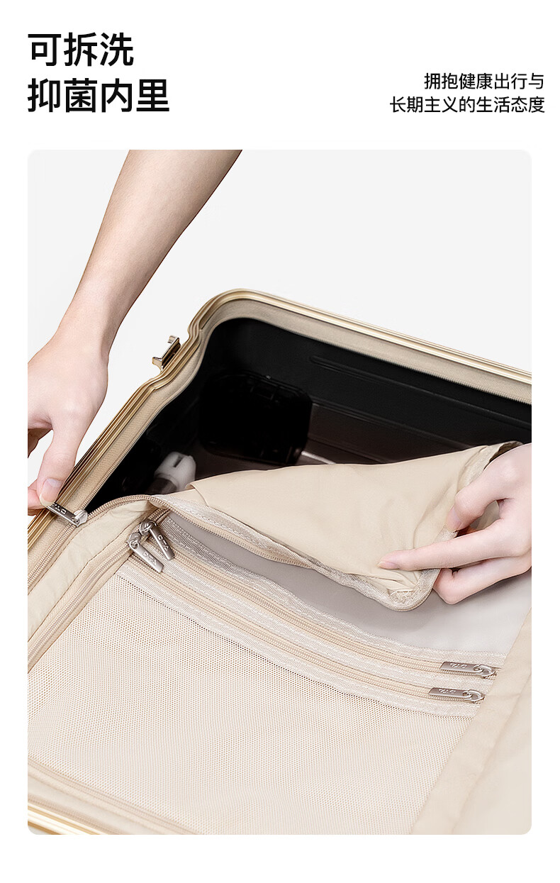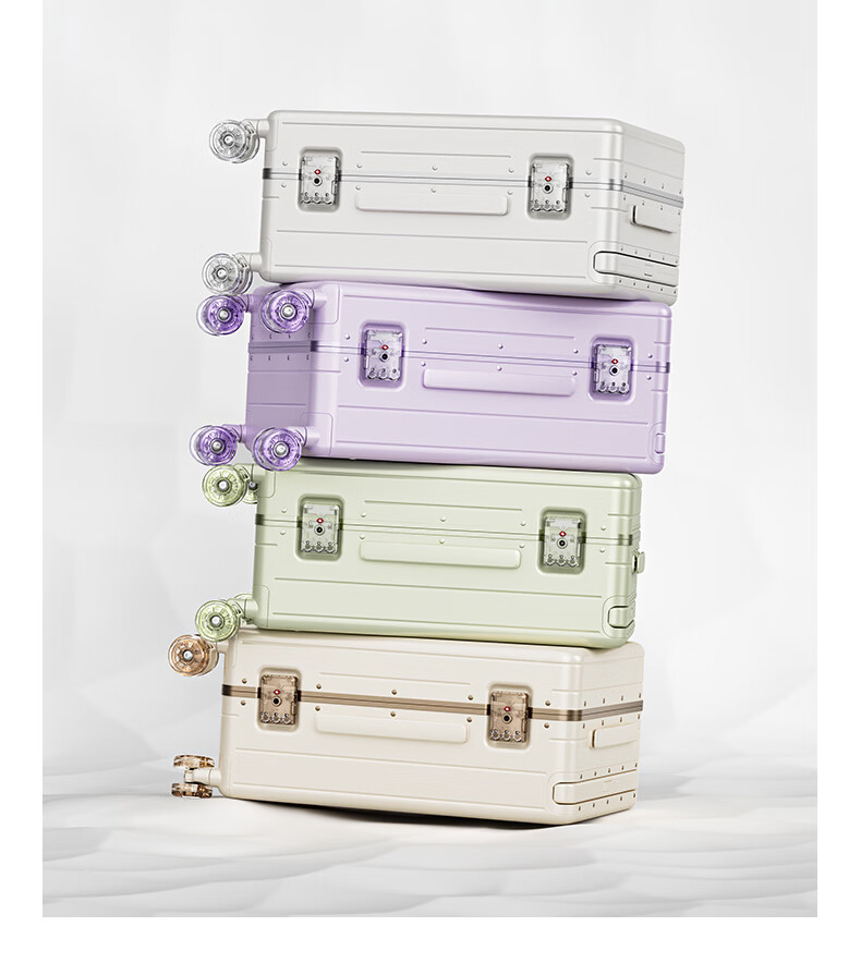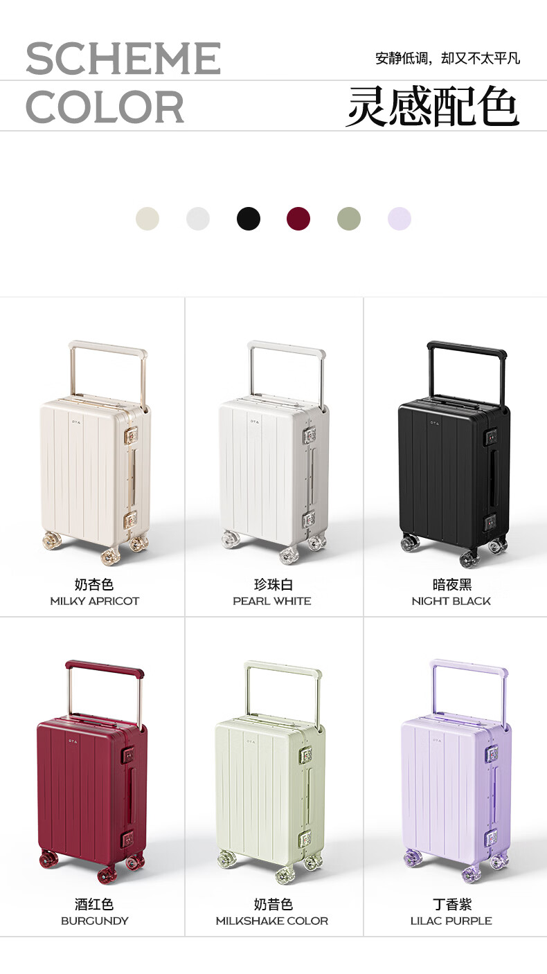 DTA aluminum frame wide trolley suitcase women's new large capacity trolley case men's boarding password suitcase milk apricot 20 inches