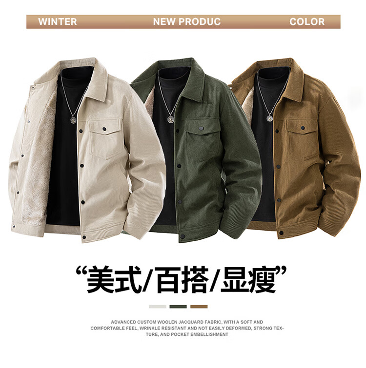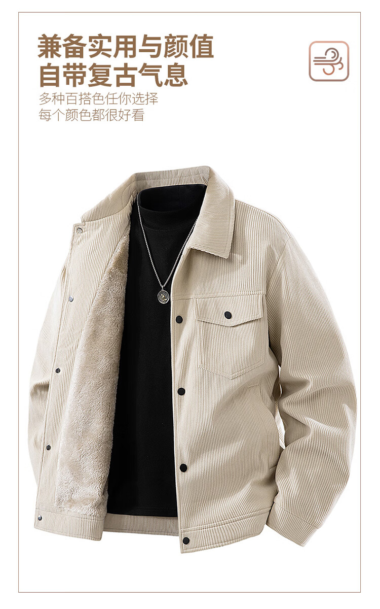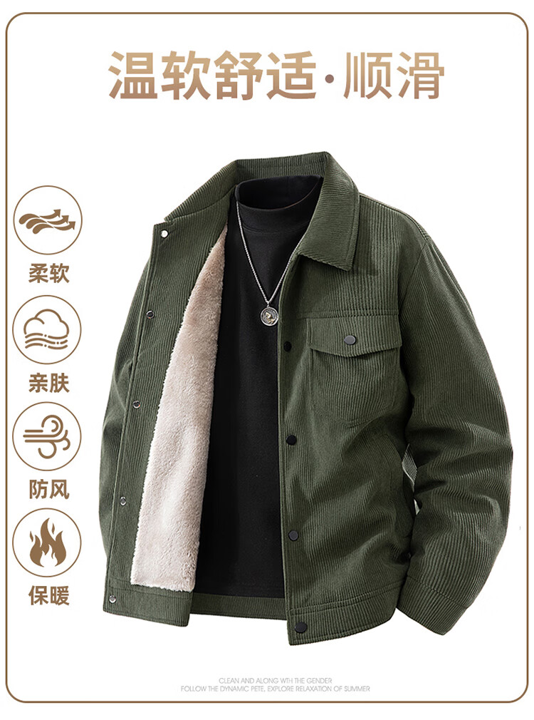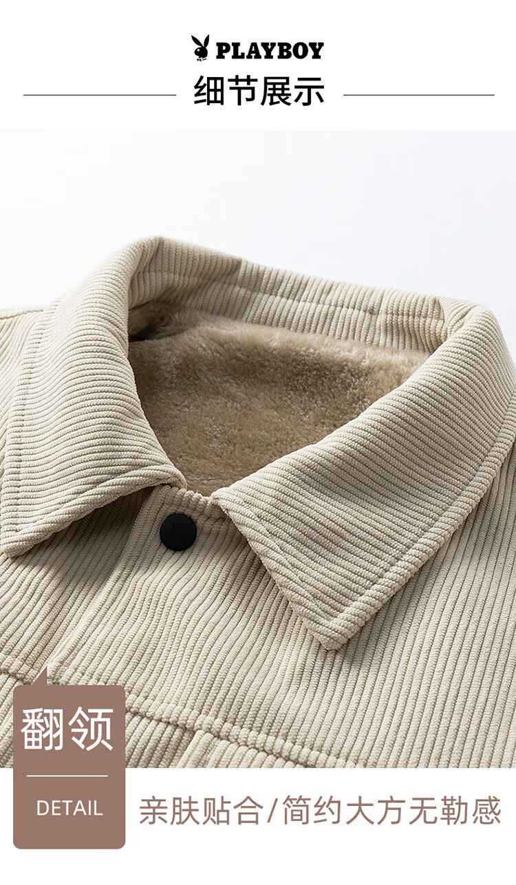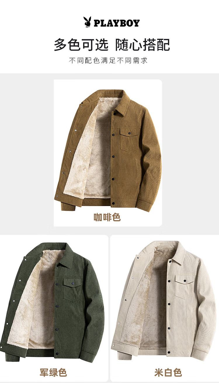 Playboy (PLAYBOY) jacket men's corduroy jacket men's autumn and winter casual plus velvet thickened warm lambskin clothes