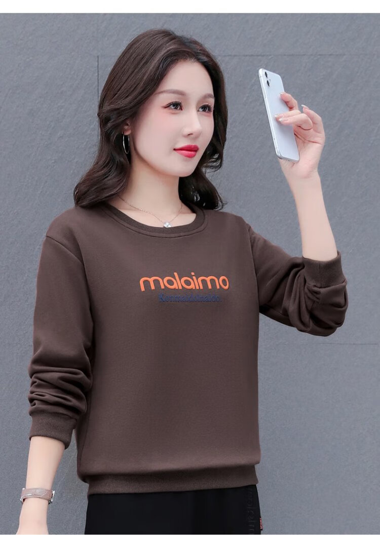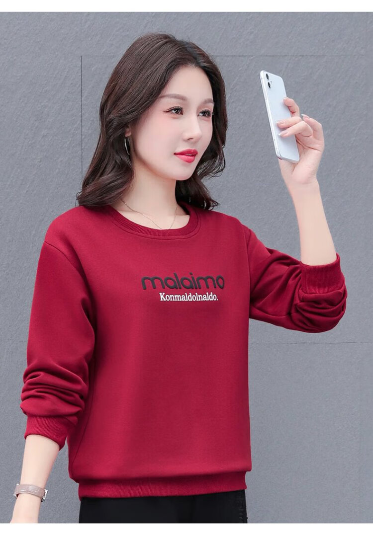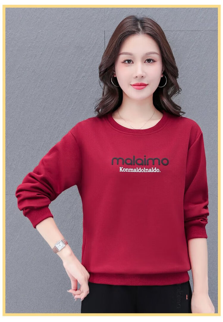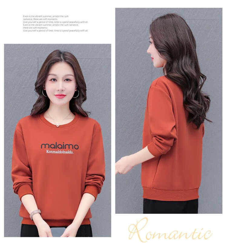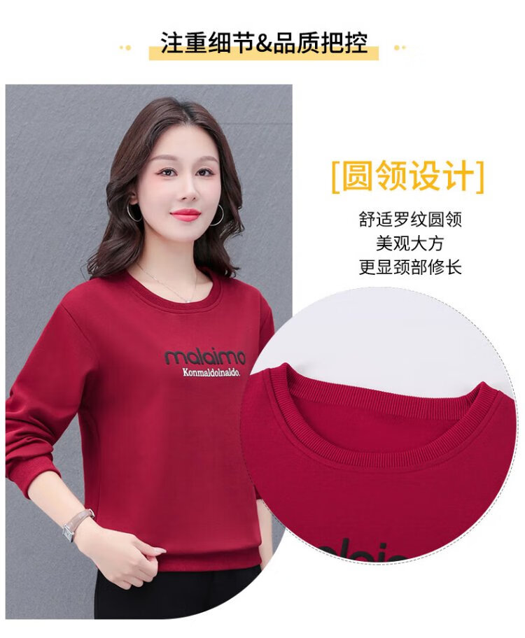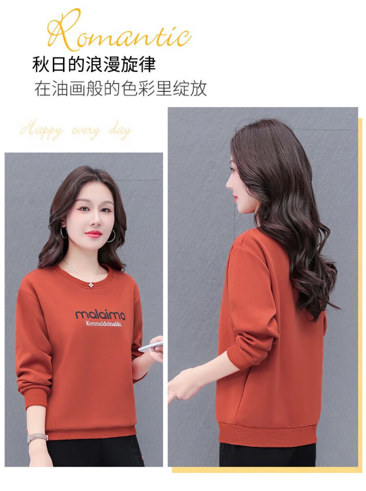 Woodpecker Casual Bottoming Shirt for Women Spring, Autumn and Winter New Style Sweatshirt for Inner and Outerwear Long Sleeve Middle-aged Slim Top Brick Red 2XL