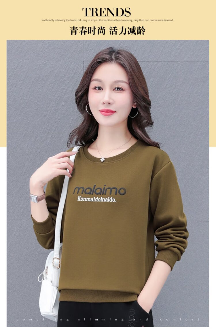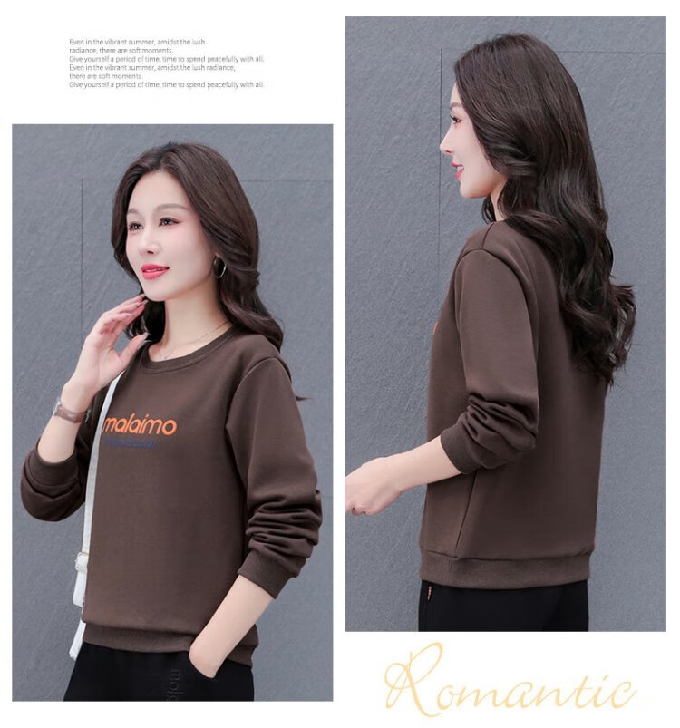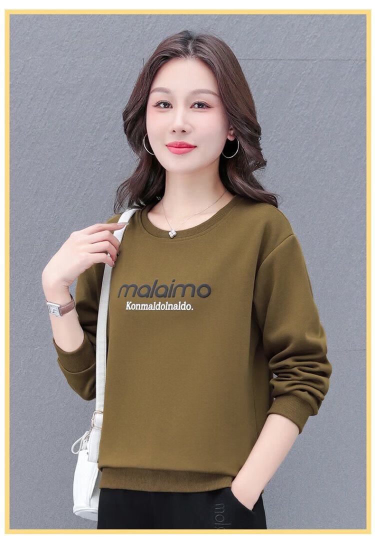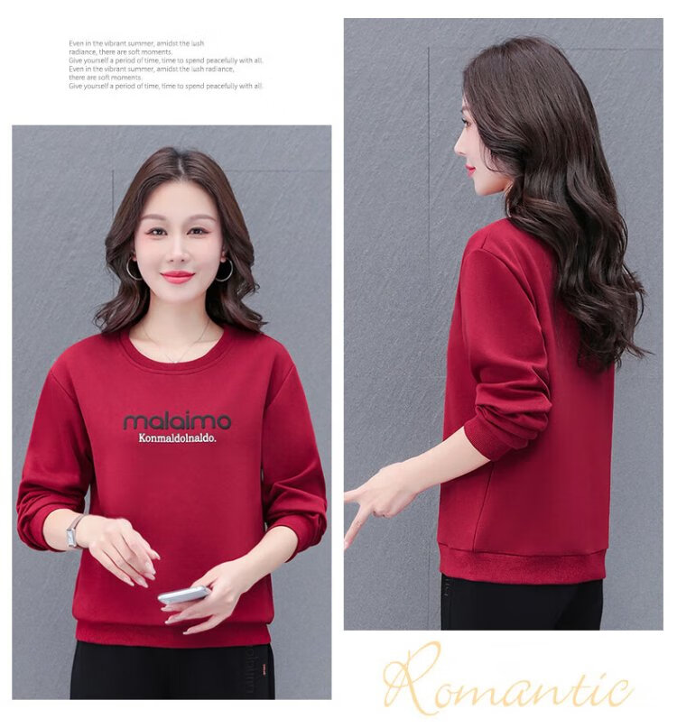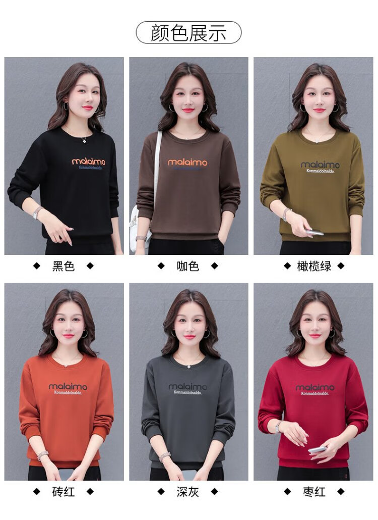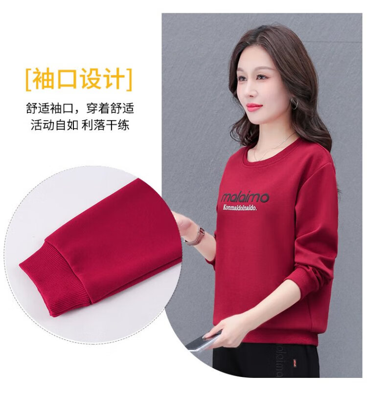 Woodpecker Casual Bottoming Shirt for Women Spring, Autumn and Winter New Style Sweatshirt for Inner and Outerwear Long Sleeve Middle-aged Slim Top Brick Red 2XL